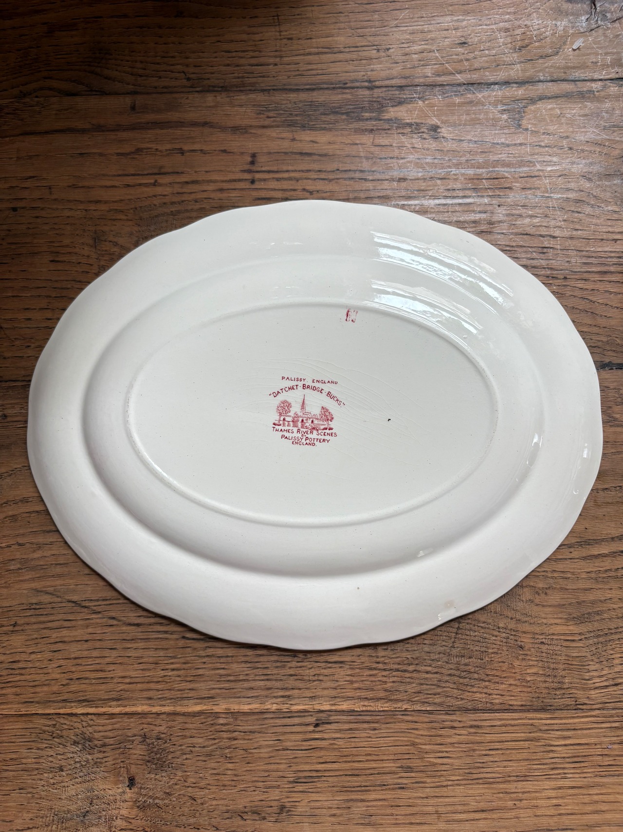 イギリスはPALISSY POTTERY社のテムズ川シリーズ、オーバルプレートなります。