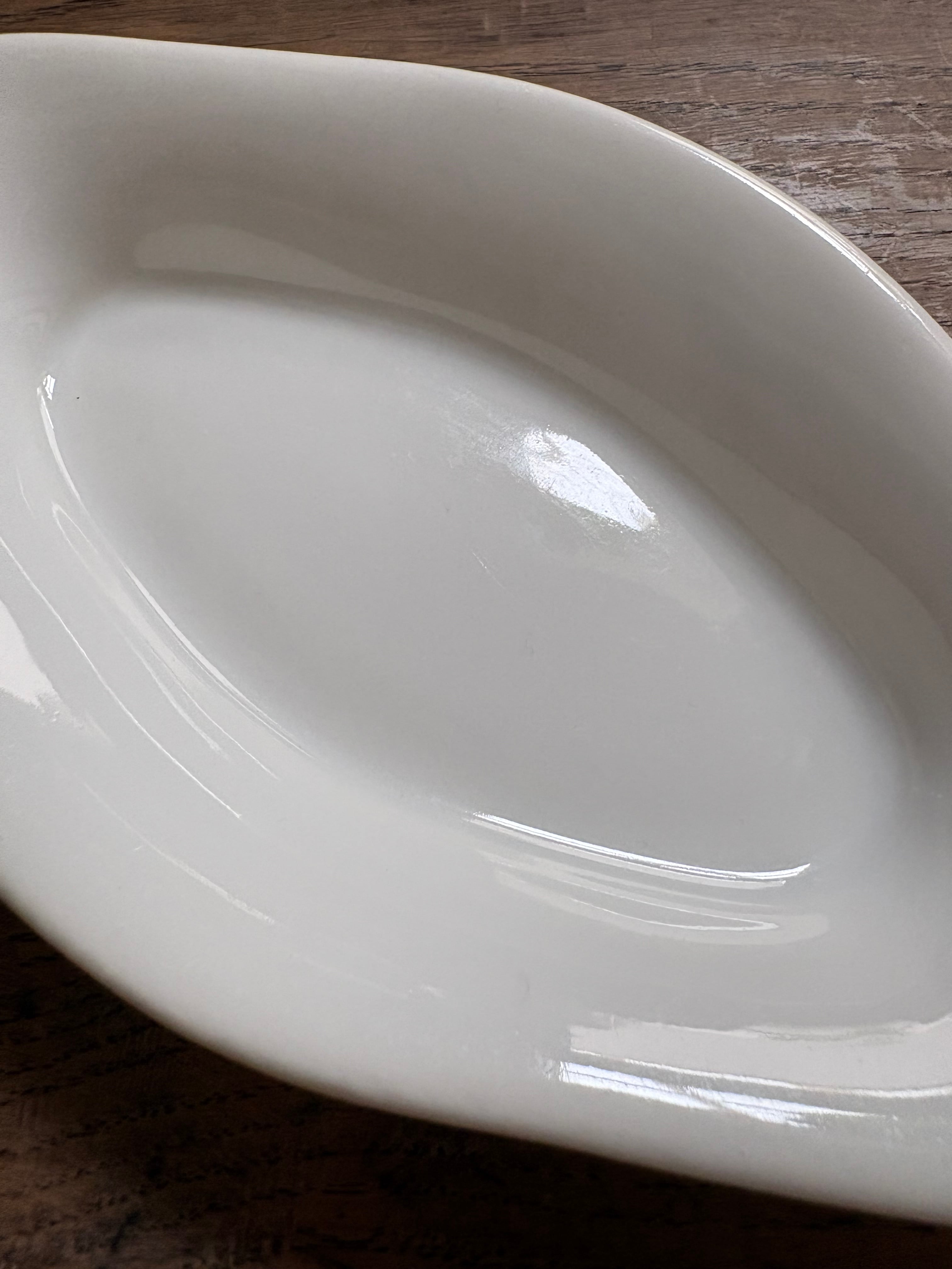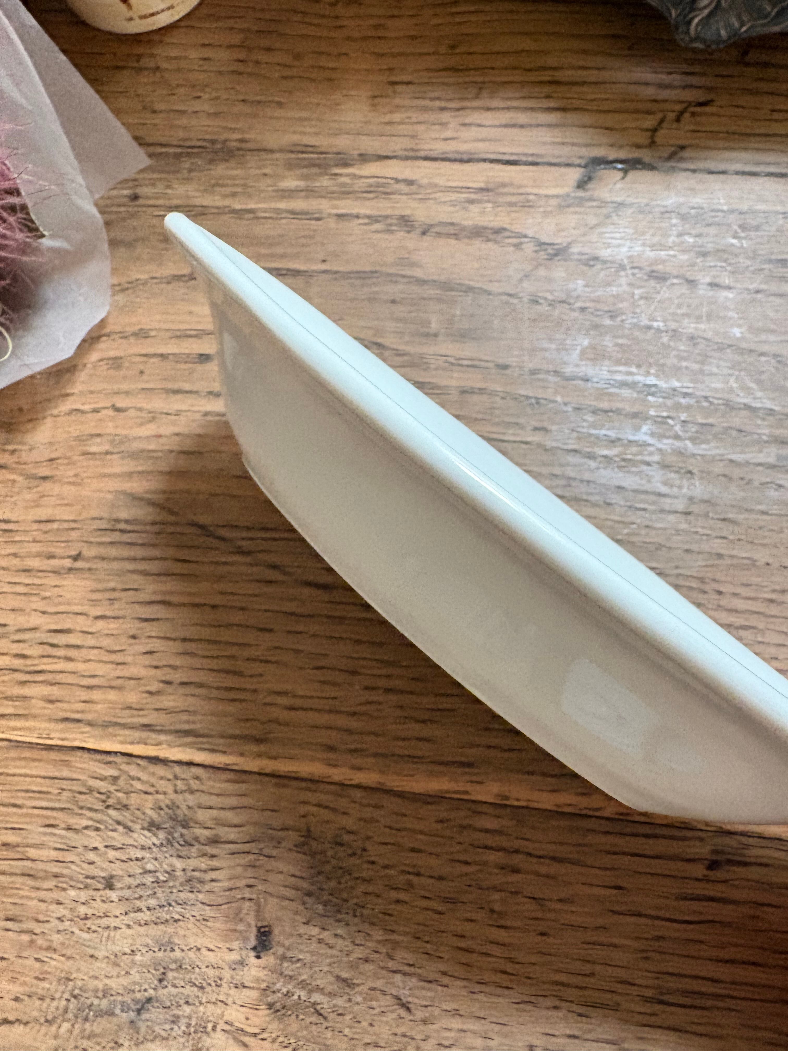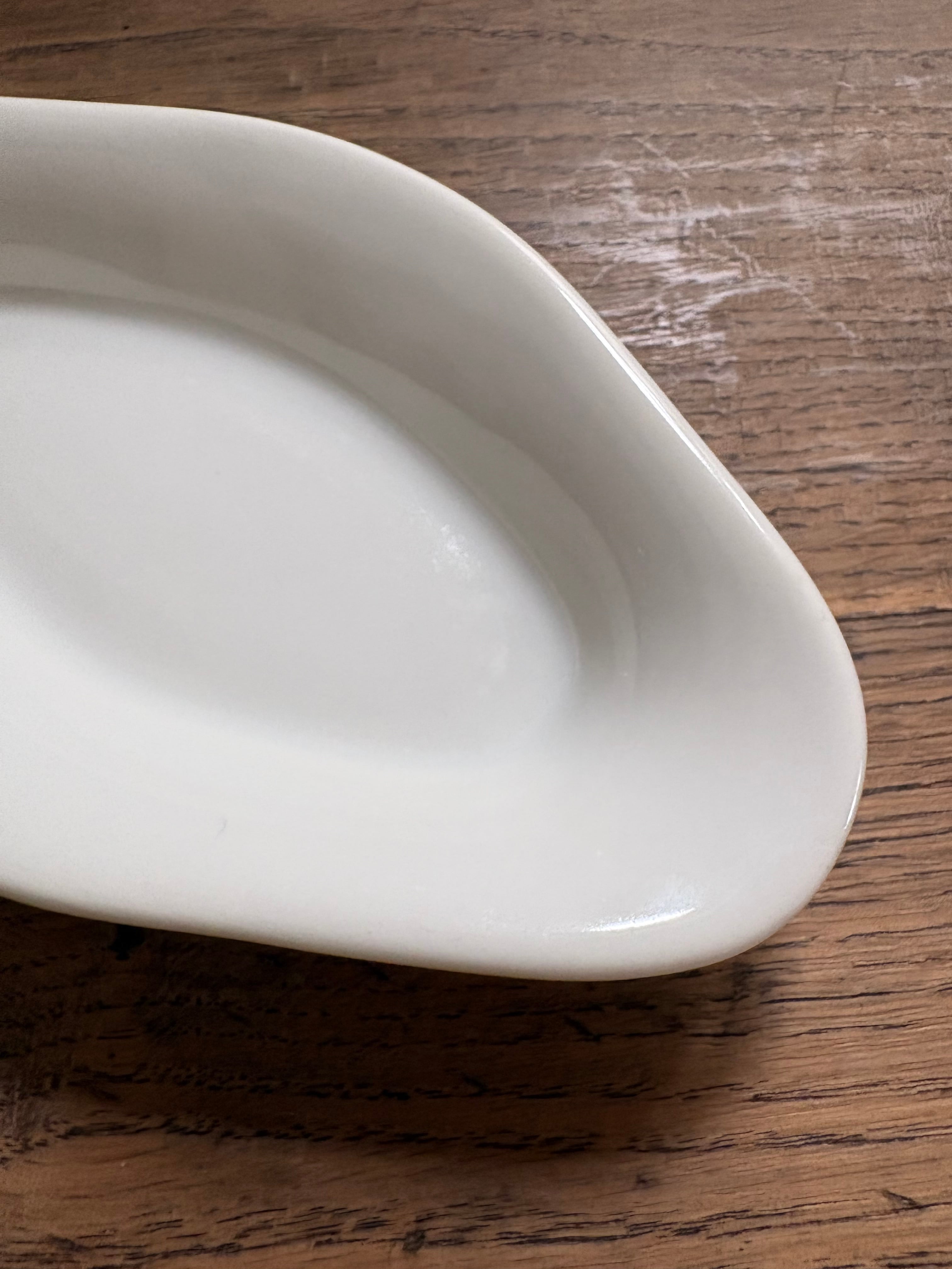 ヨーロッパではレストランなどでよく使われる業務用のお皿で、ぽってりと厚みのある器は頑丈に作られているのが特徴的。料理を引き立たせるシンプルな白でデザートなどに丁度良いサイズ感となっております。
