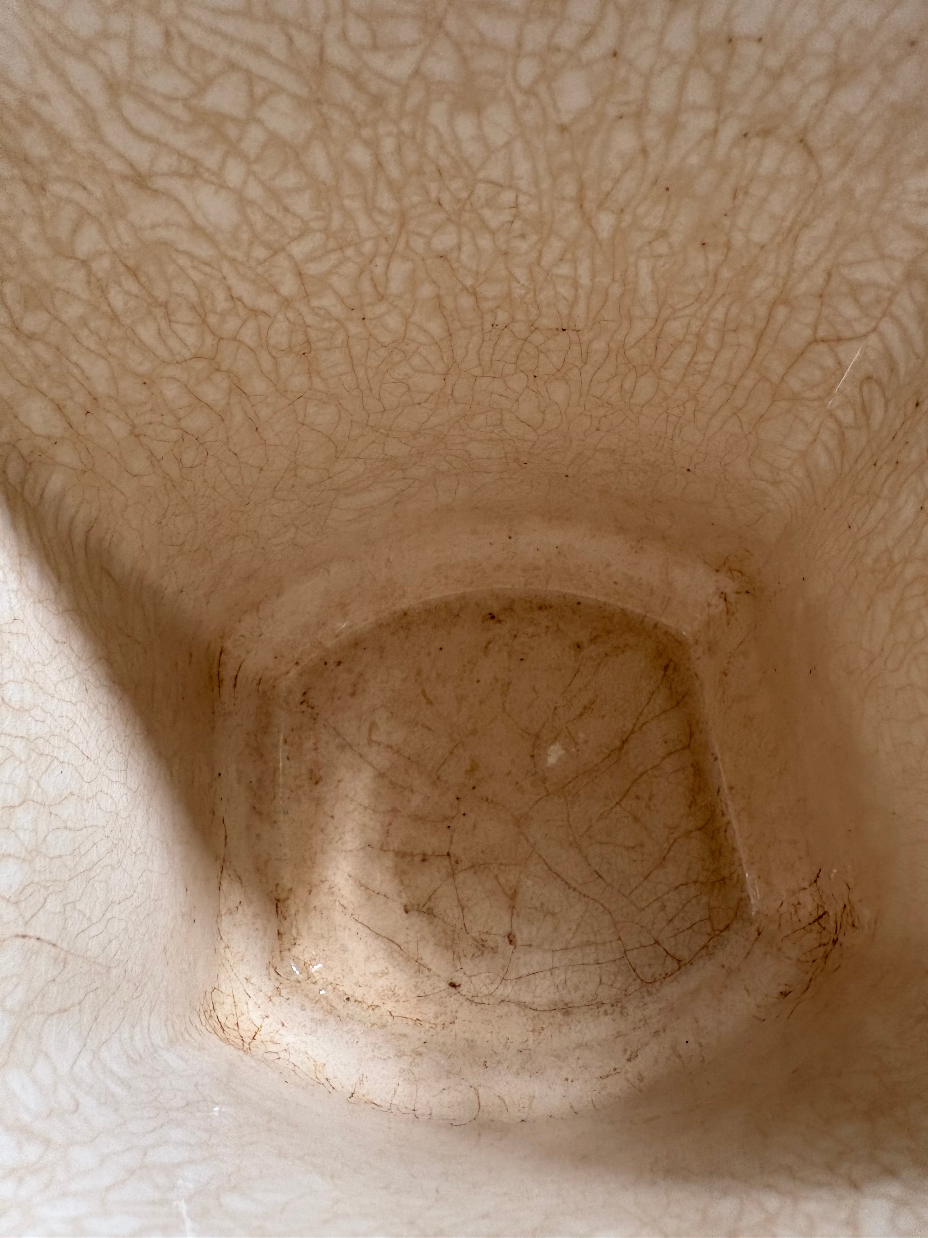 状態に関して、陶磁器は焼く際に釉薬が気泡となって表面に小さな突起や穴として現れることがございます。また、貫入という薄いラインが入ることもございますが、これらは焼物としては自然な現象のため、ダメージとは別物とご理解くださいませ。