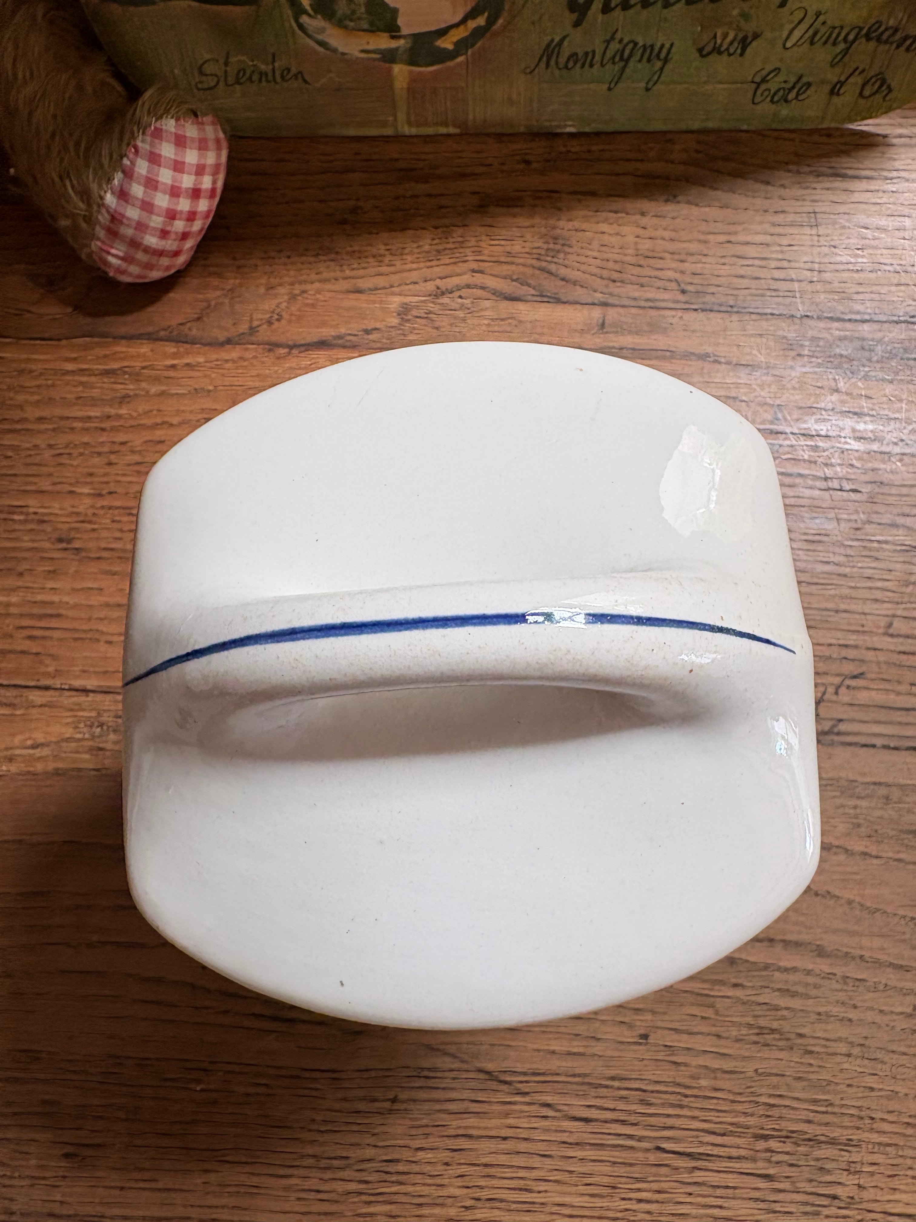 蓋のブルーの縁どりは後ろ側のみ書かれていない様子、剥げているわけではございません。