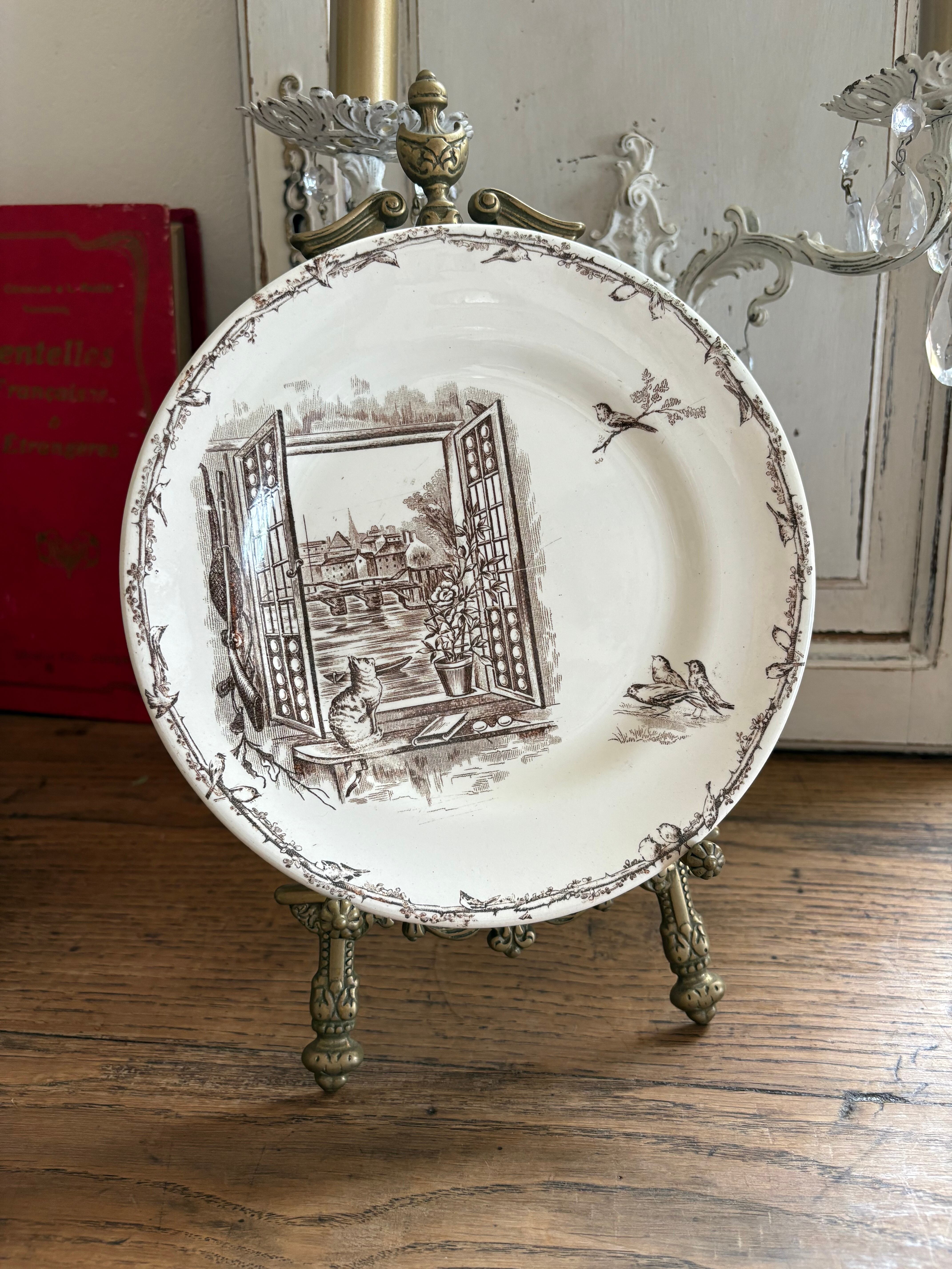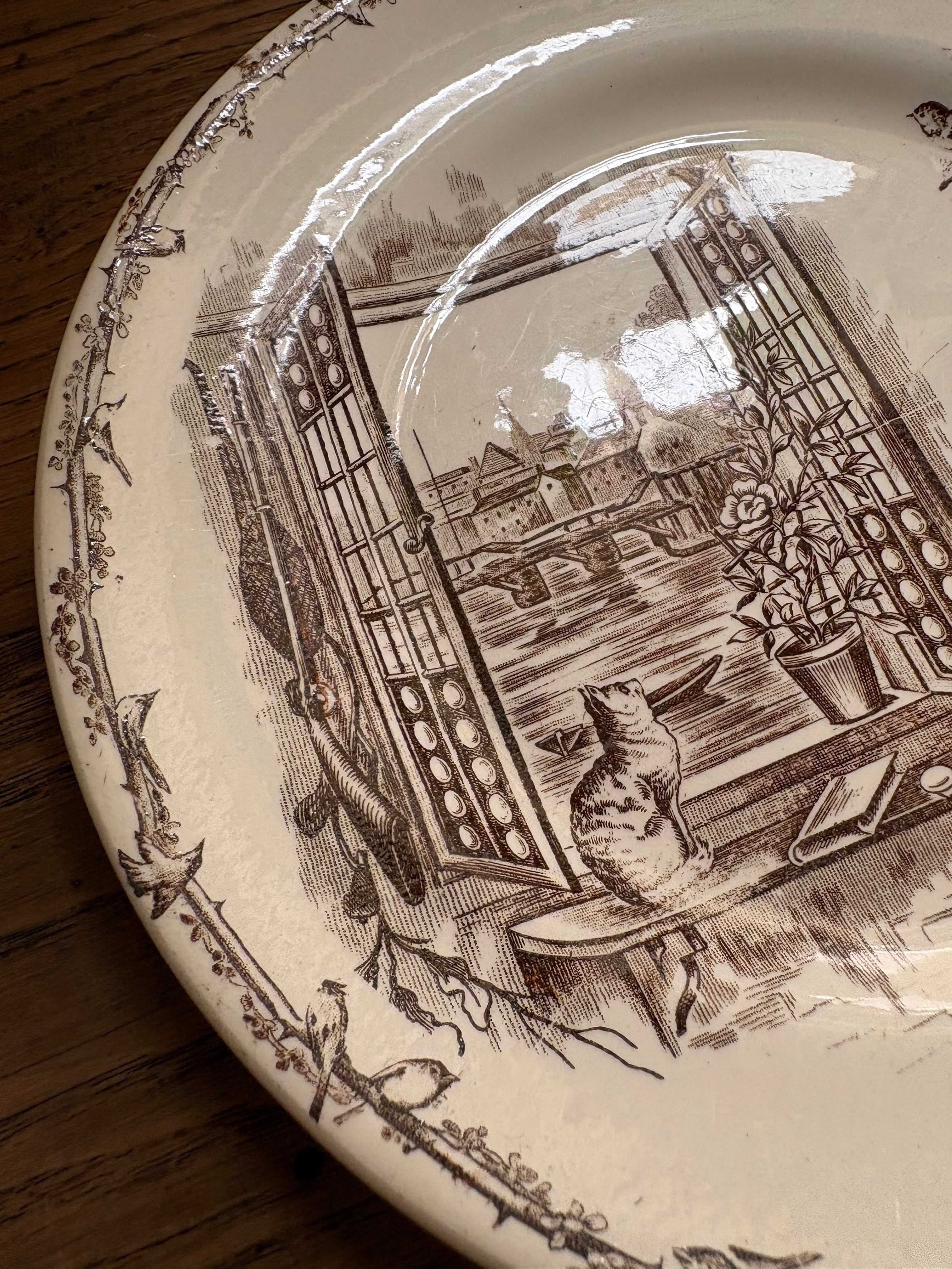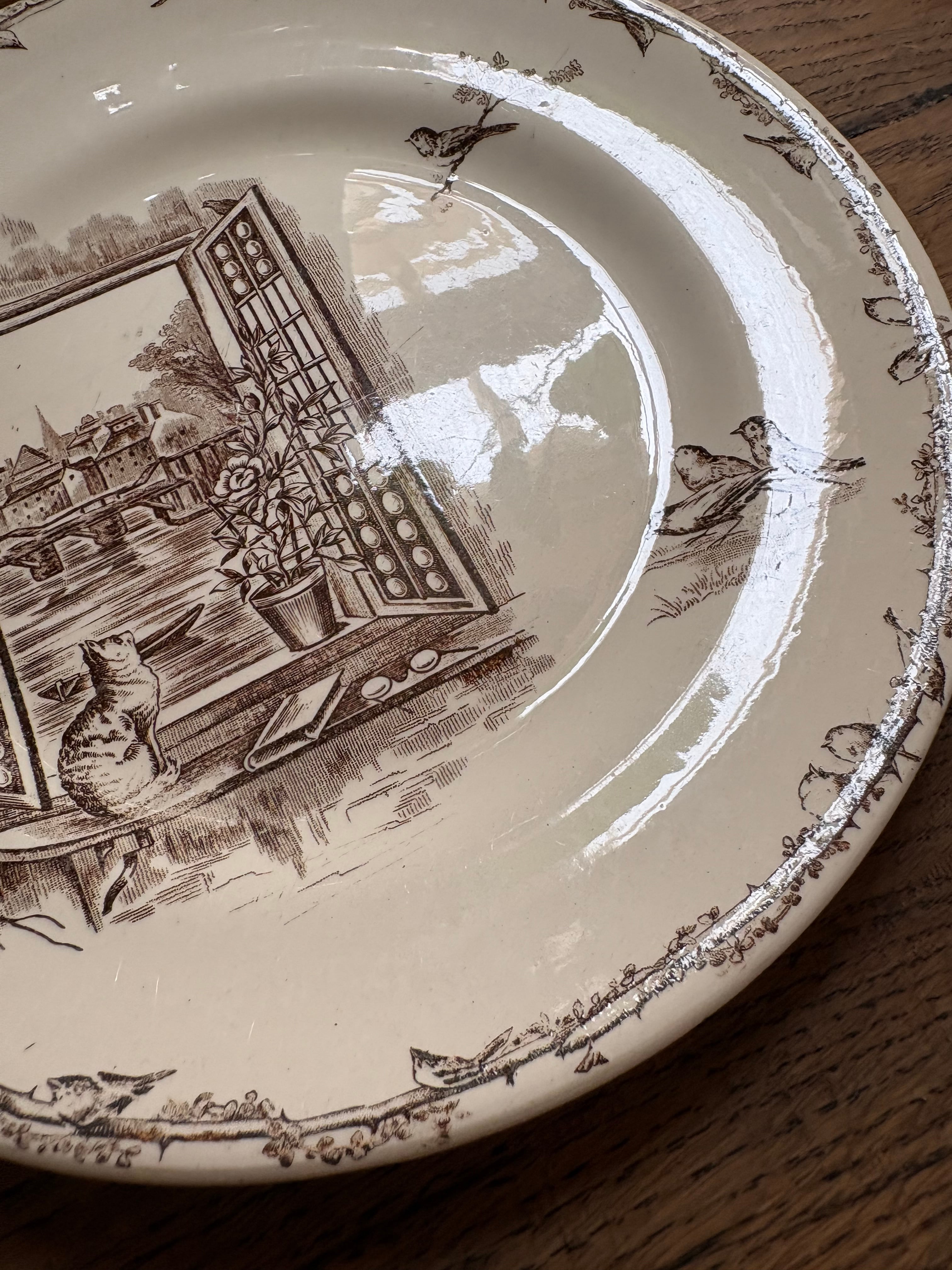 H.B&Cie 窓辺の猫と小鳥のプレート フランスアンティーク アンティークプレート ショワジールロワ