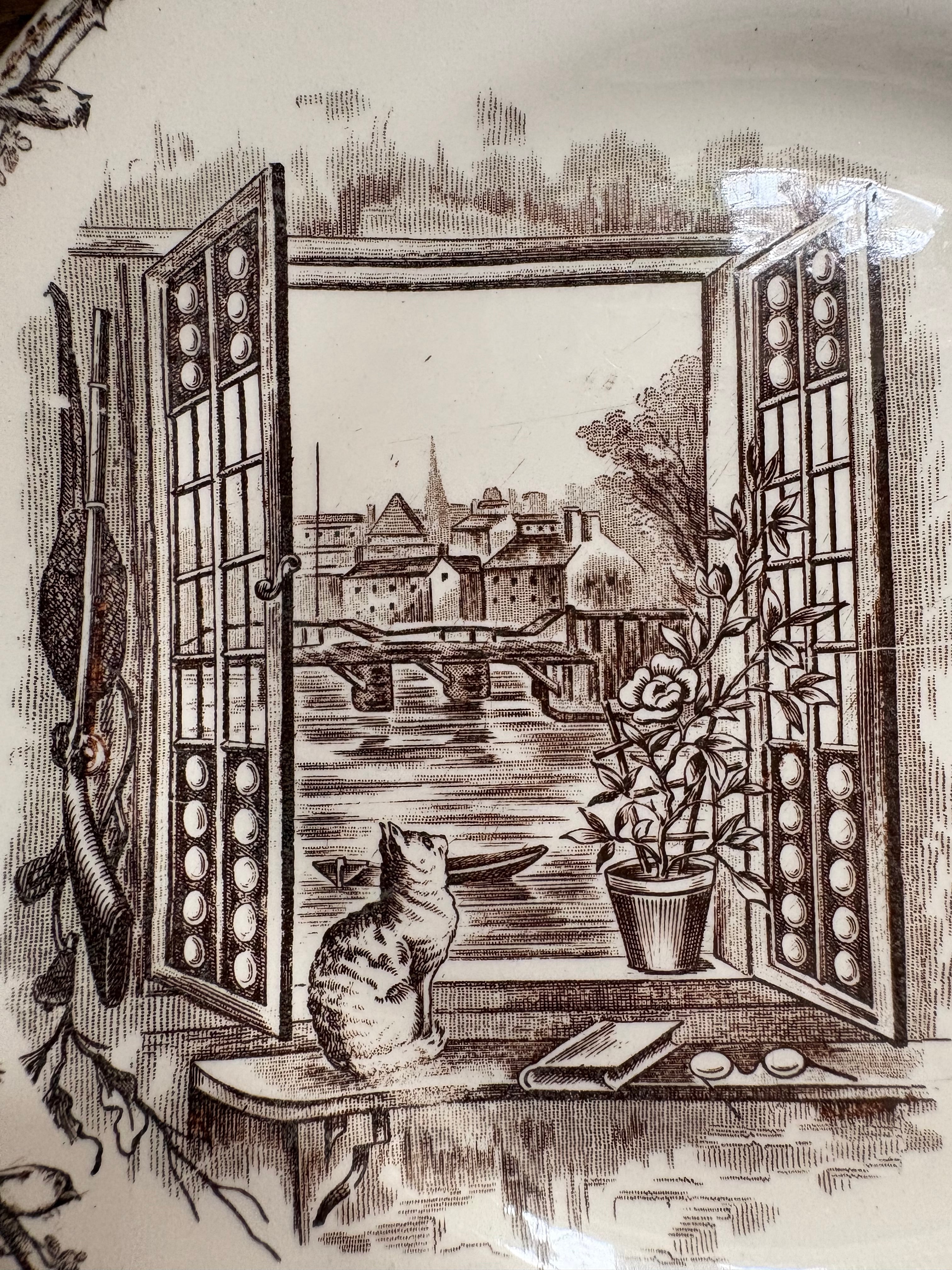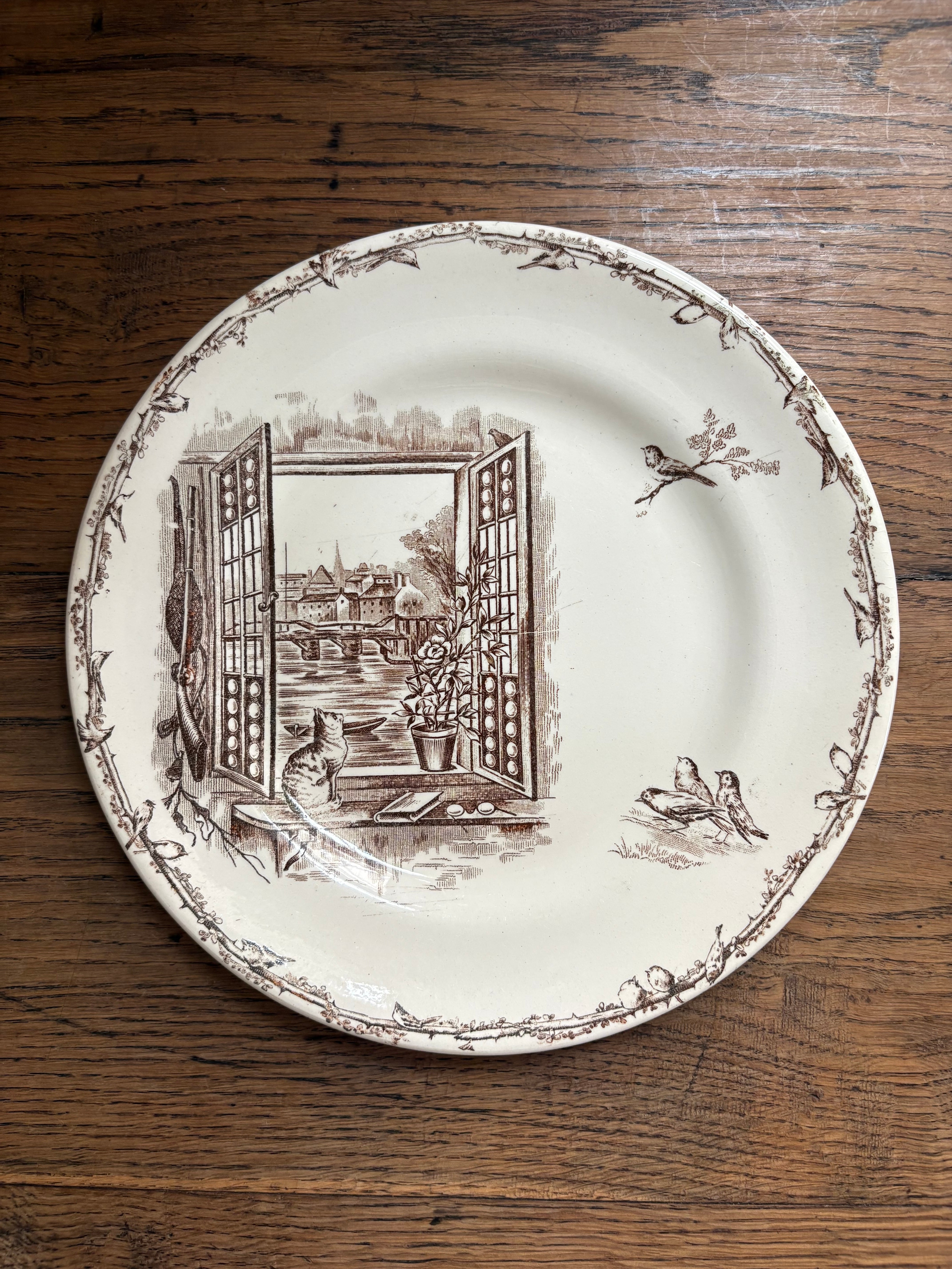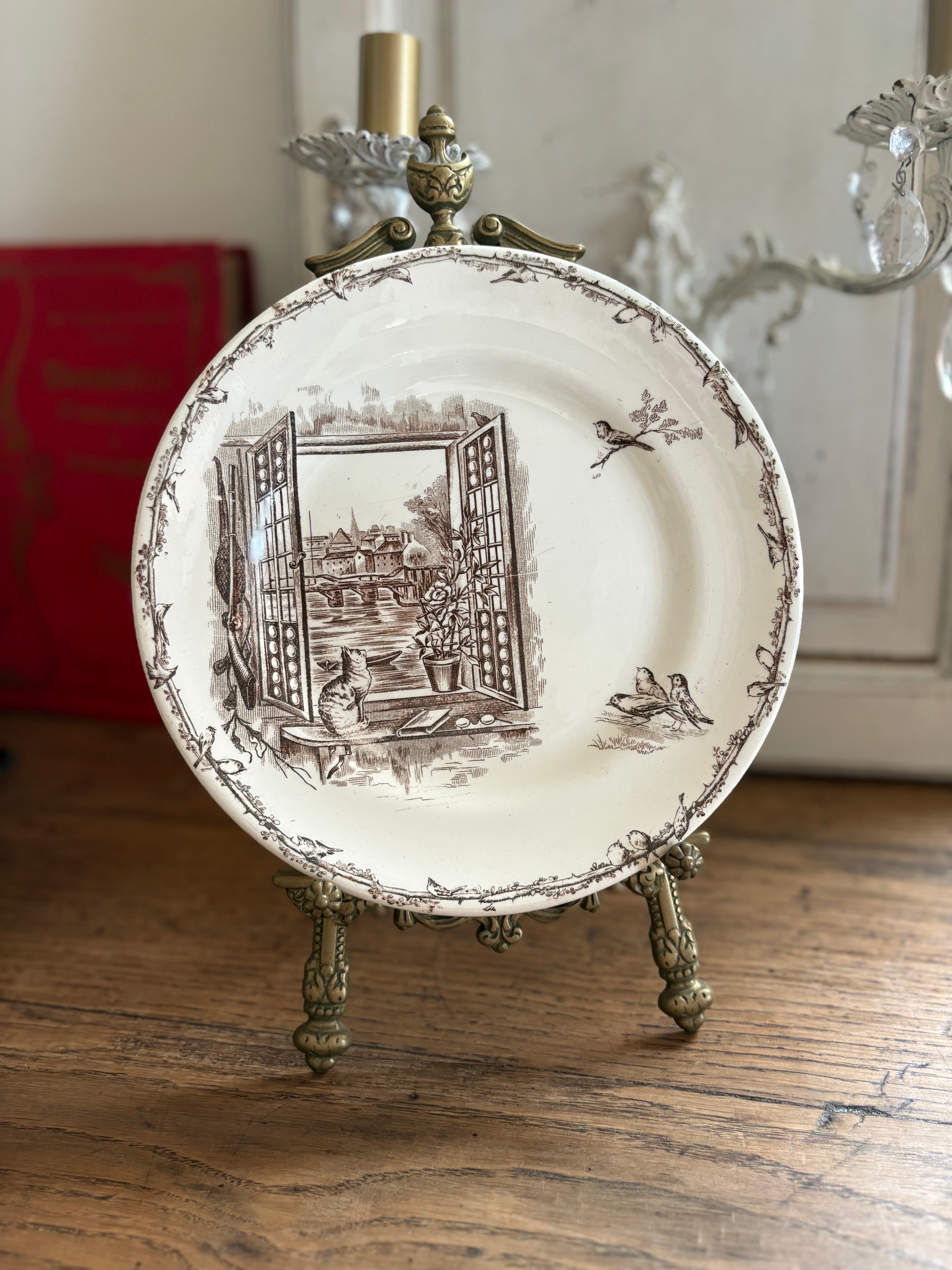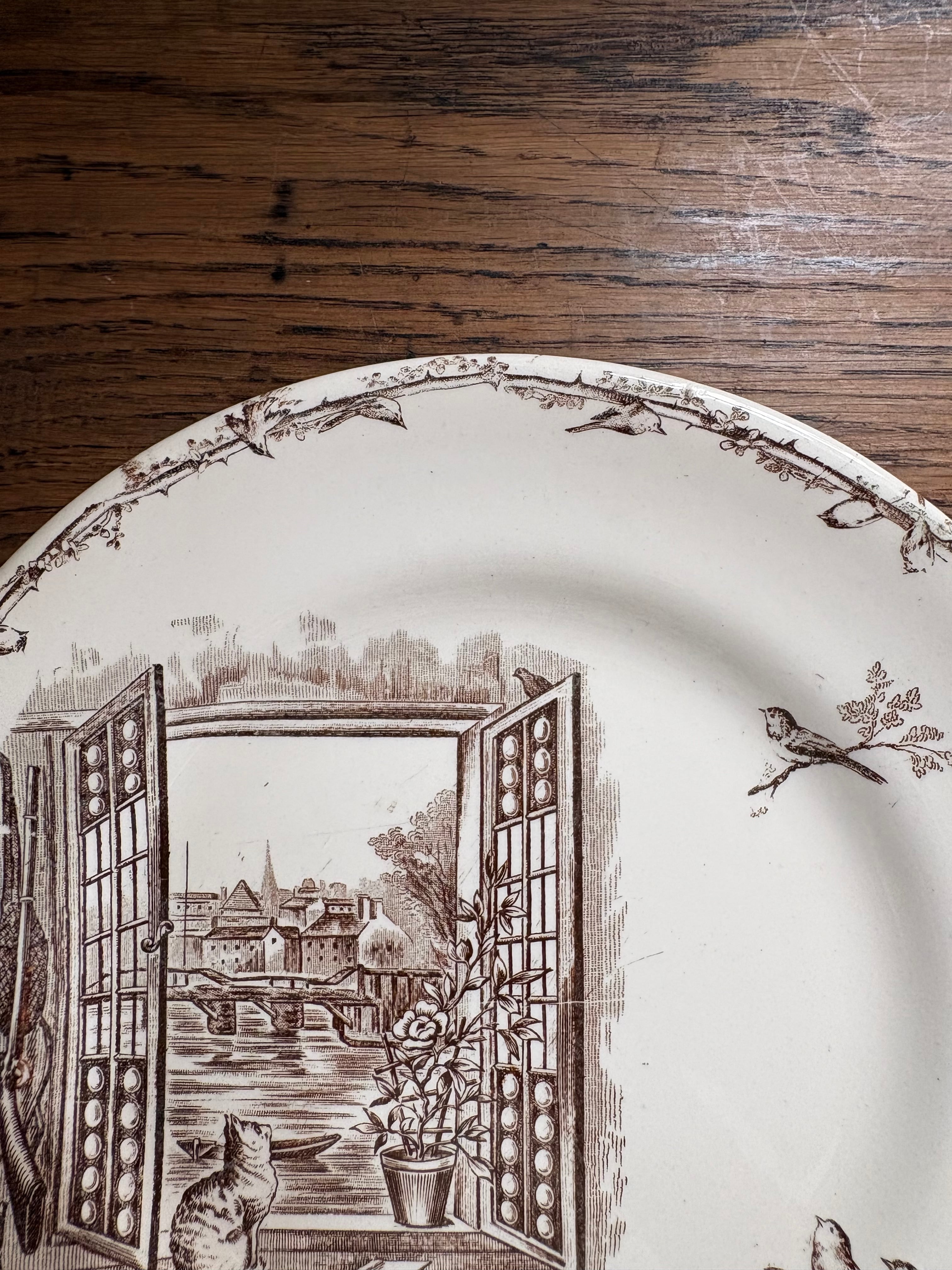 H.B&Cie 窓辺の猫と小鳥のプレート フランスアンティーク アンティークプレート ショワジールロワ