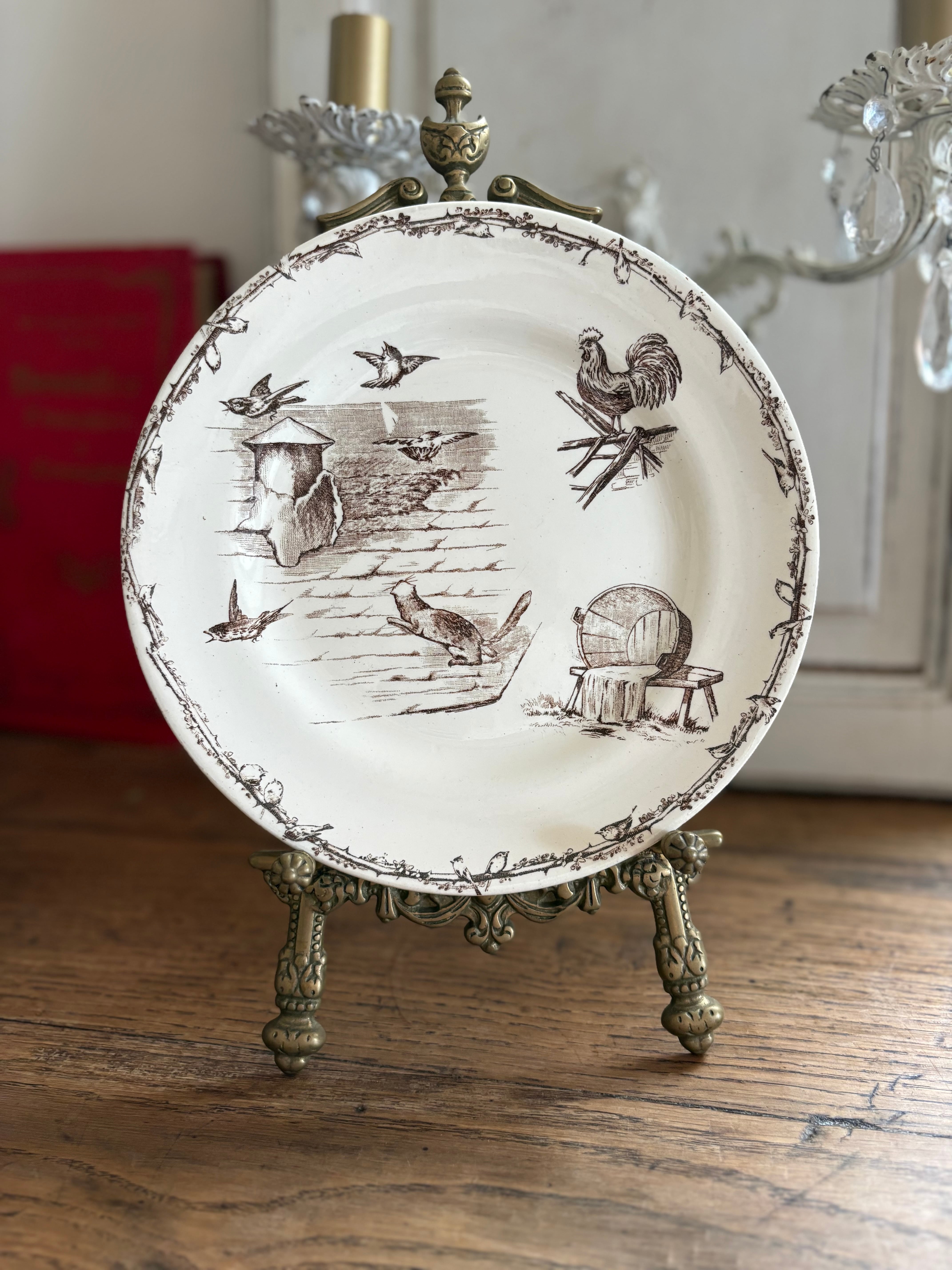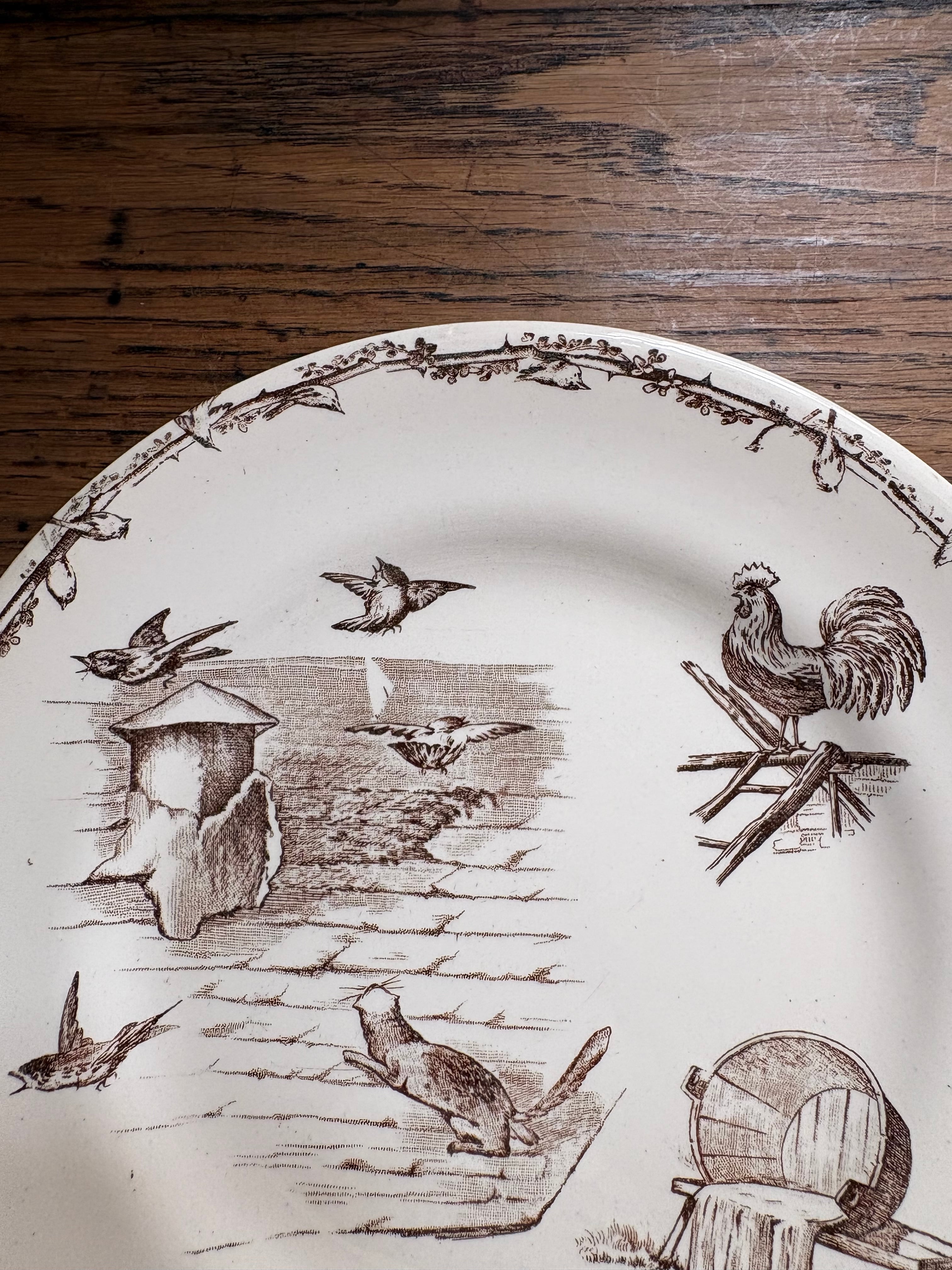 H.B&Cie 小鳥とニワトリのプレート フランスアンティーク アンティークプレート ショワジールロワ