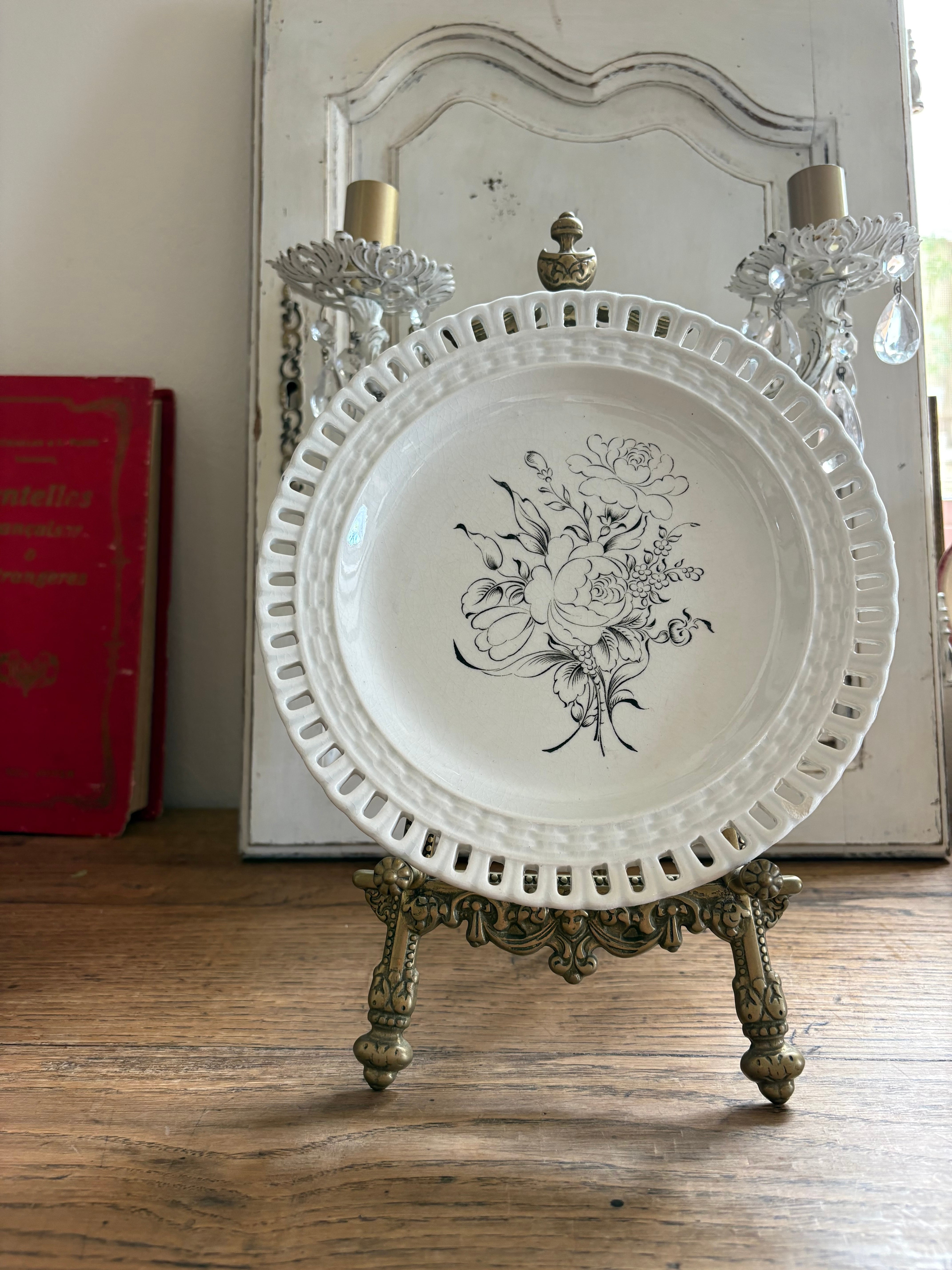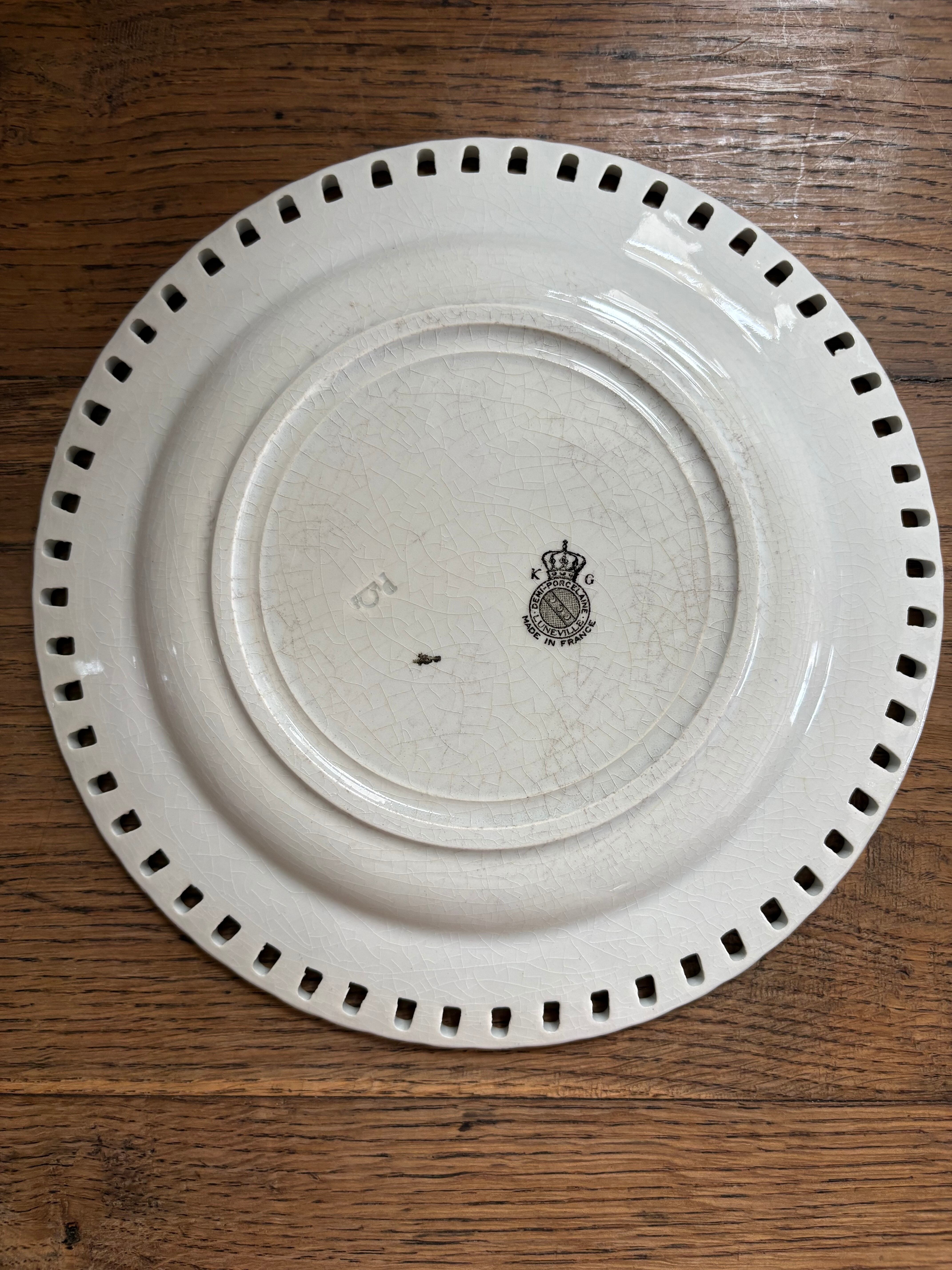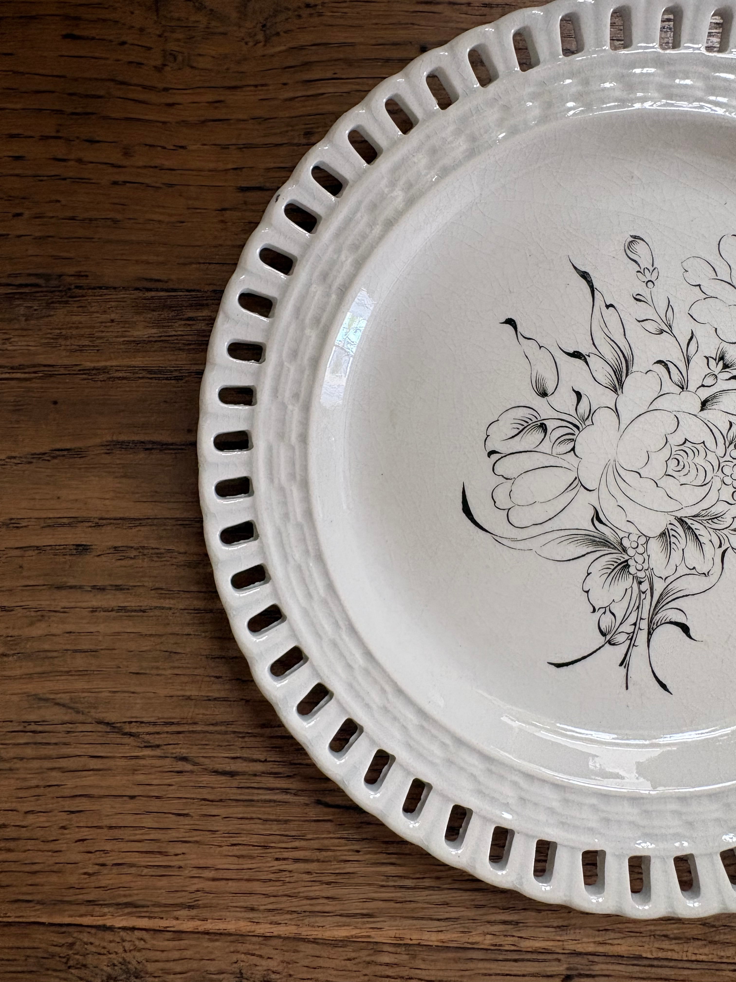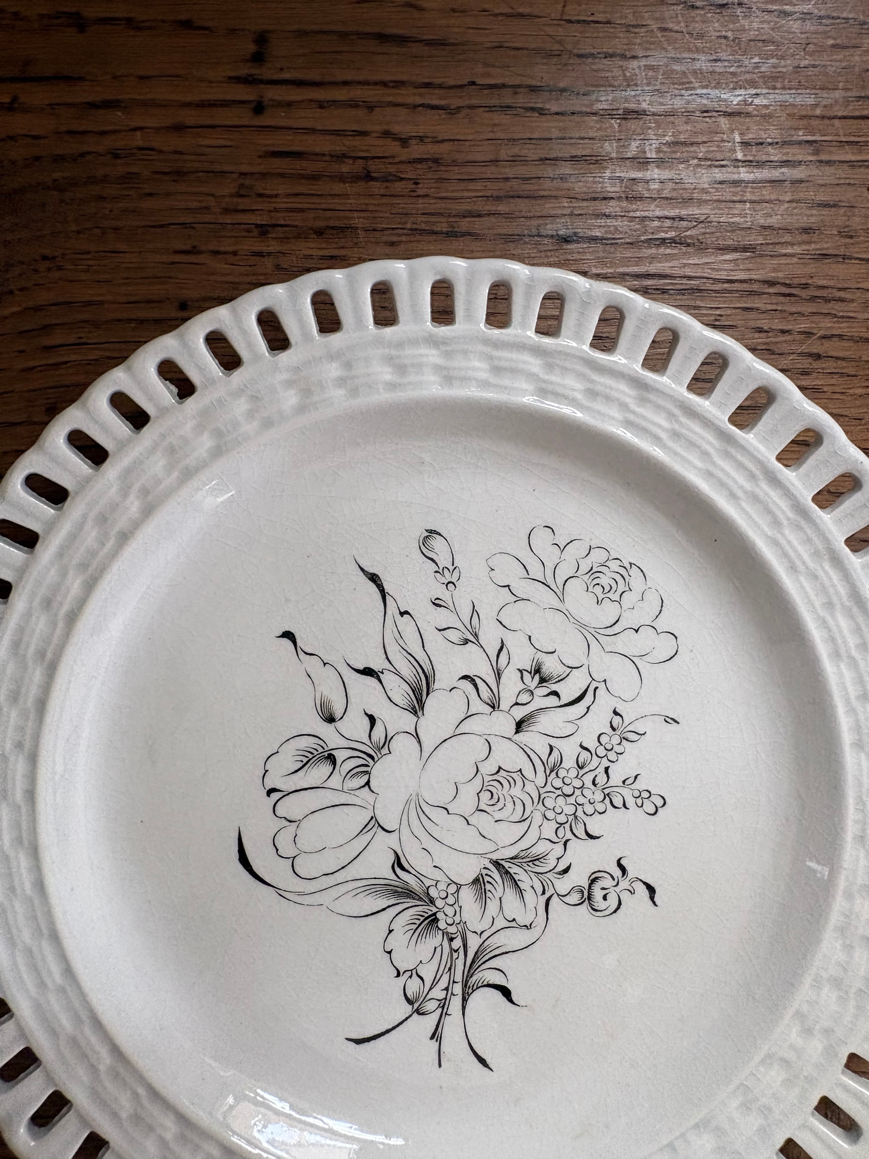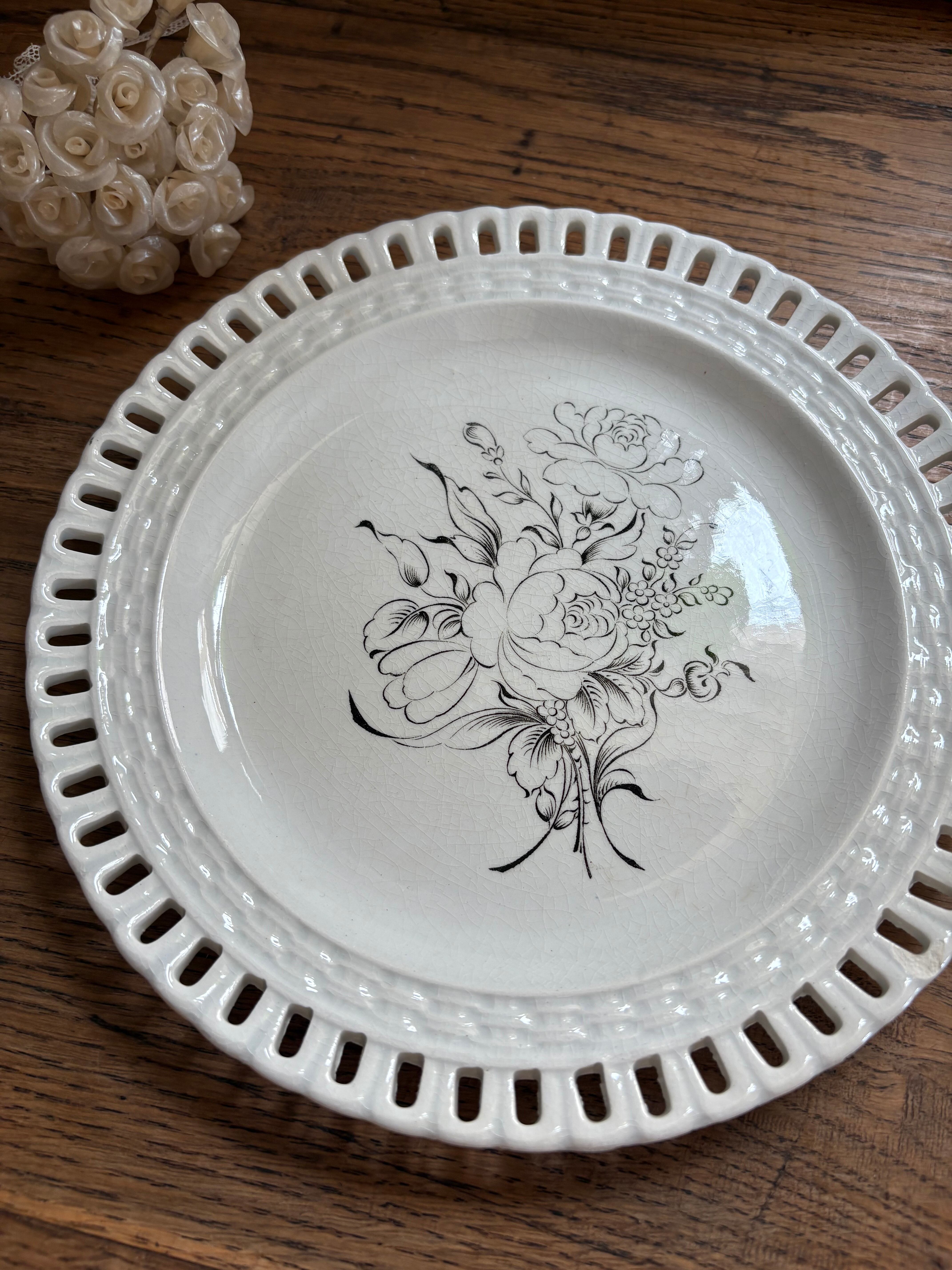 KG Luneville A Roseのパニエプレート パニエプレート フランスアンティーク アンティーク食器 デザートプレート 透かしリム 絵皿