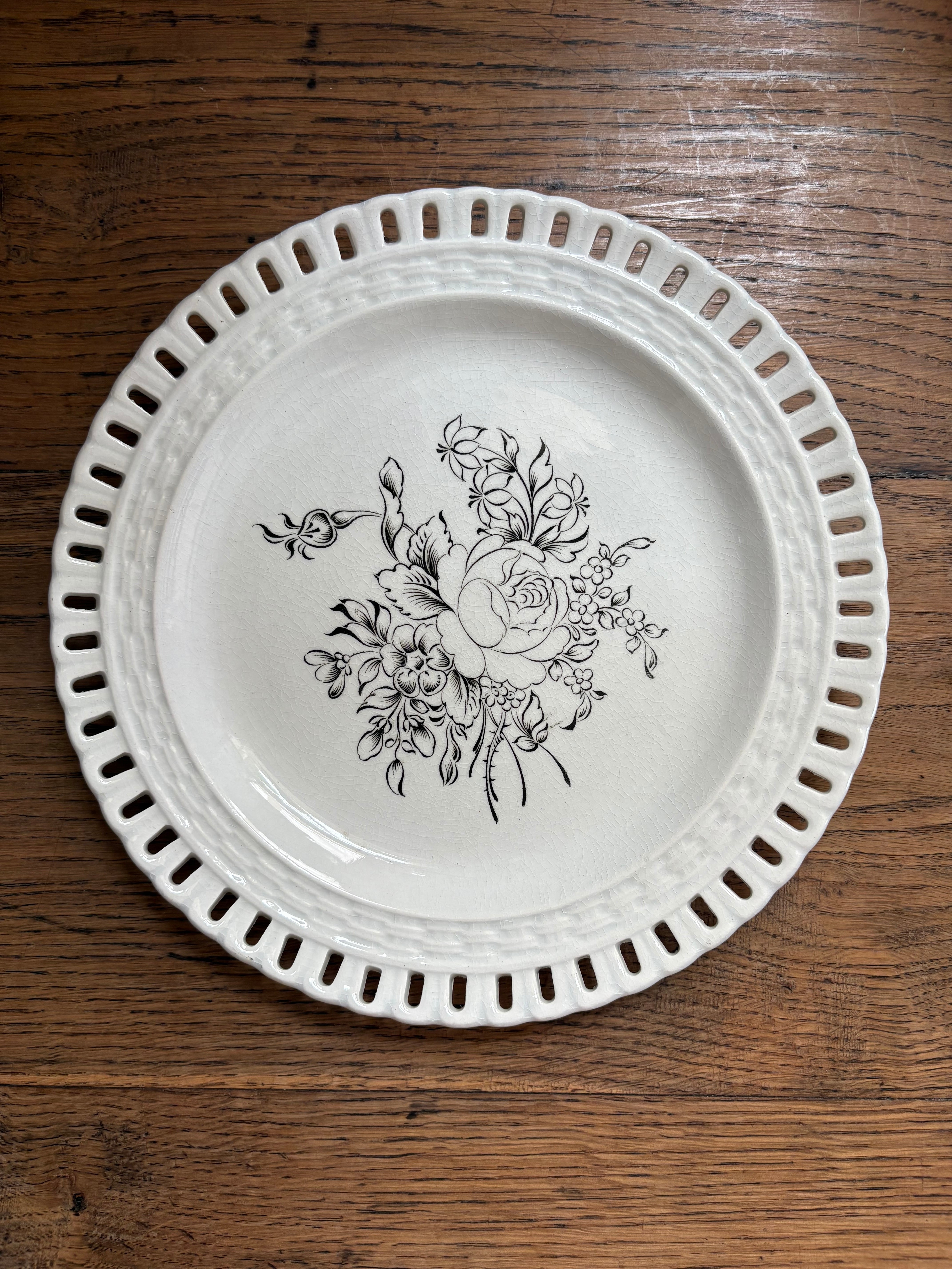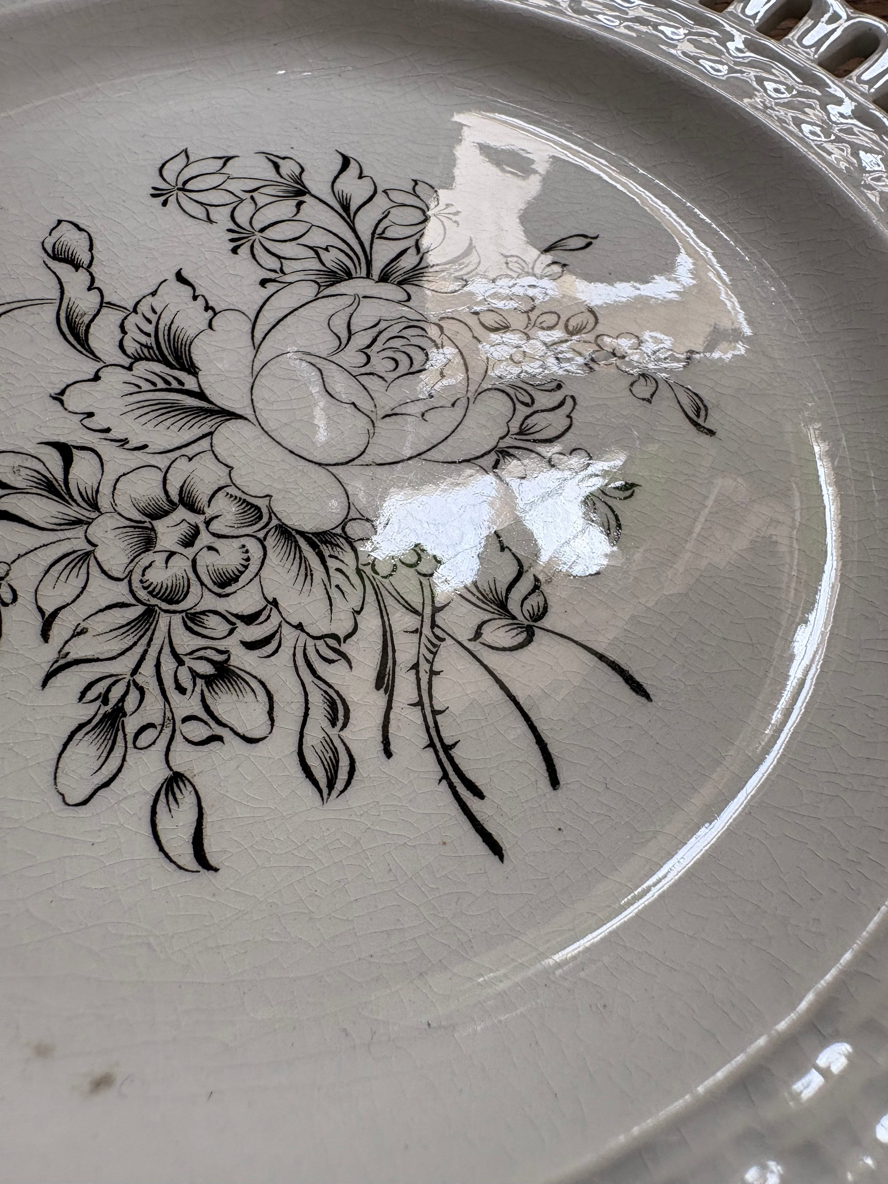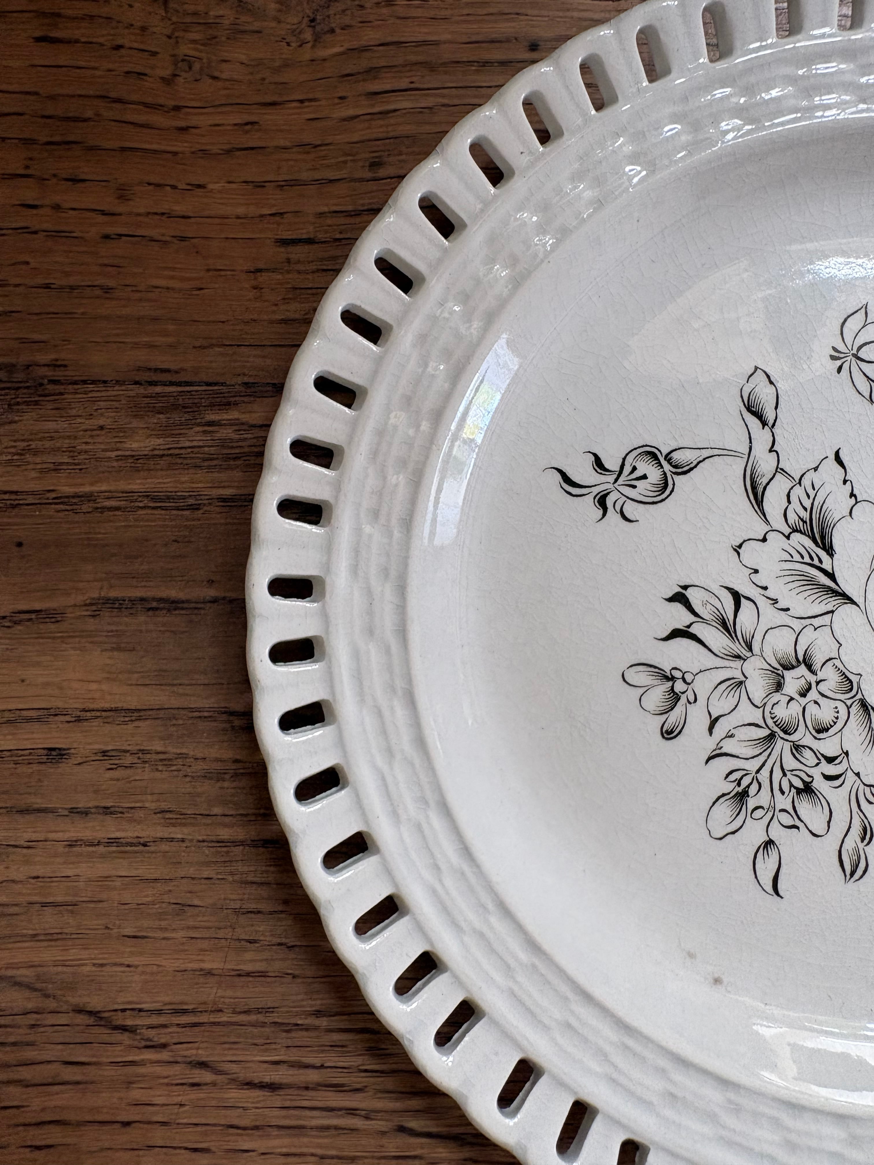 KG Luneville B Roseのパニエプレート パニエプレート フランスアンティーク アンティーク食器 デザートプレート 透かしリム 絵皿