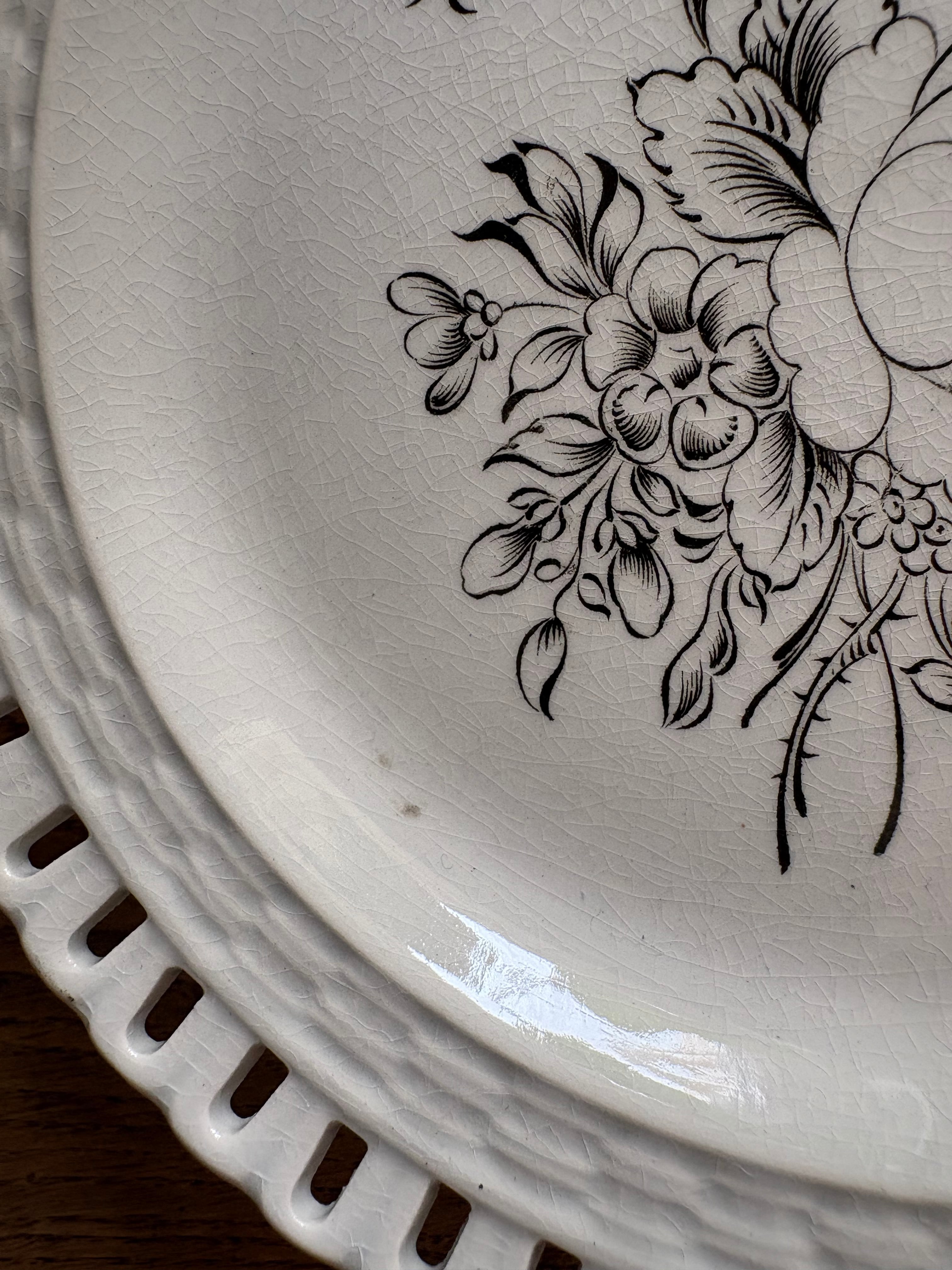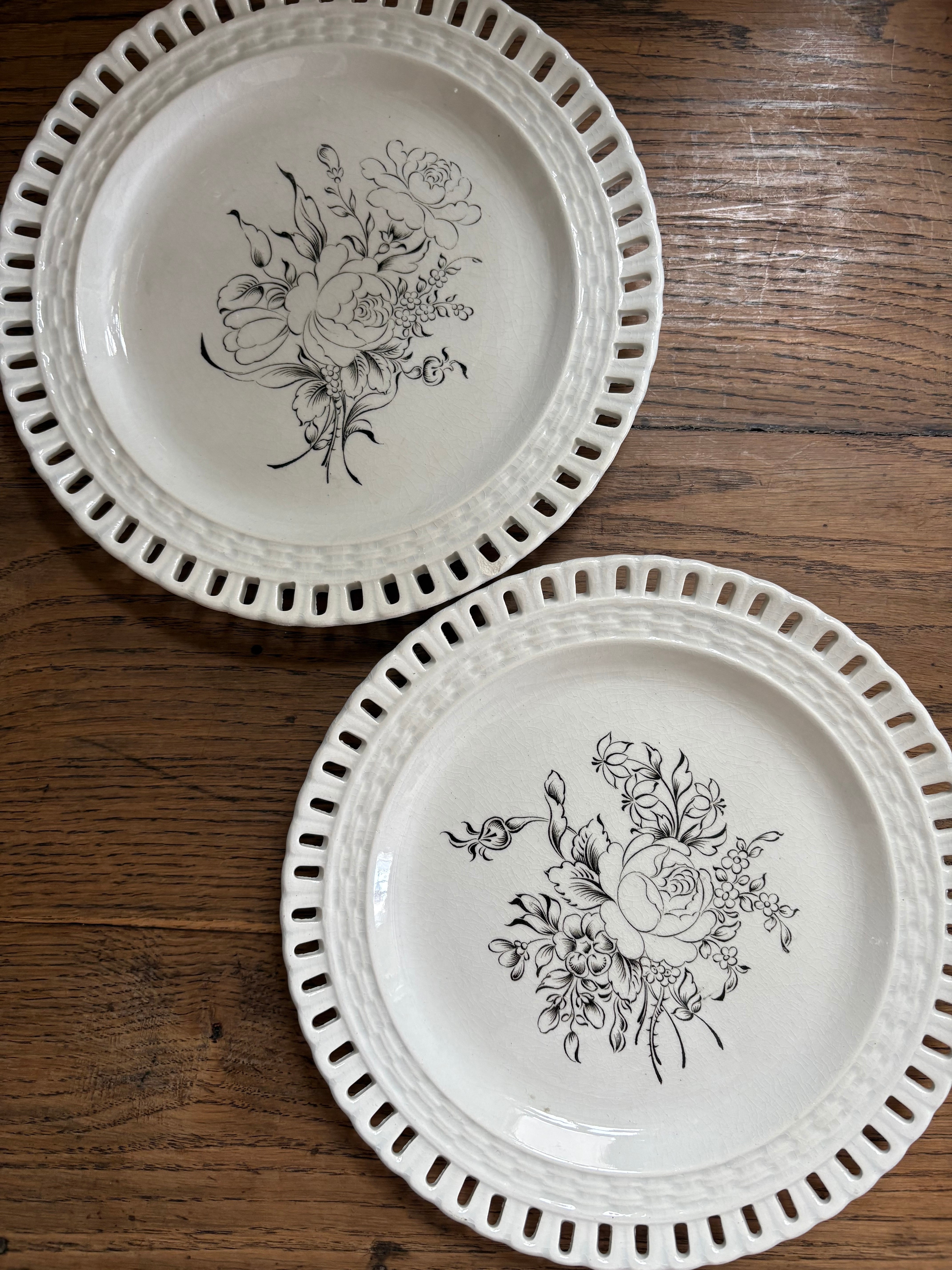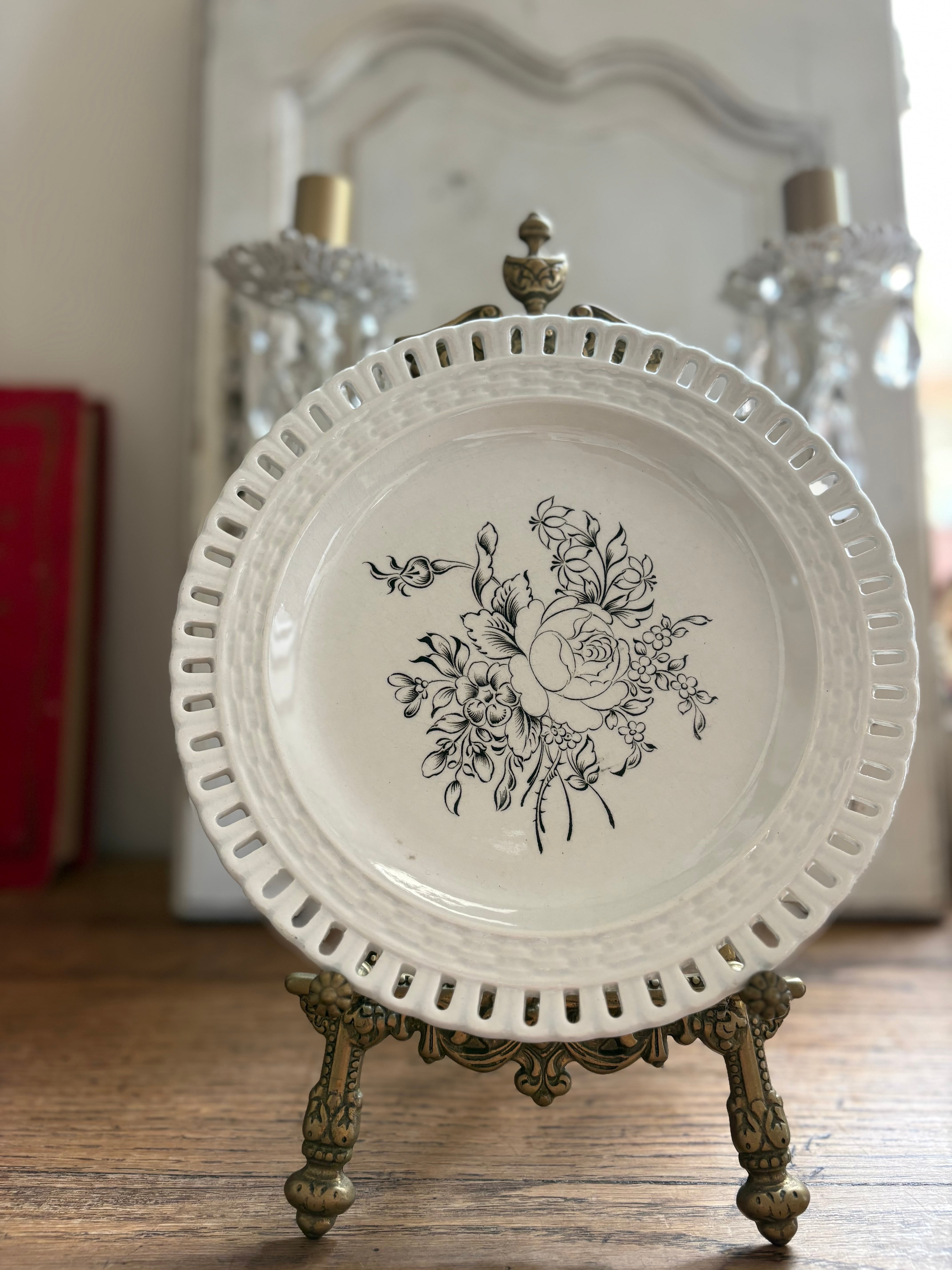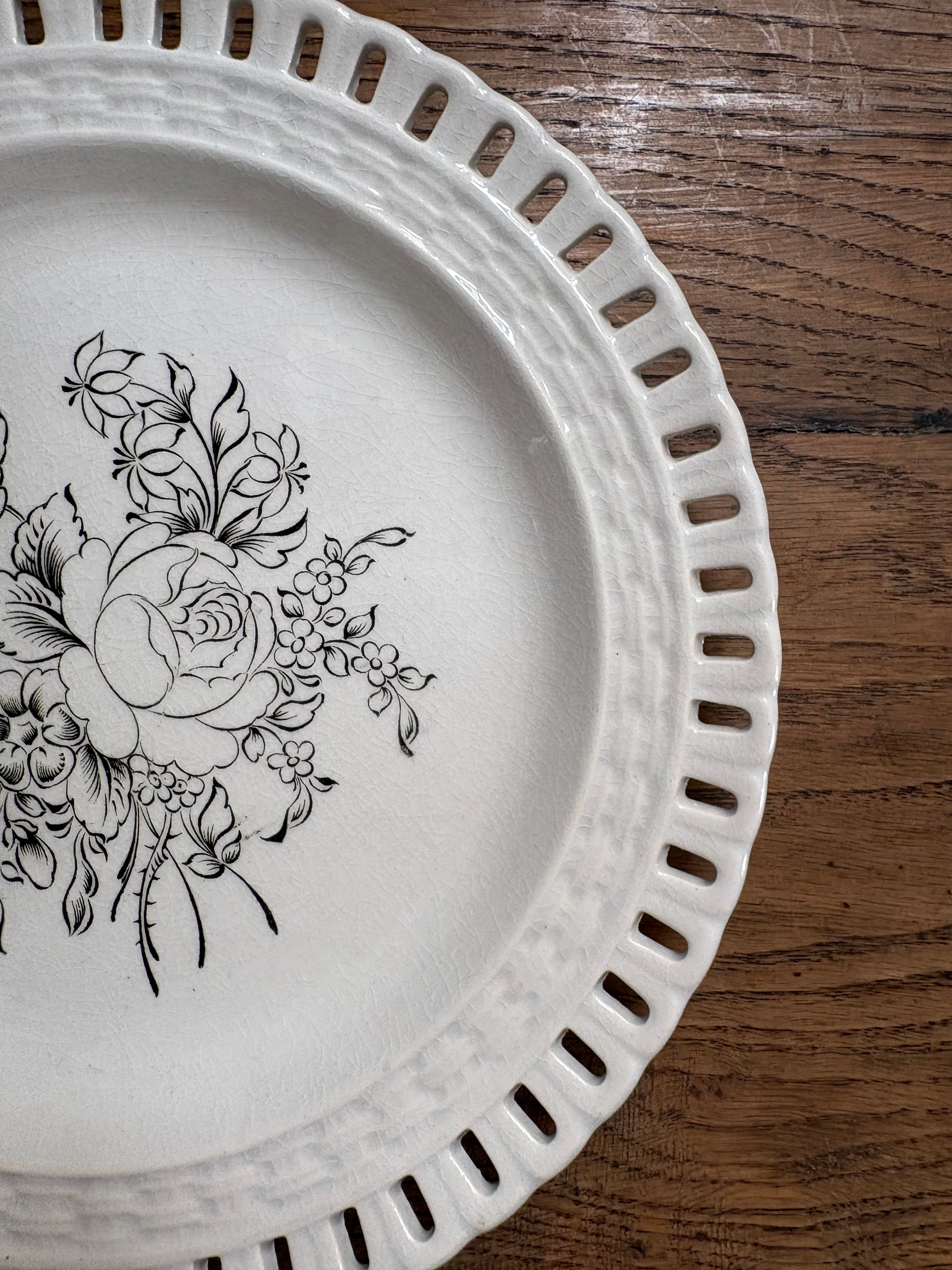 KG Luneville B Roseのパニエプレート パニエプレート フランスアンティーク アンティーク食器 デザートプレート 透かしリム 絵皿