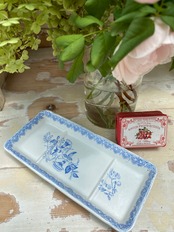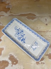 Creil et MontereauのBOUQUETSシリーズのソープディッシュ。優しい色合いのお花とリムを走る装飾が可愛いらしい一品。