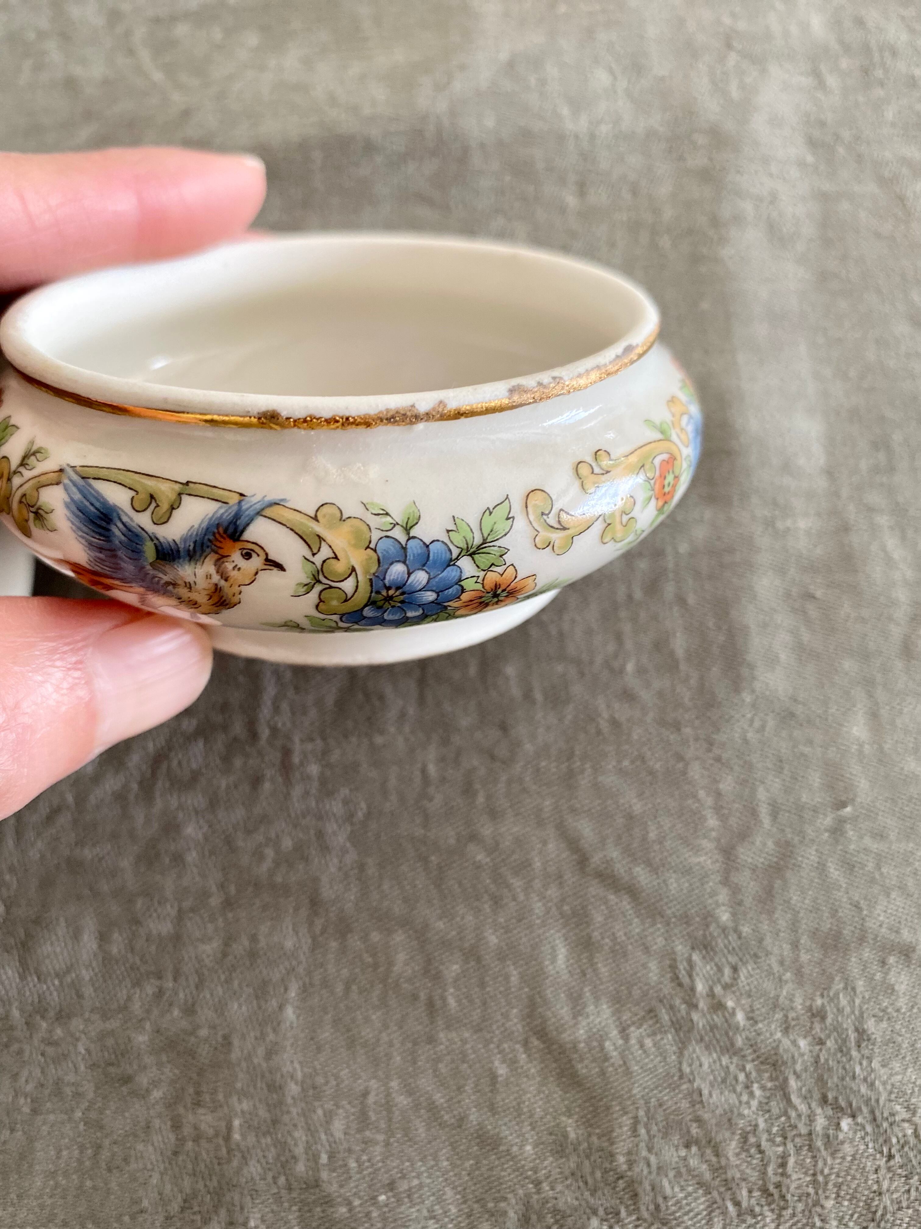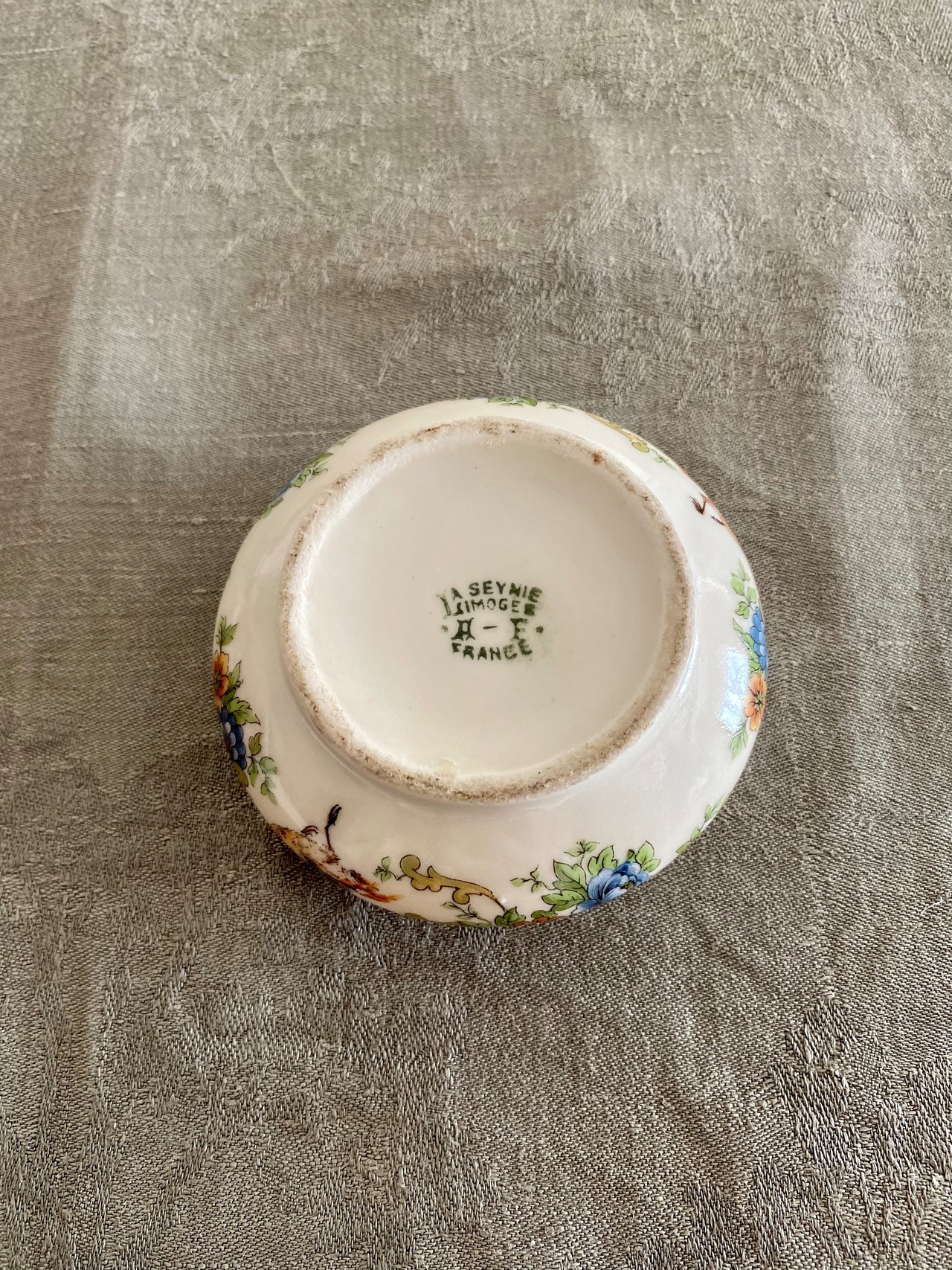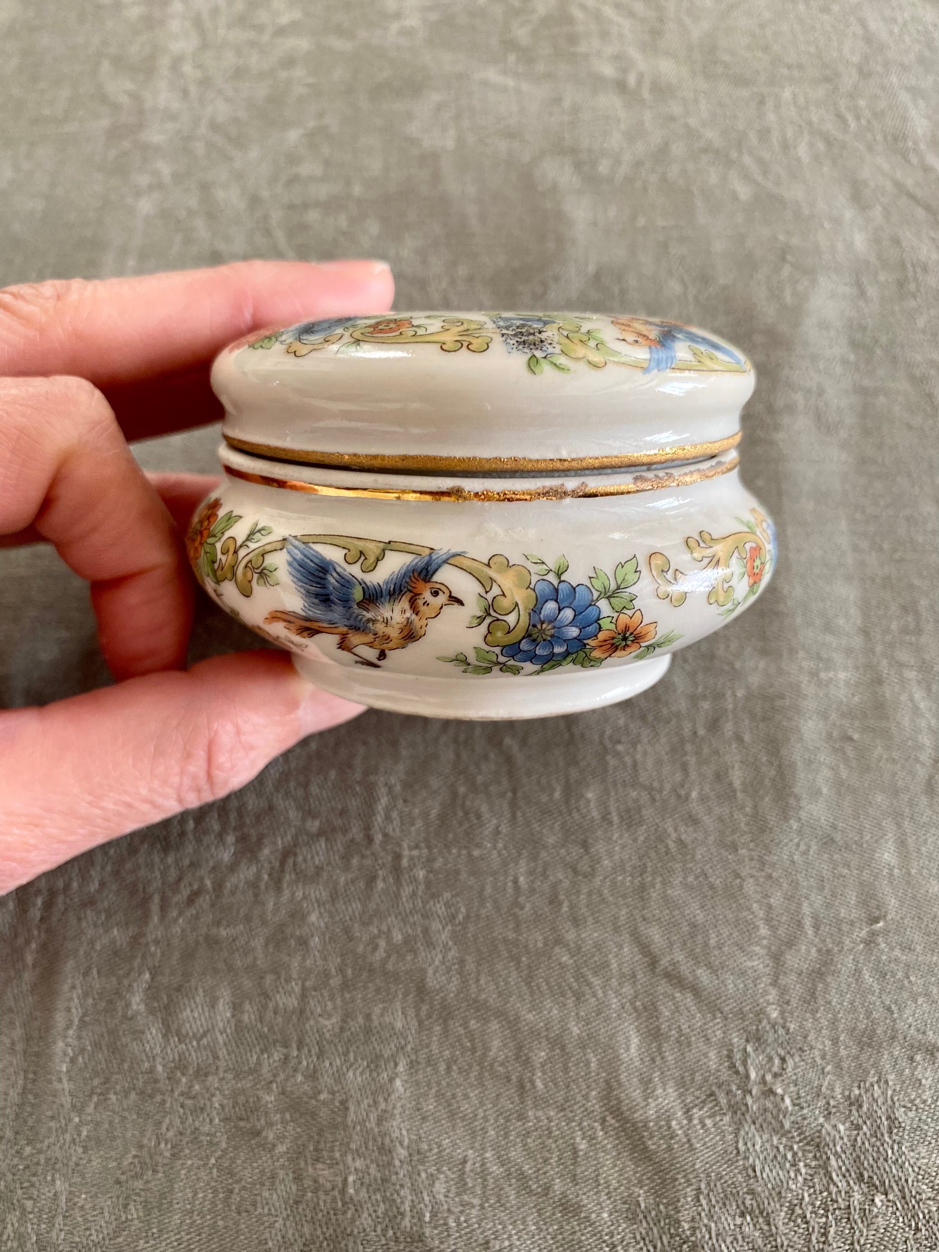 ヴァンヴの蚤の市で出逢った陶器のジュエリーボックス(小物入れ)。バックスタンプからLimogesの物とわかります。
