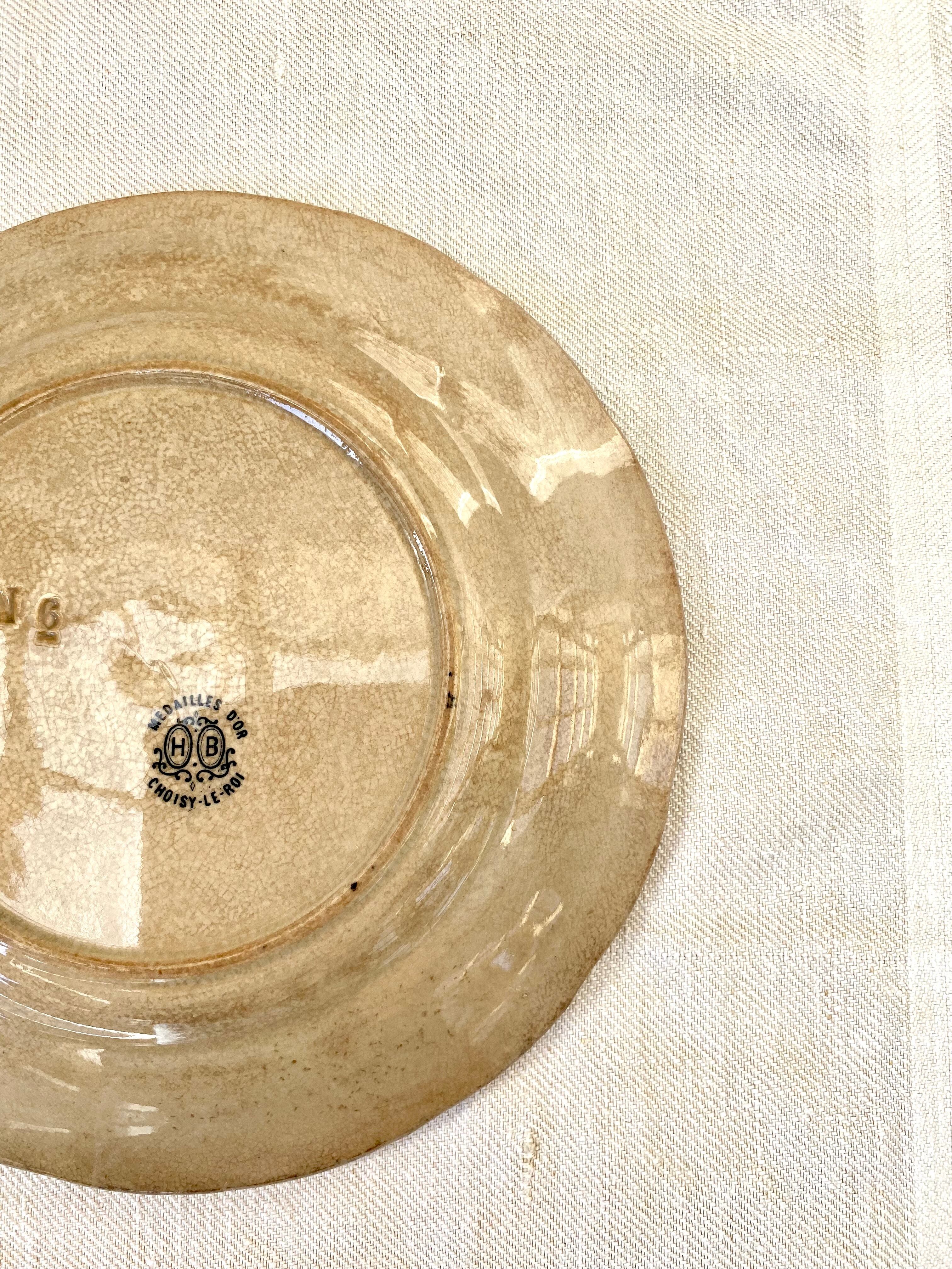 HB &Cie Choisy le Roi / 枯れたグリザイユのプレート フランスアンティーク