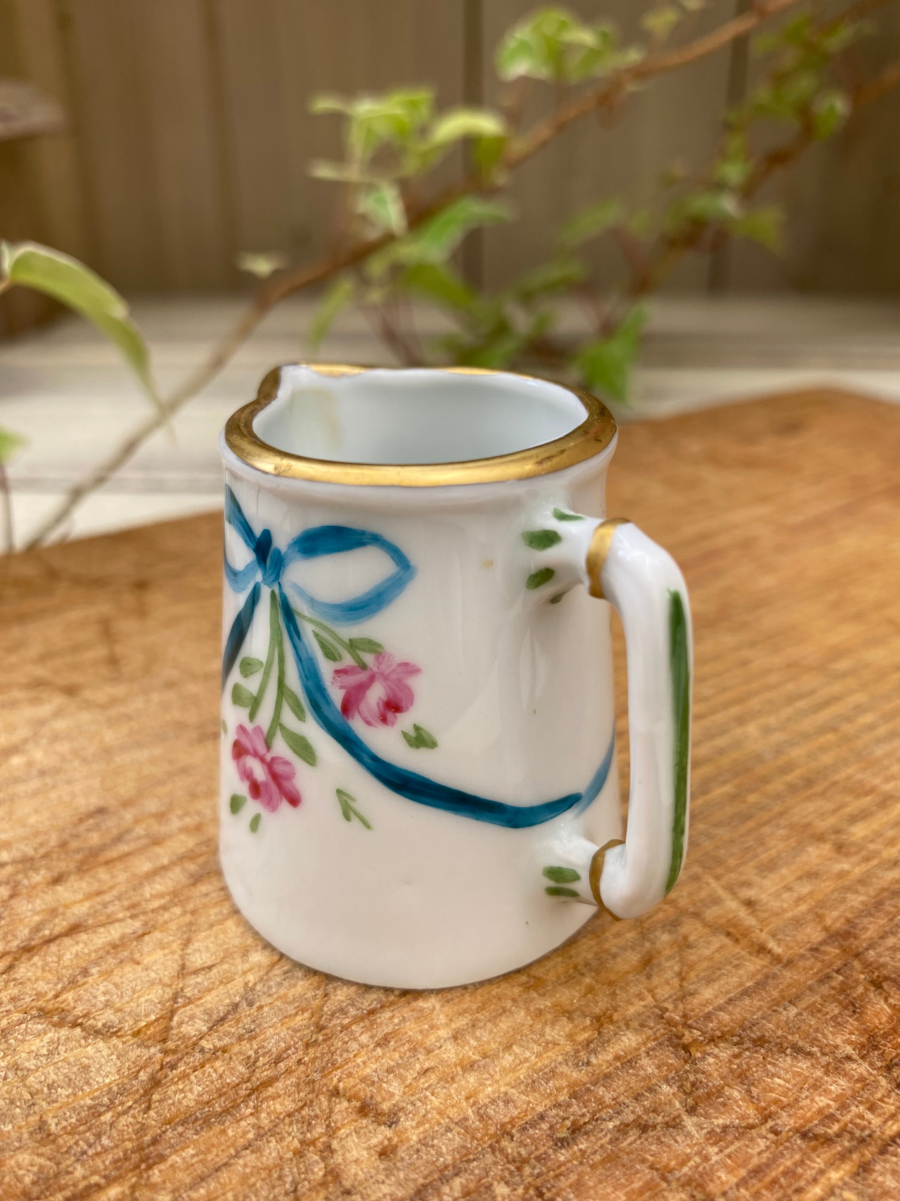 Limoges ディネット ミルクピシェ dinette フランスアンティーク アンティーク食器 おままごと ハンドペイント リボンのカップ