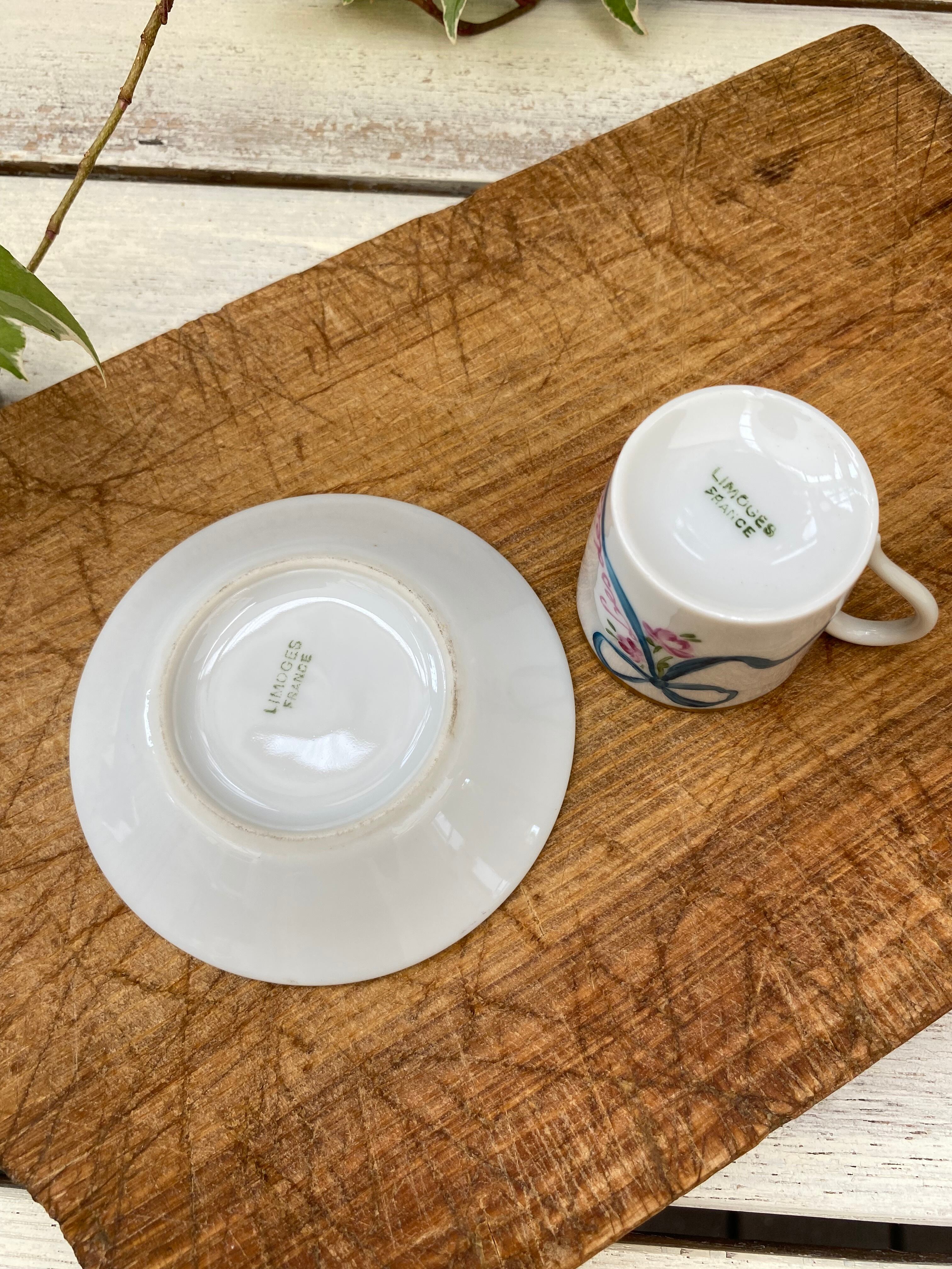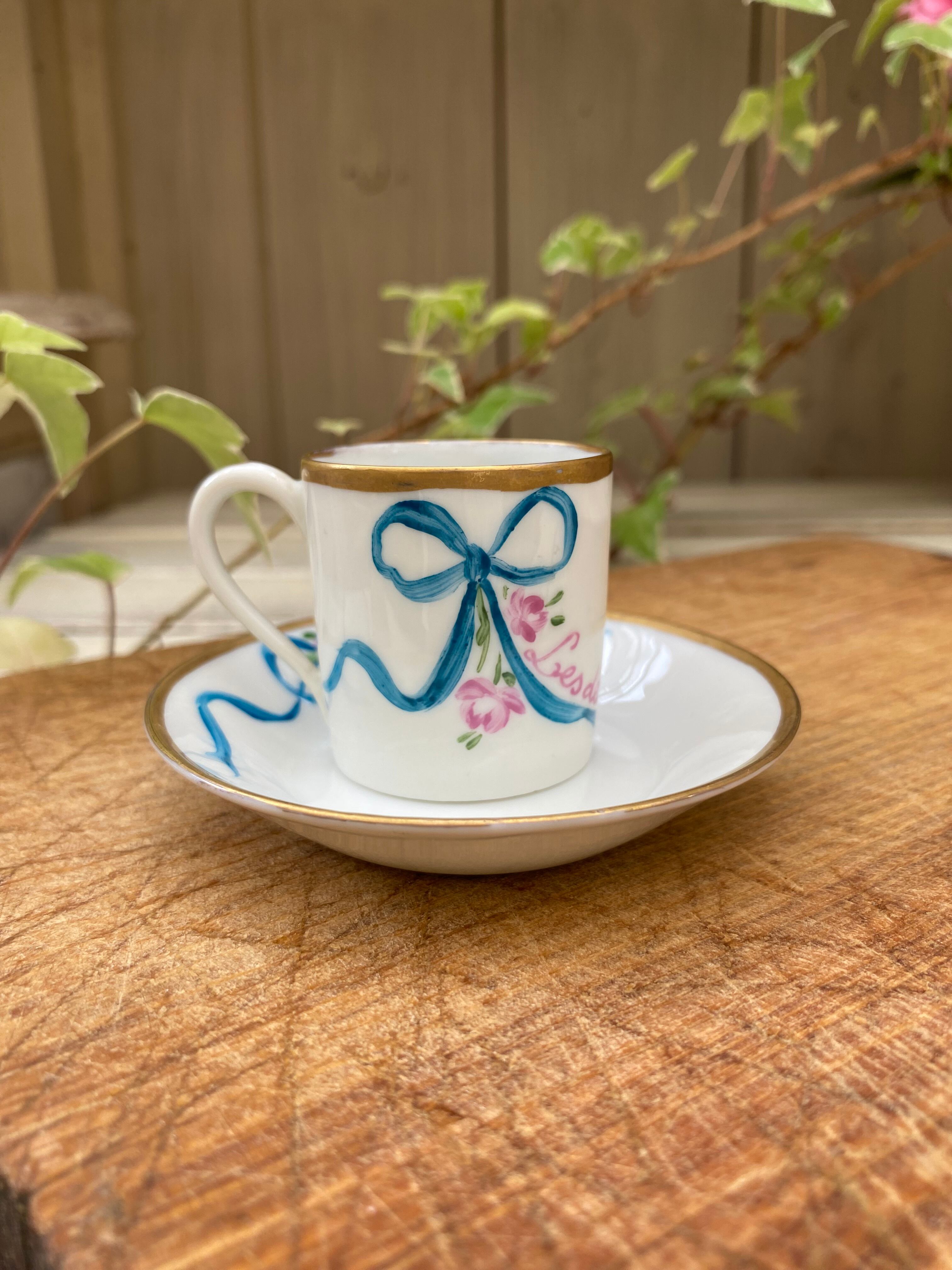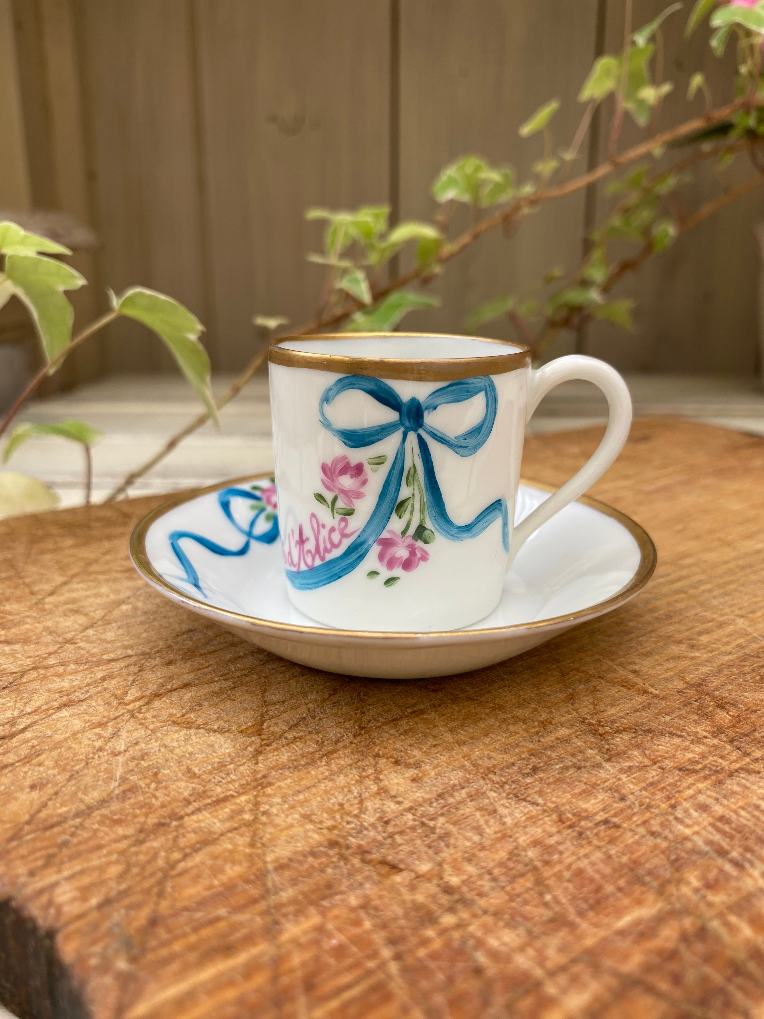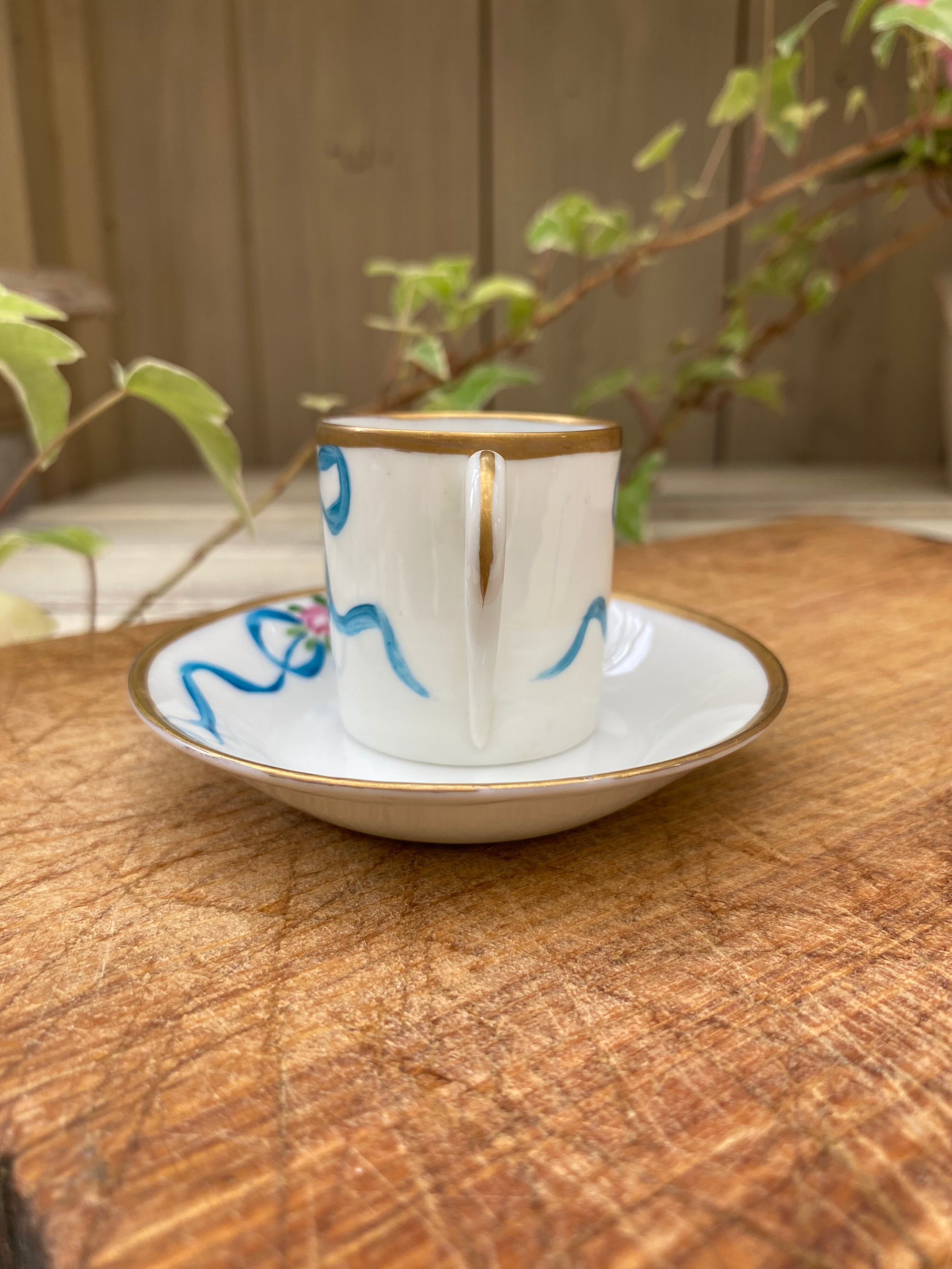 Limoges ディネット カップ&ソーサーb dinette フランスアンティーク アンティーク食器 おままごと ハンドペイント リボンのカップ