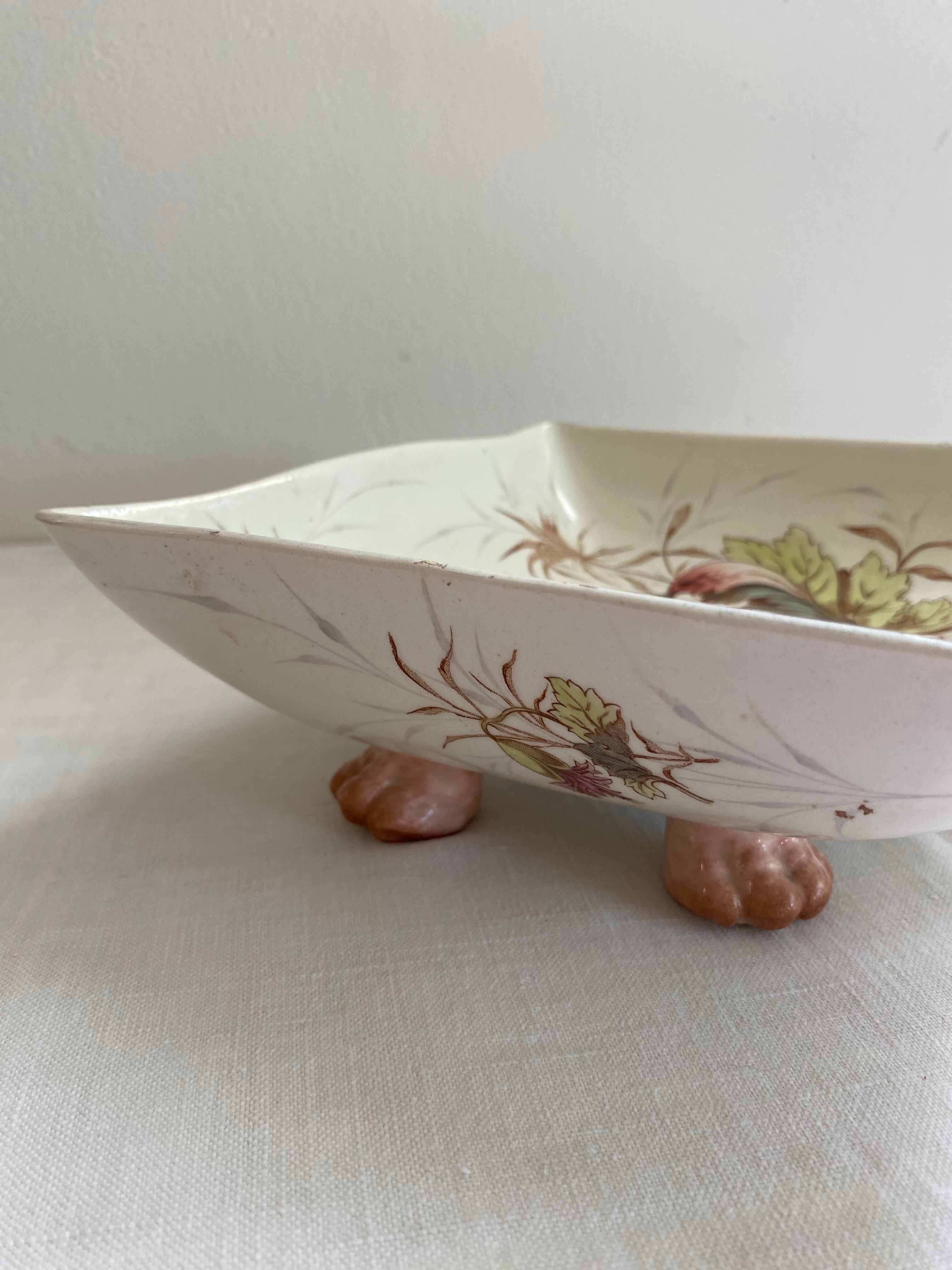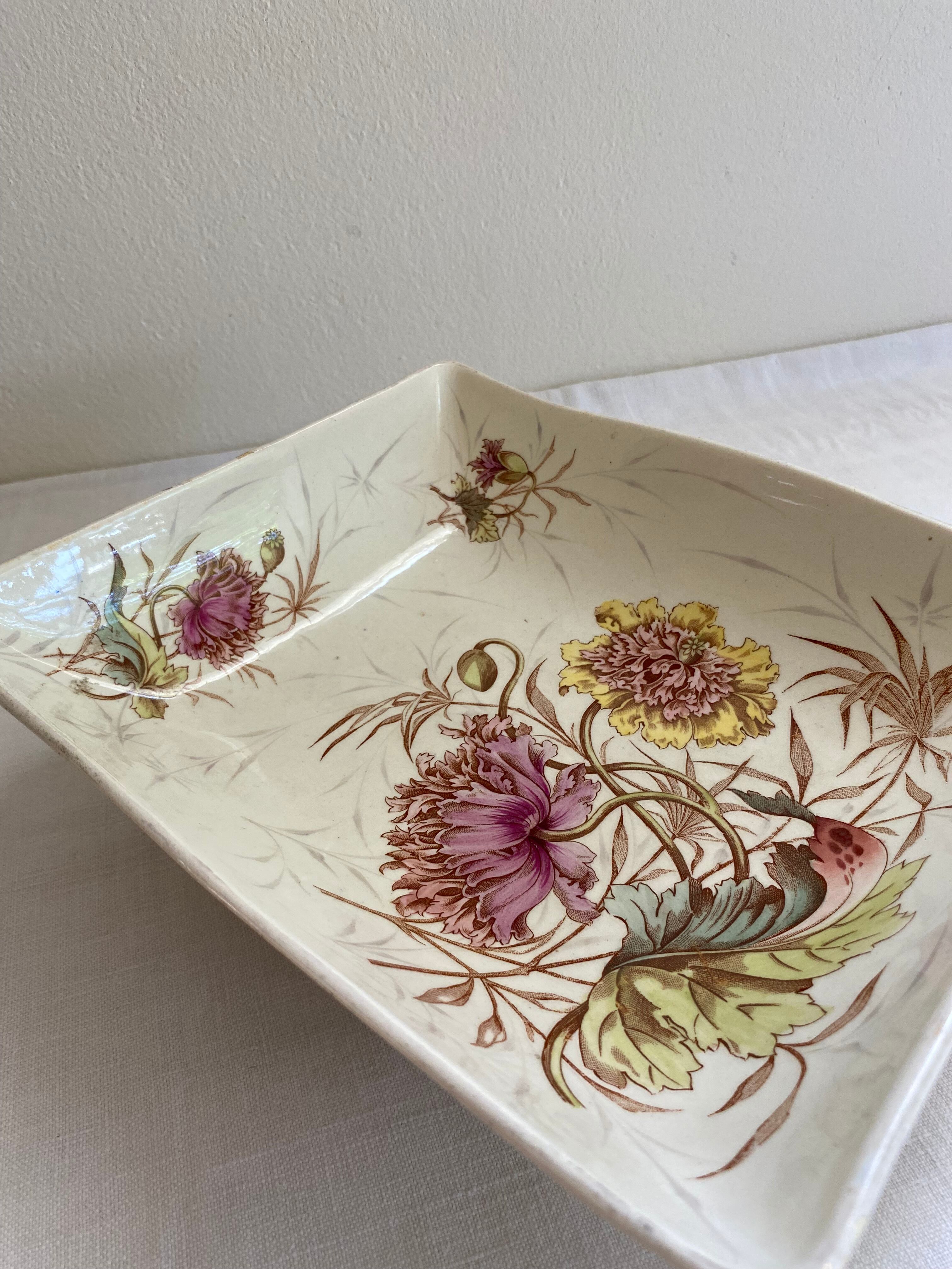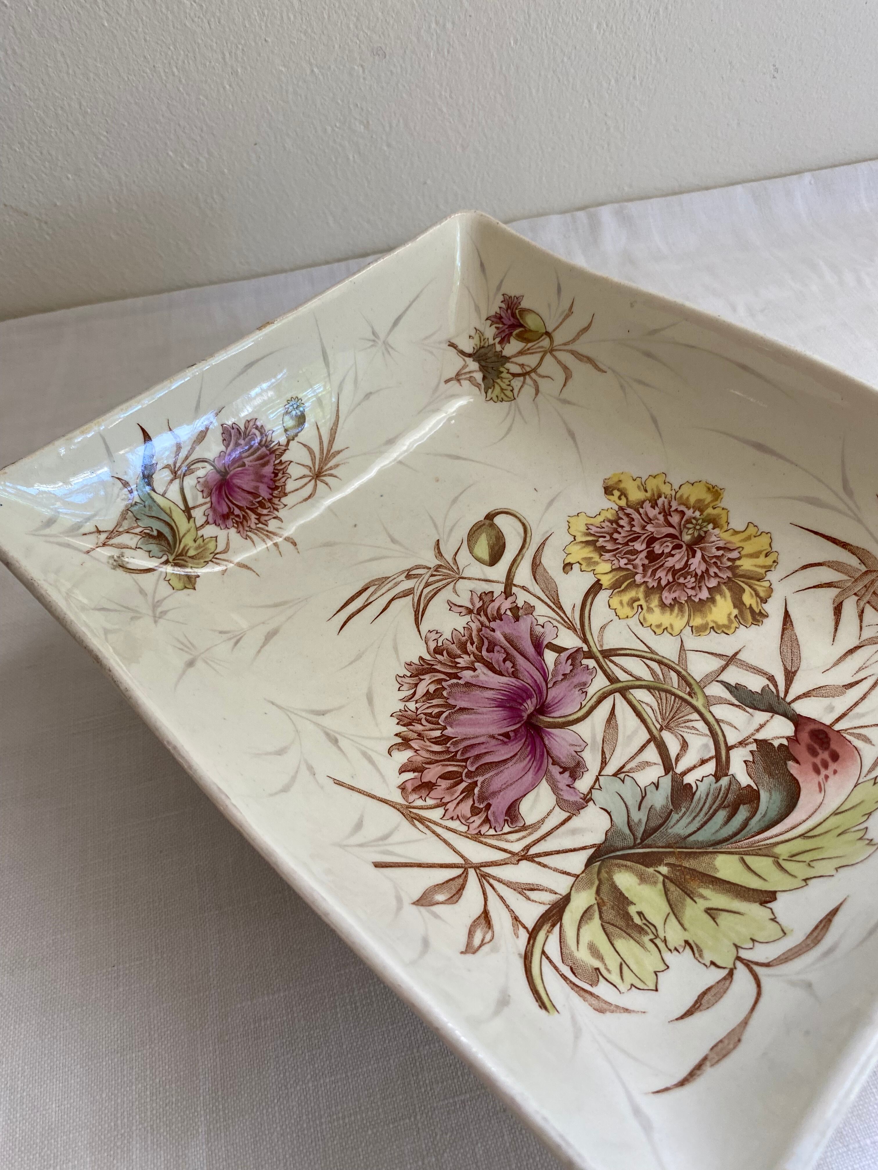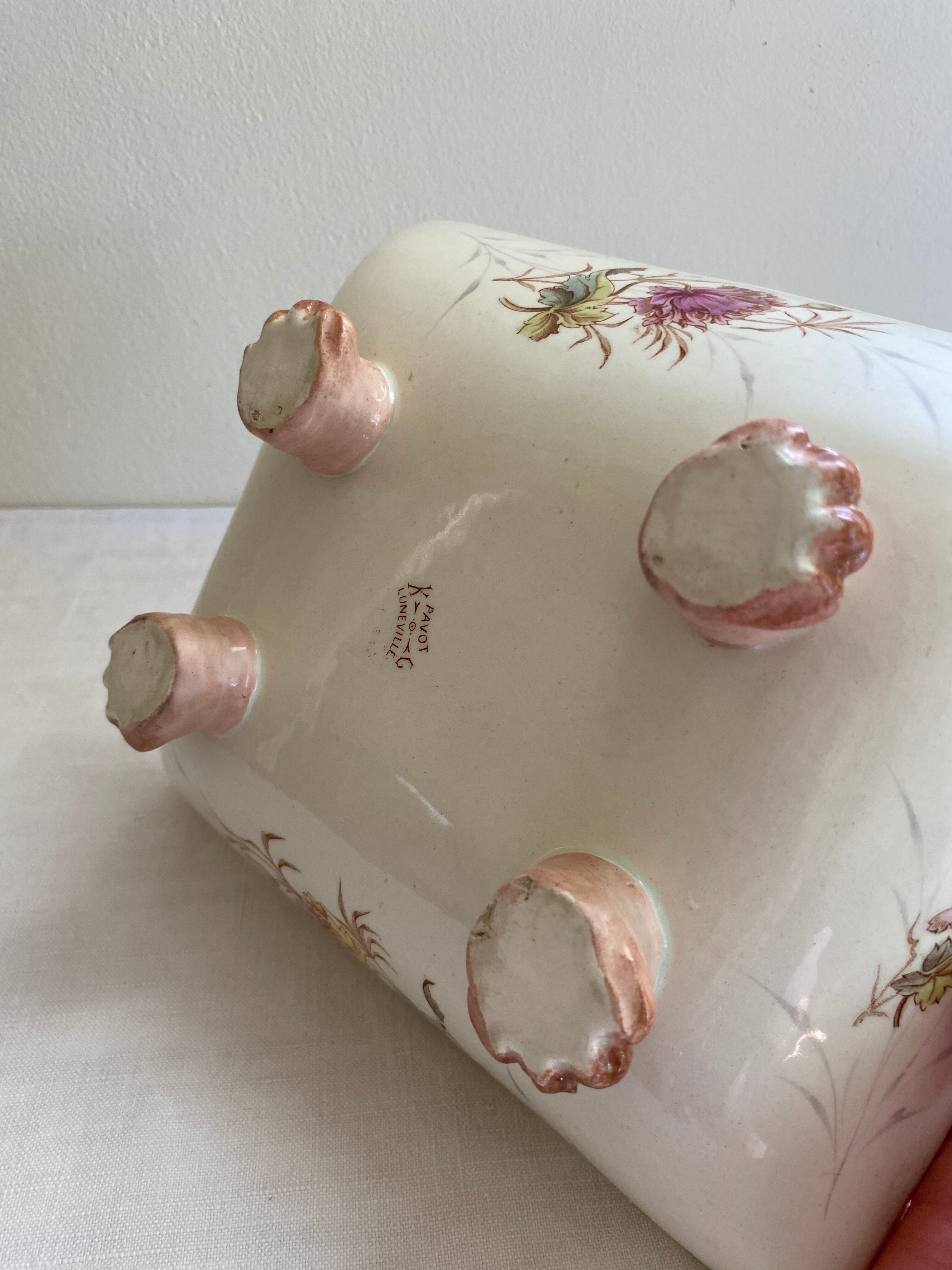 Luneville / PAVOT スクエアの足付きの器 フランスアンティーク アンティーク食器 ポピー リュネヴィル