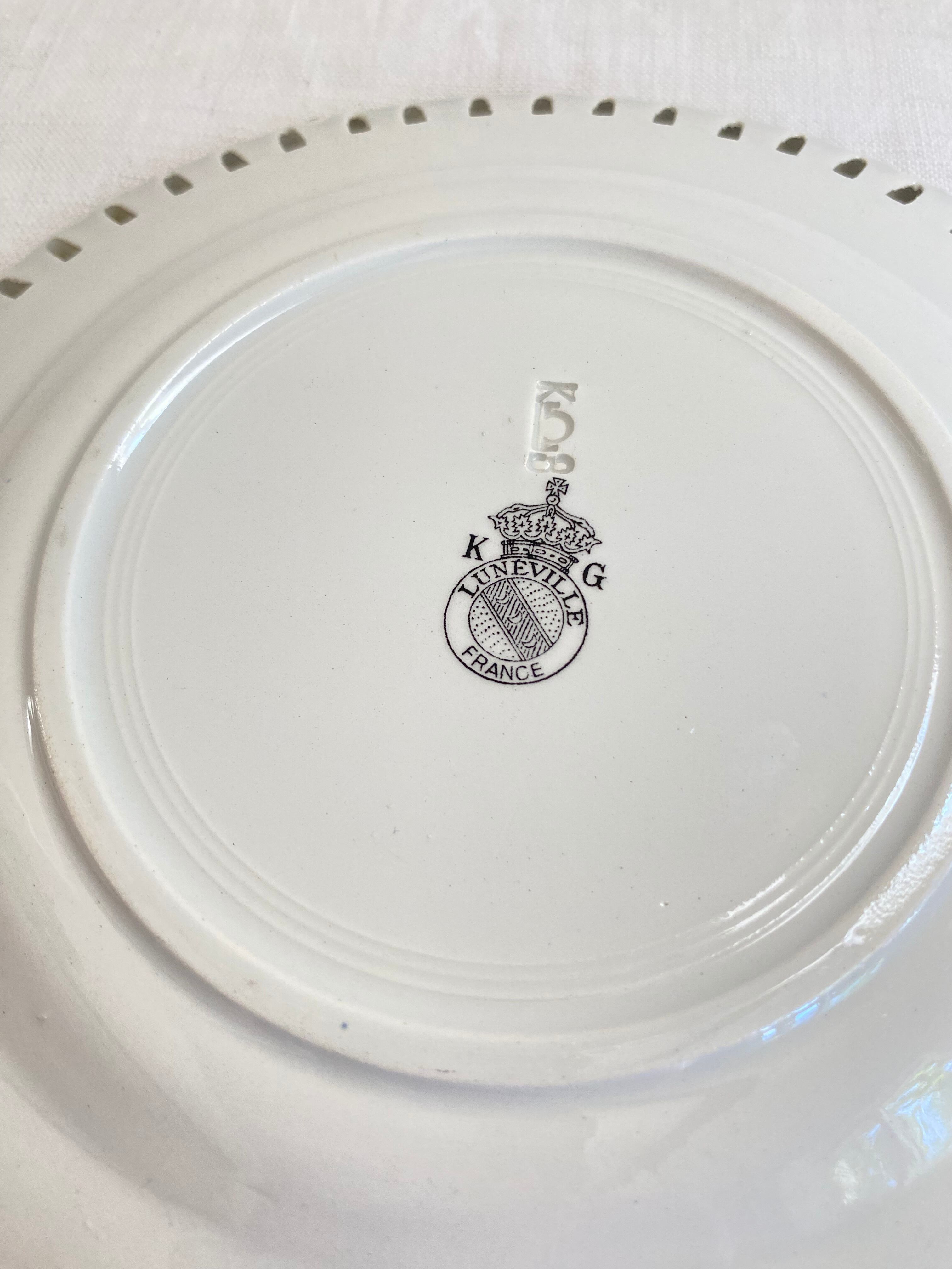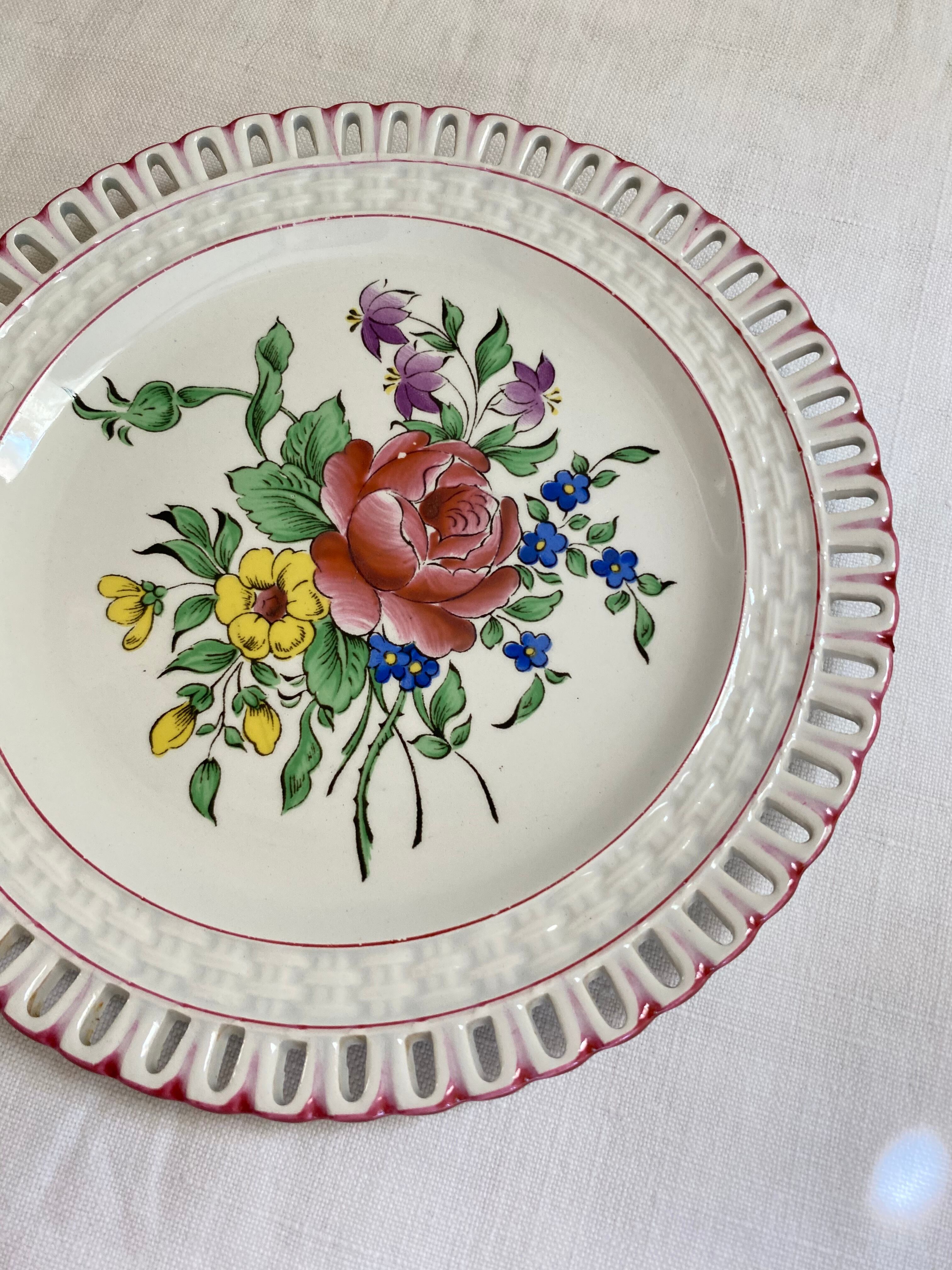 Luneville B バラのパニエプレート パニエプレート フランスアンティーク アンティーク食器 デザートプレート 透かしプレート