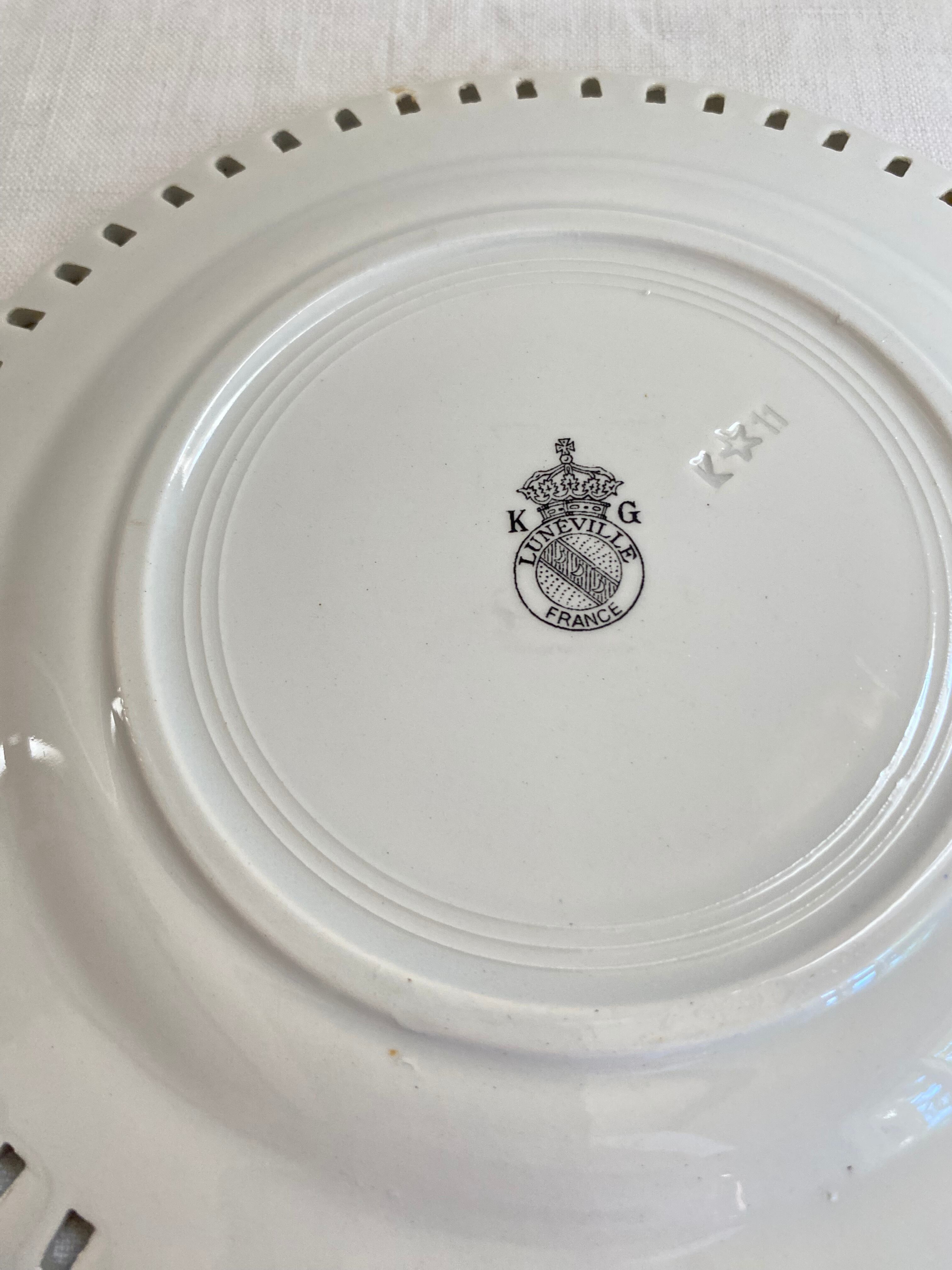 Luneville E バラのパニエプレート パニエプレート フランスアンティーク アンティーク食器 デザートプレート 透かしプレート
