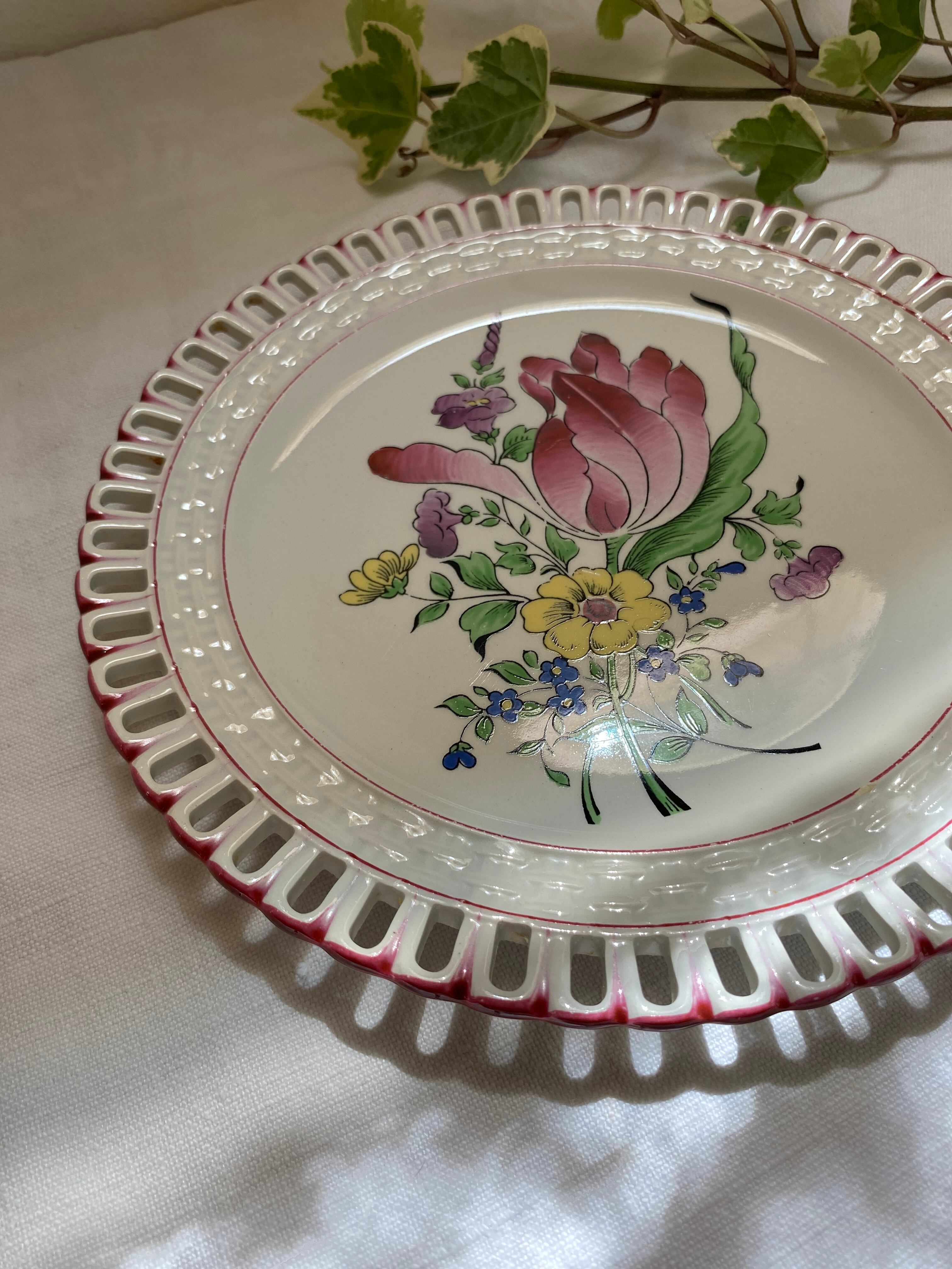 Luneville A チューリップのパニエプレート パニエプレート フランスアンティーク アンティーク食器 デザートプレート 透かしプレート