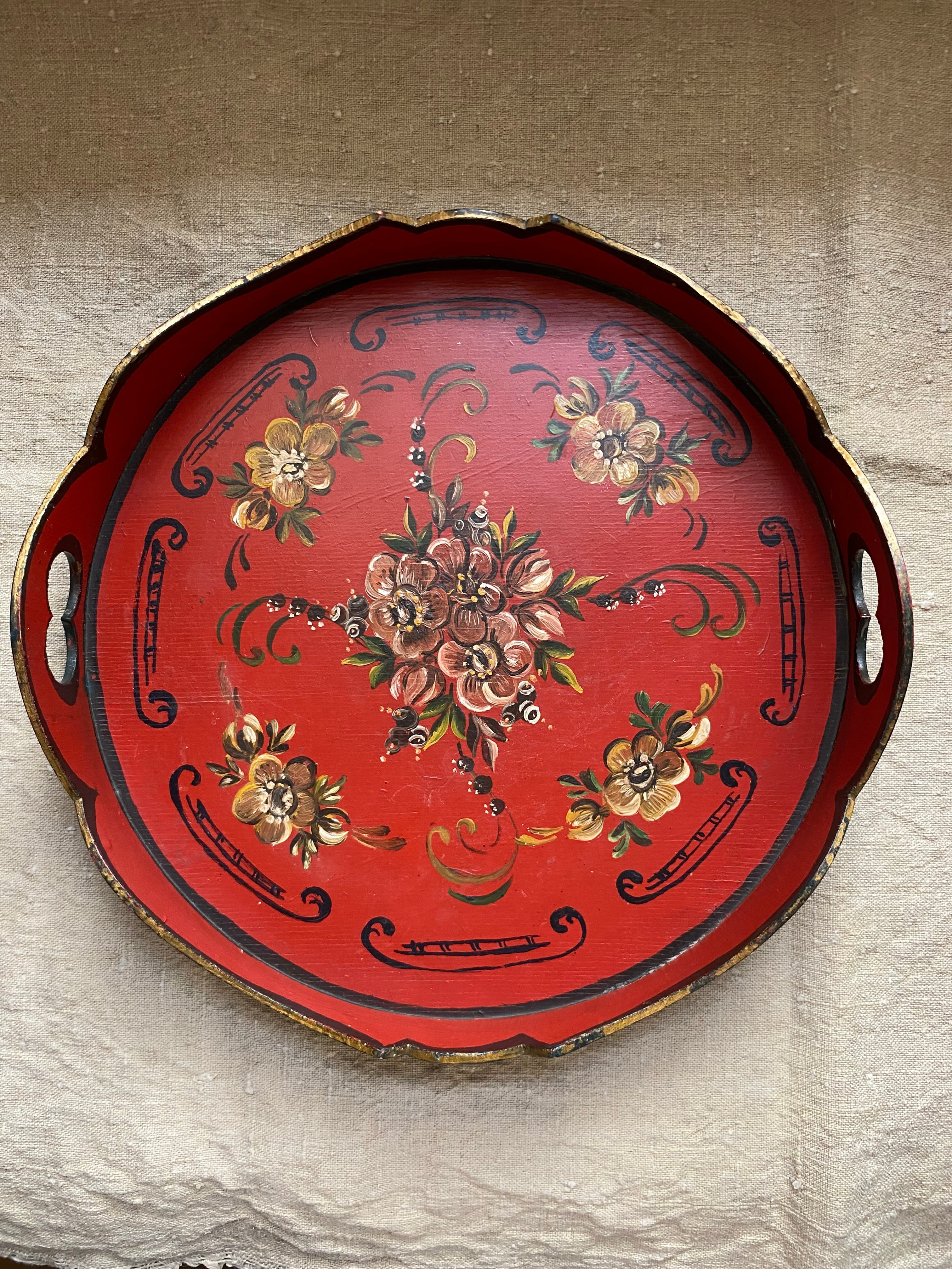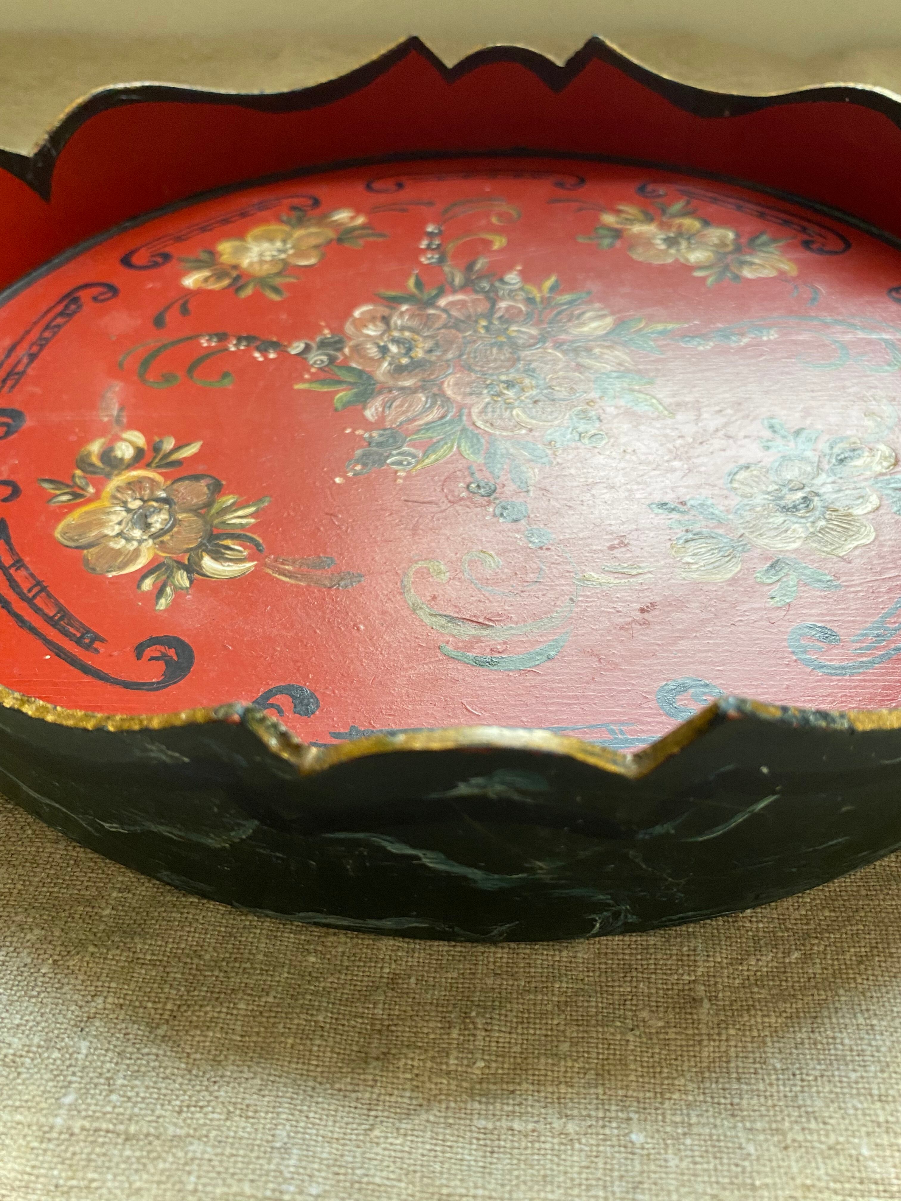 ハンドペイントの花模様が美しいトレー フランスアンティーク ハンドペイント トレー アンティーク雑貨