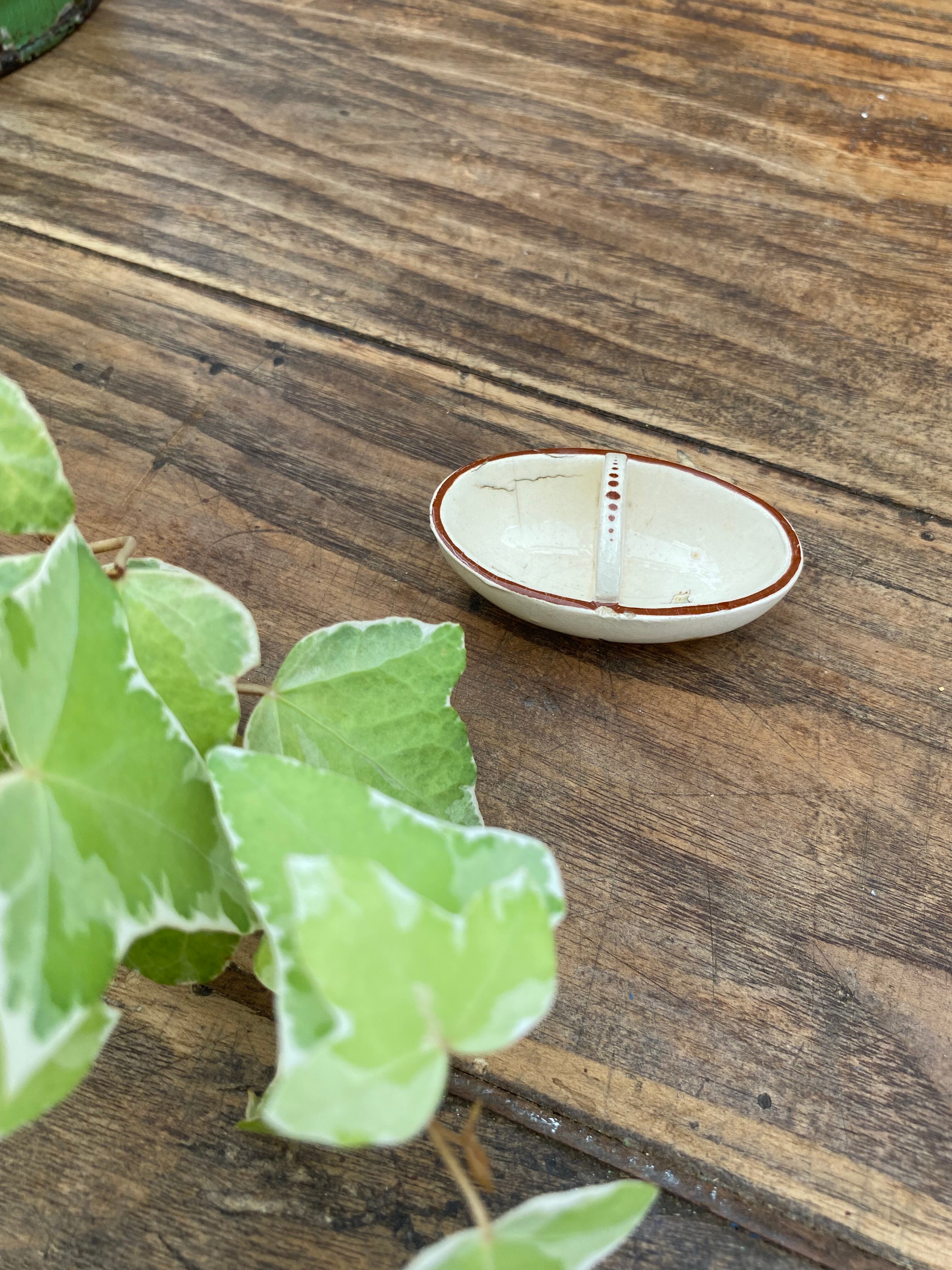 フランスの古窯、 サルグミンヌのアンファン・リシャール Enfants Richardというシリーズで、 小さなちいさな 「ままごとセット」 のパニエの形をした器です。