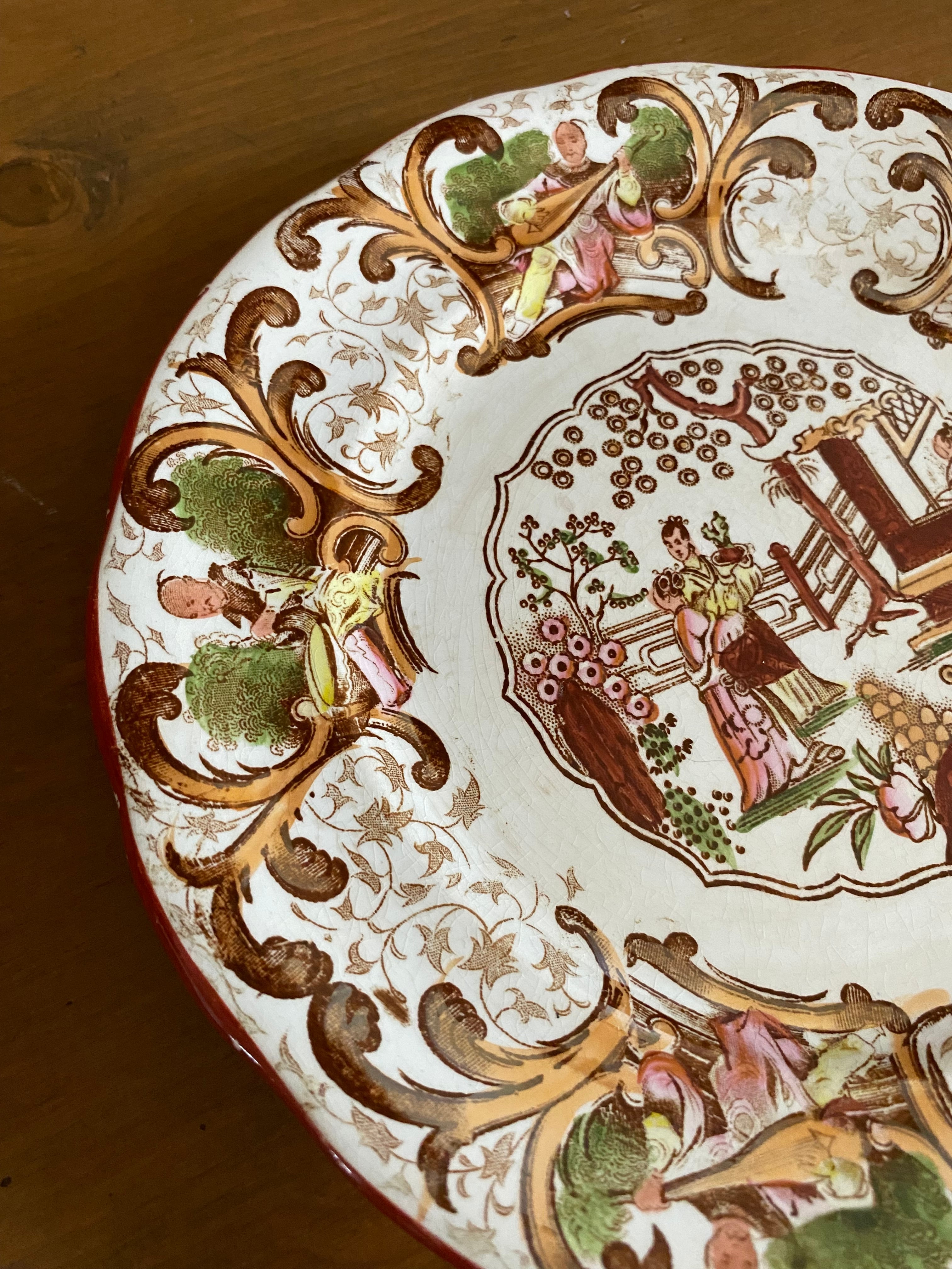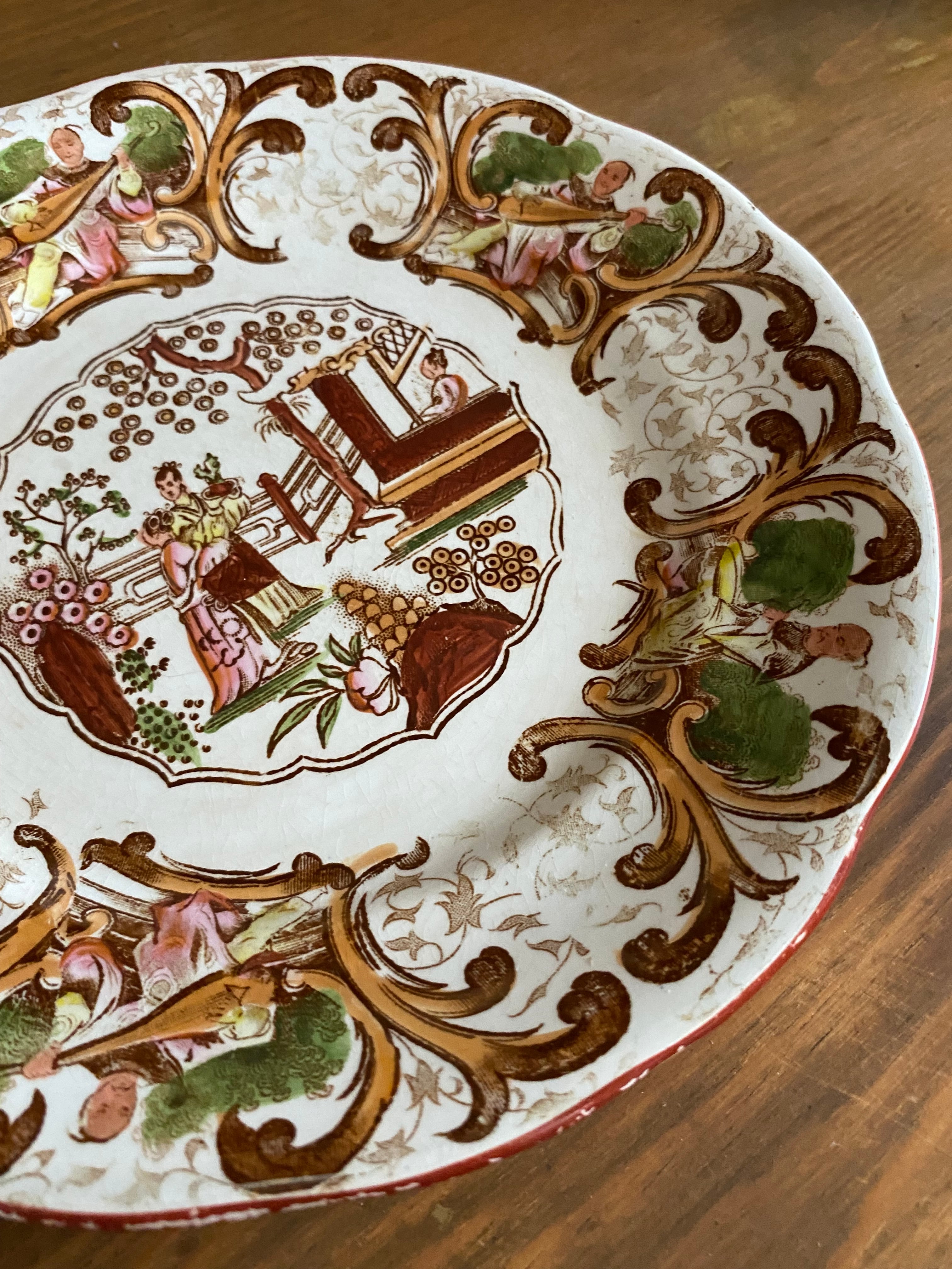 シノワズリb DIGOIN et SARREGUEMINE デザートプレート ディゴワンサルグミンヌ フランスアンティーク アンティーク食器 アンティークプレート サルグミンヌ