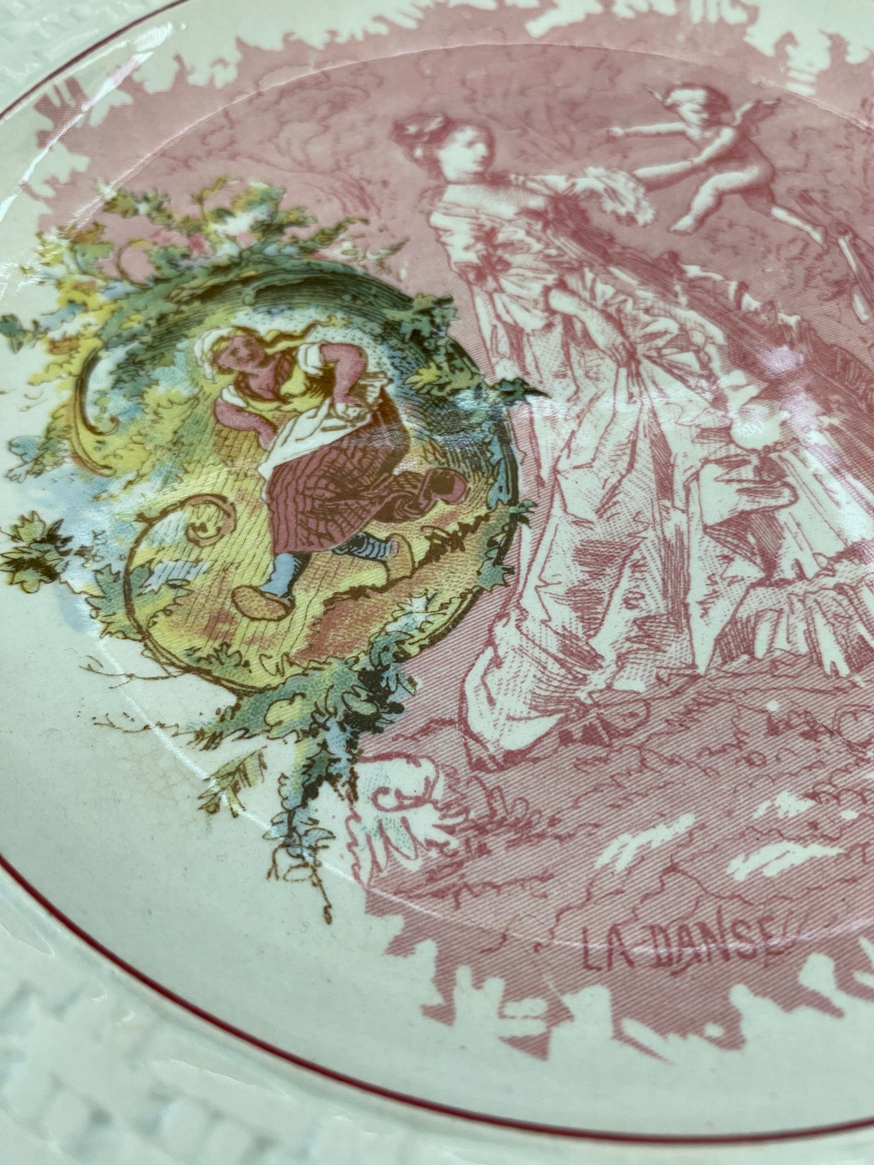 U&C SARREGUEMINES窯の貴婦人と天使のプレート。ストーリー性のある絵柄についつい見惚れてしまう、そんなプレートとなっています。
