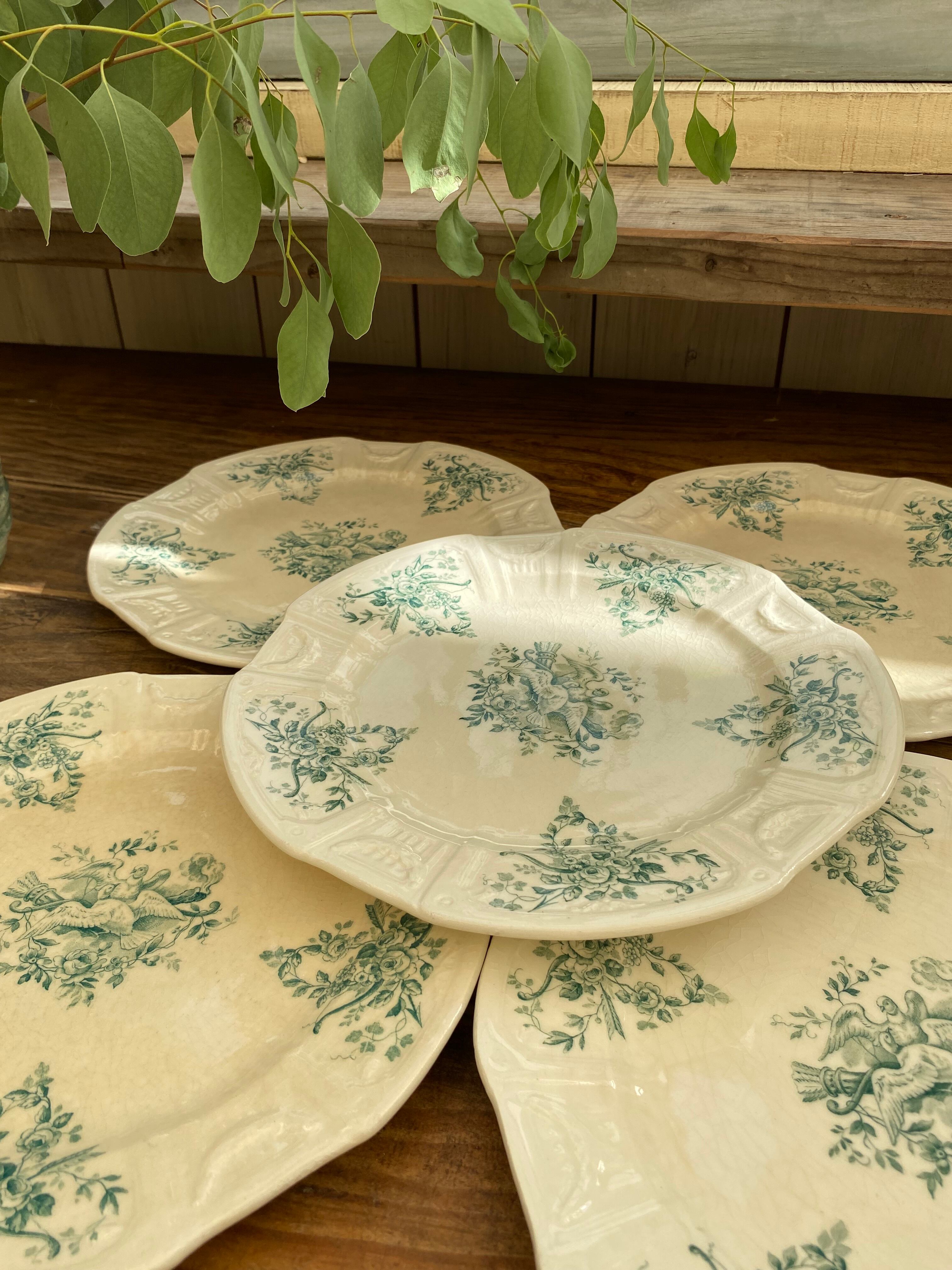 GIEN / 鳩とローズのプレート フランスアンティーク アンティークプレート ジアン アンティーク食器
