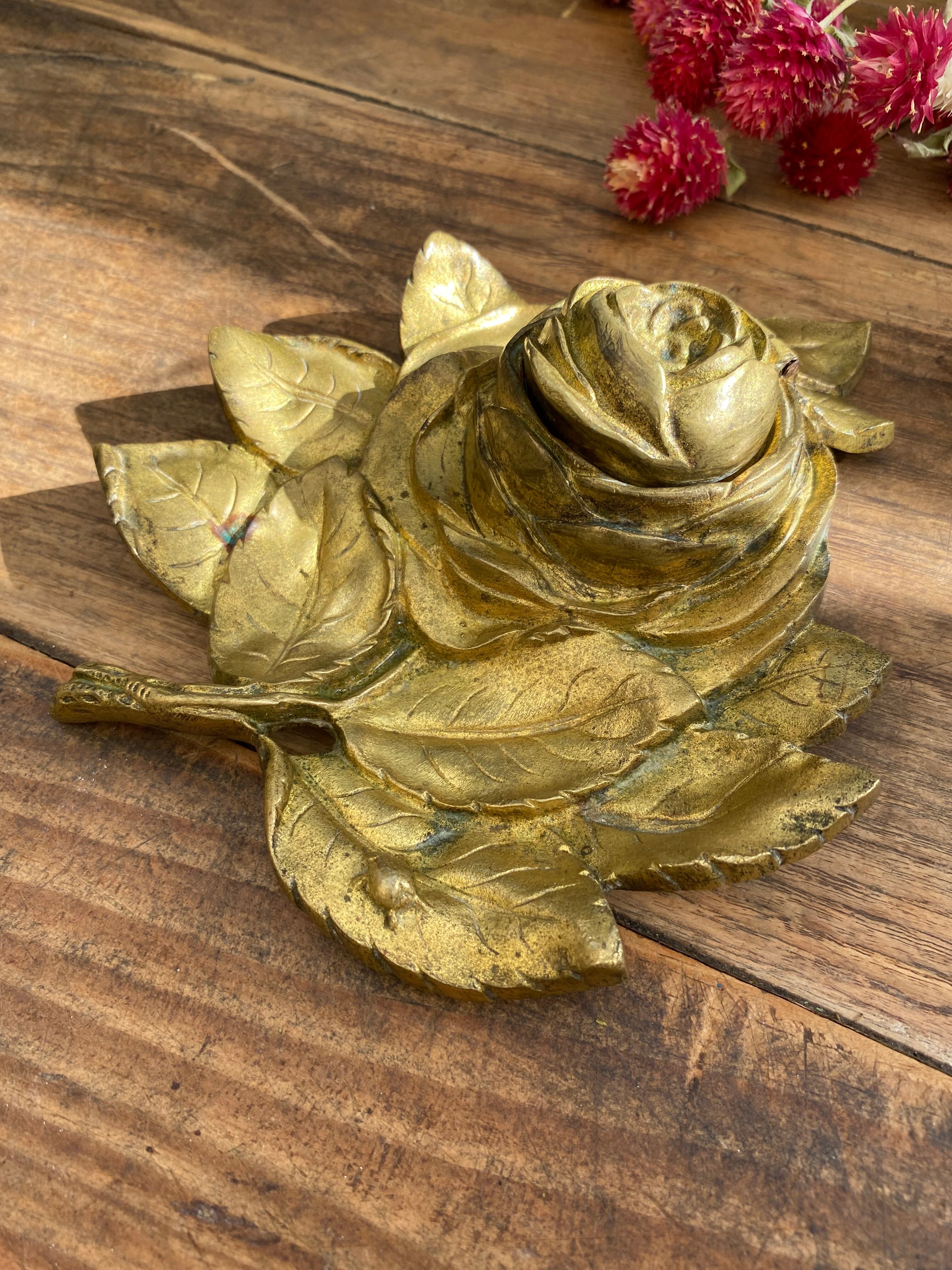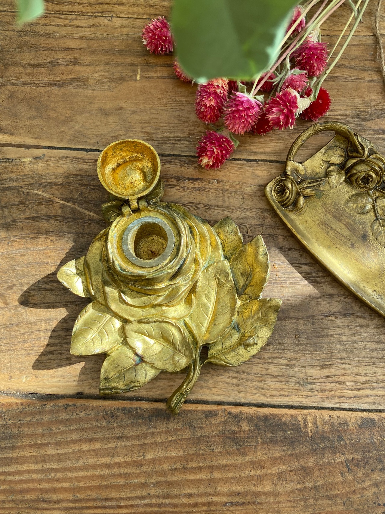 ブロンズ出できた大ぶりのローズモチーフのインクウィル。