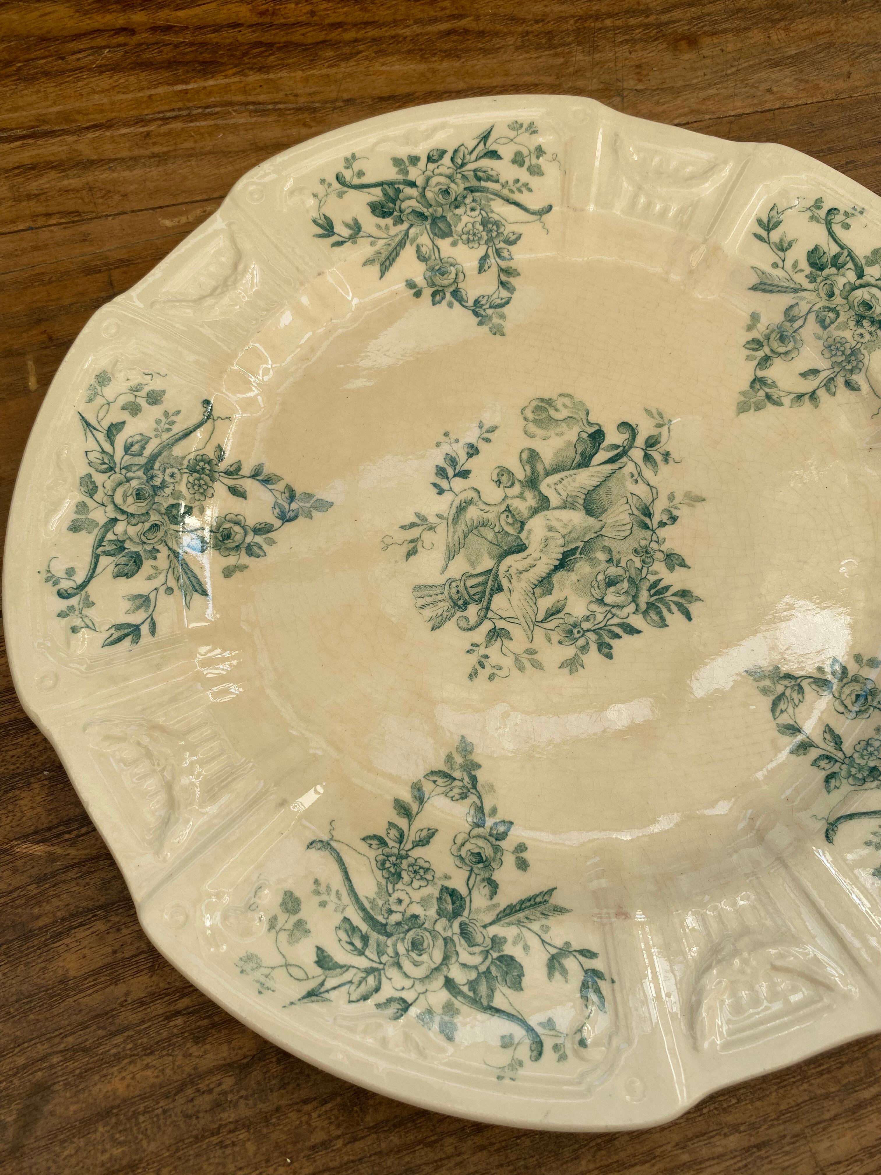 GIEN / 鳩とローズのプレート B フランスアンティーク アンティークプレート ジアン アンティーク食器