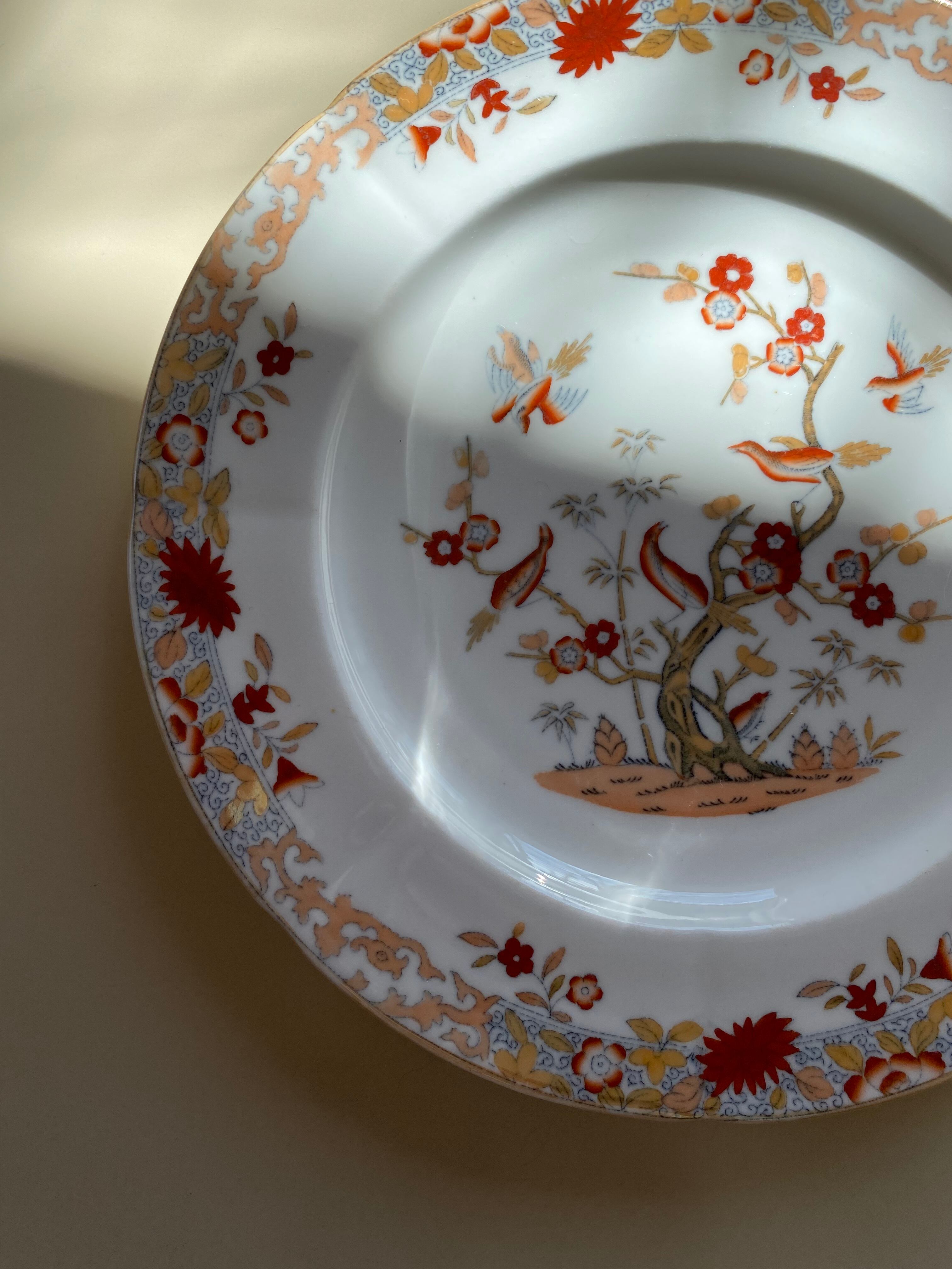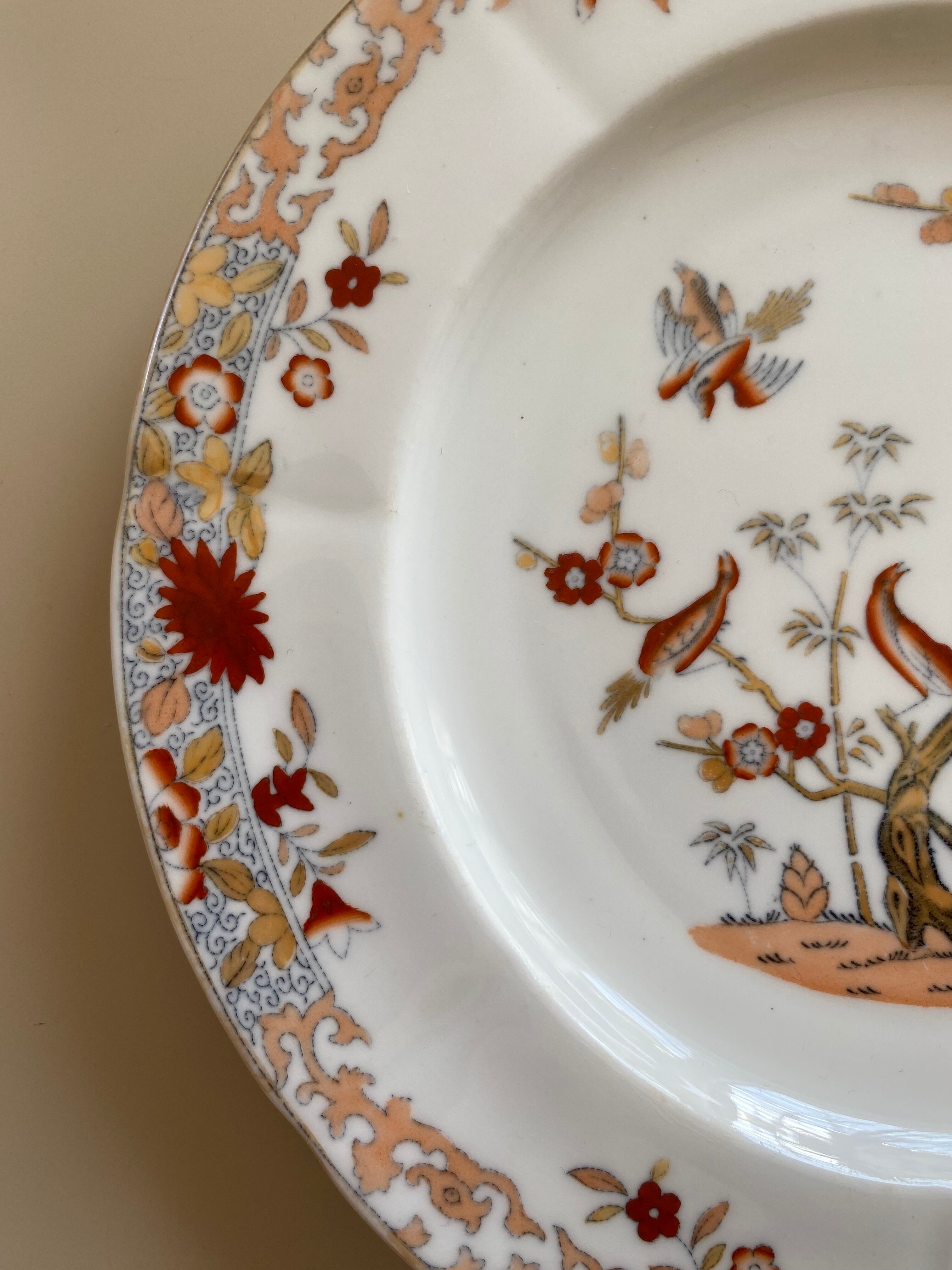 春を感じられる梅の花と鳳凰のような鳥が描かれたシノワズリなプレート。