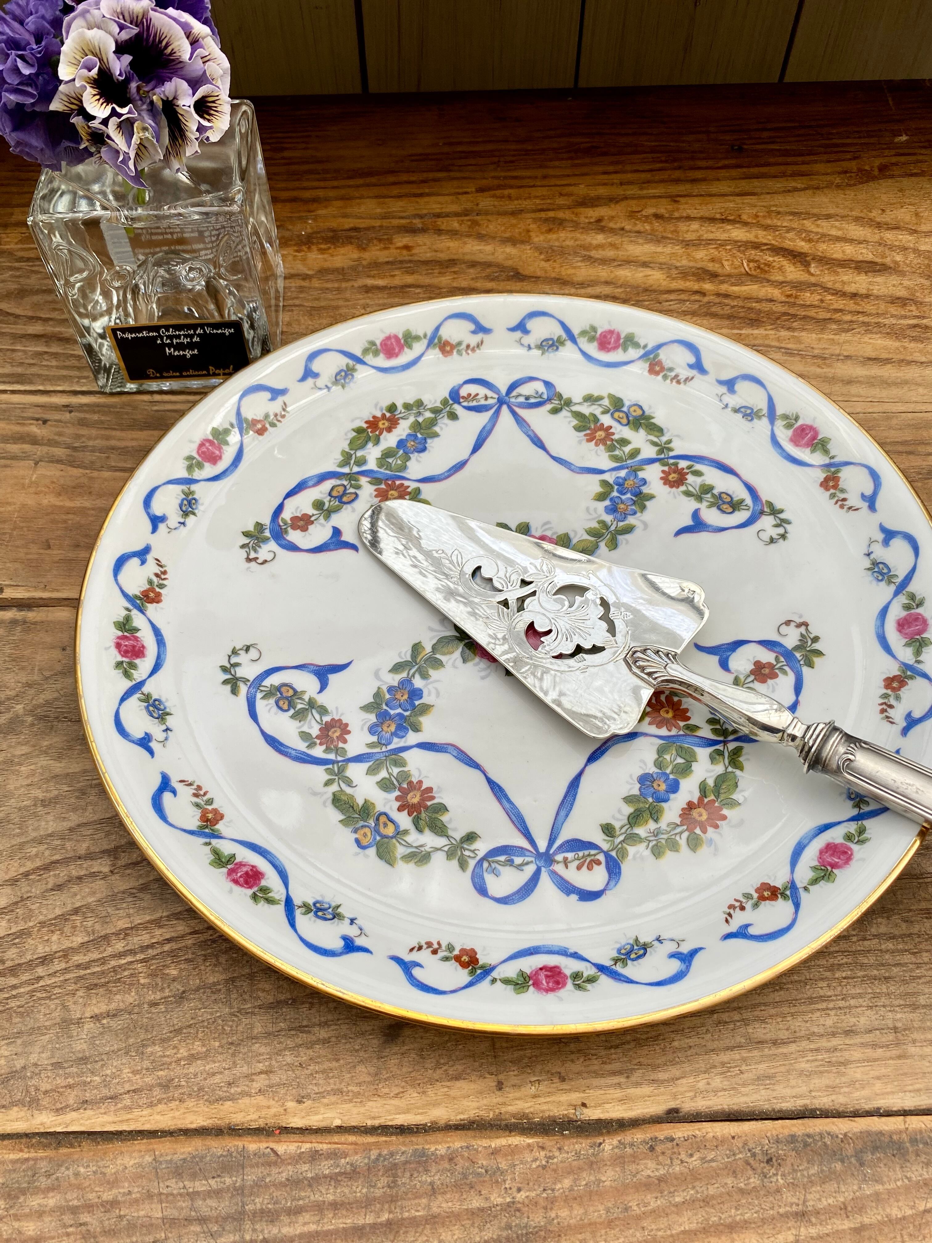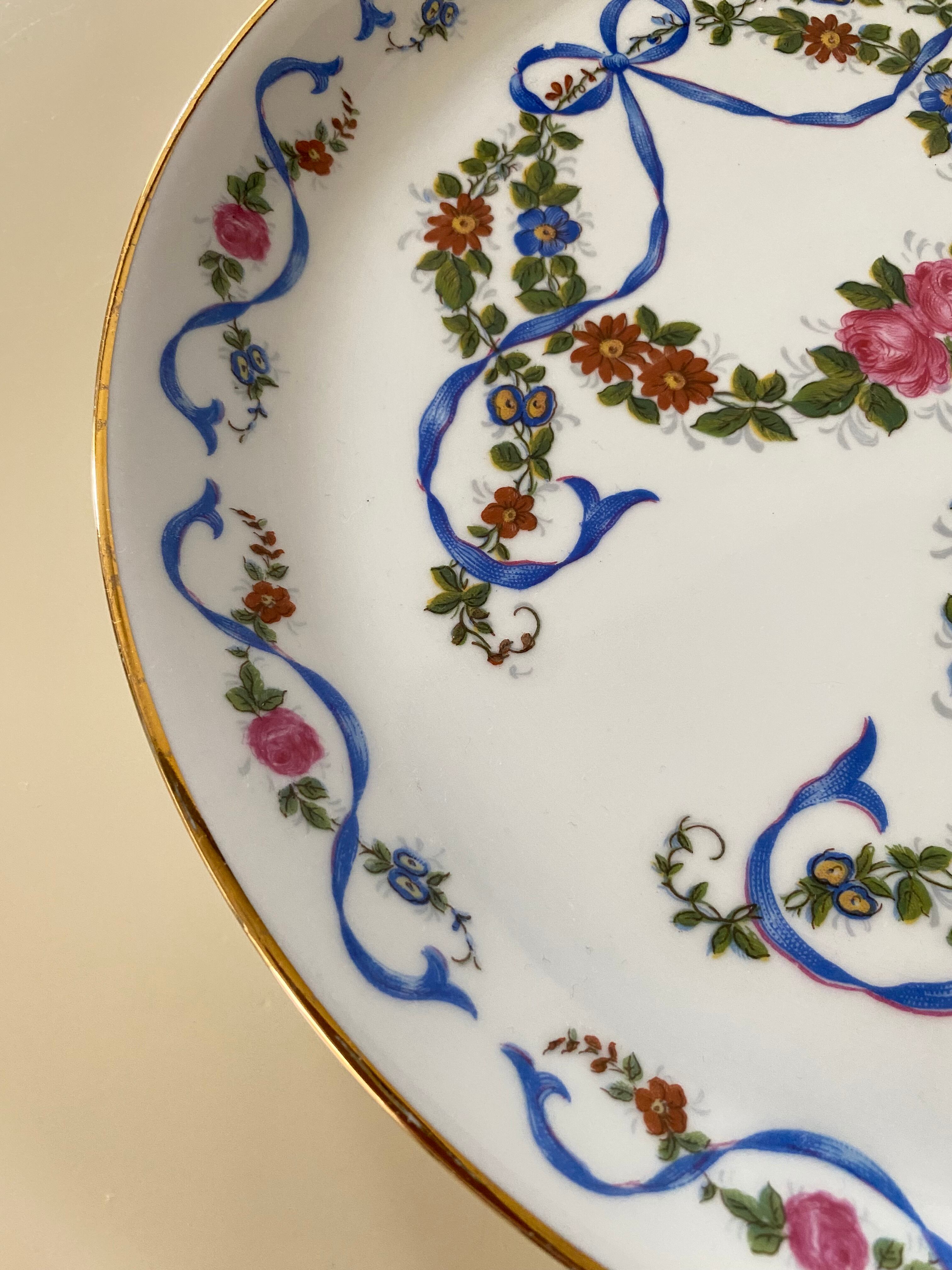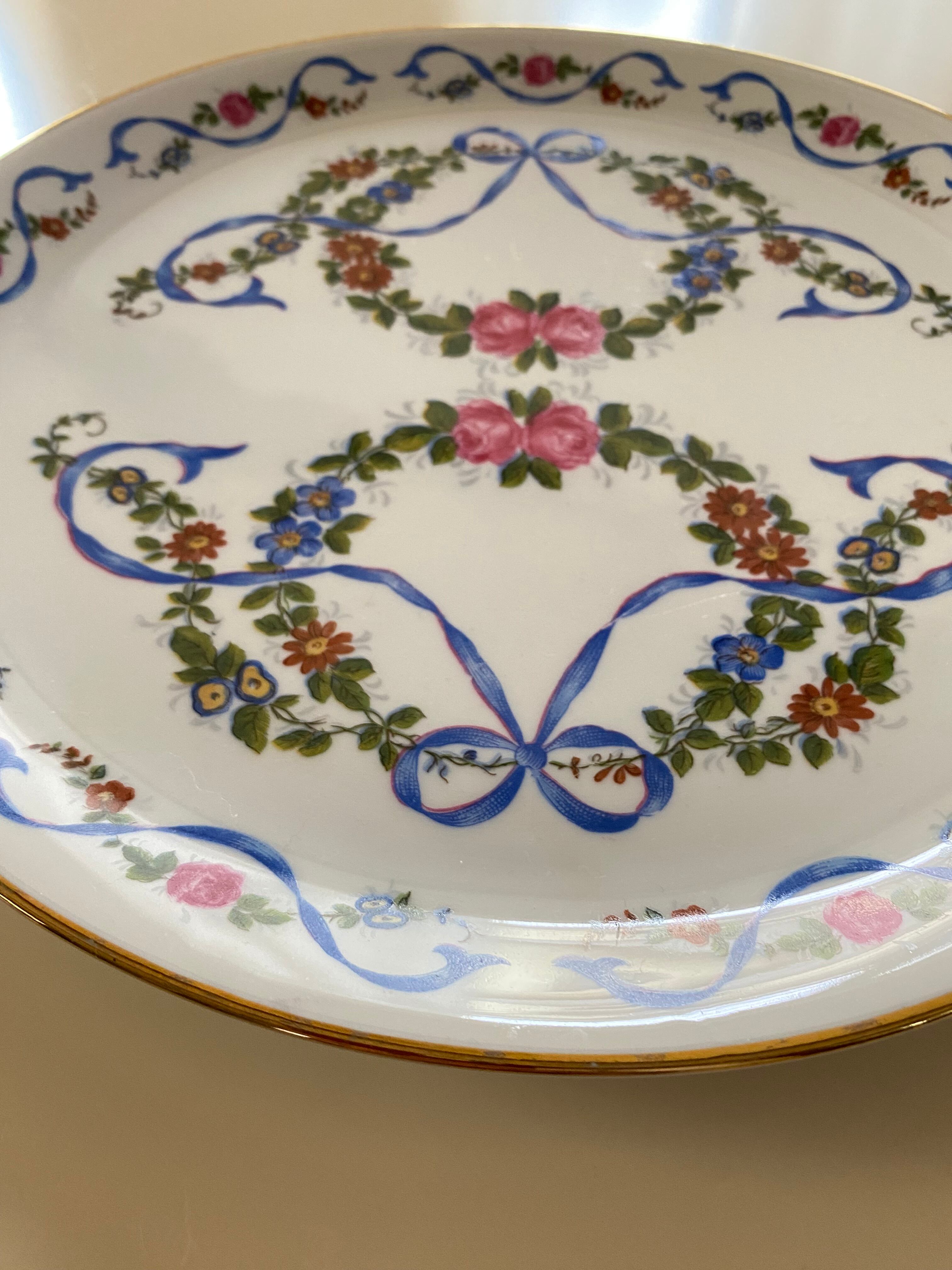 PILLIVUYT窯 リボンとバラモチーフの大ぶりなプレート フランスアンティーク アンティークプレート アンティーク食器