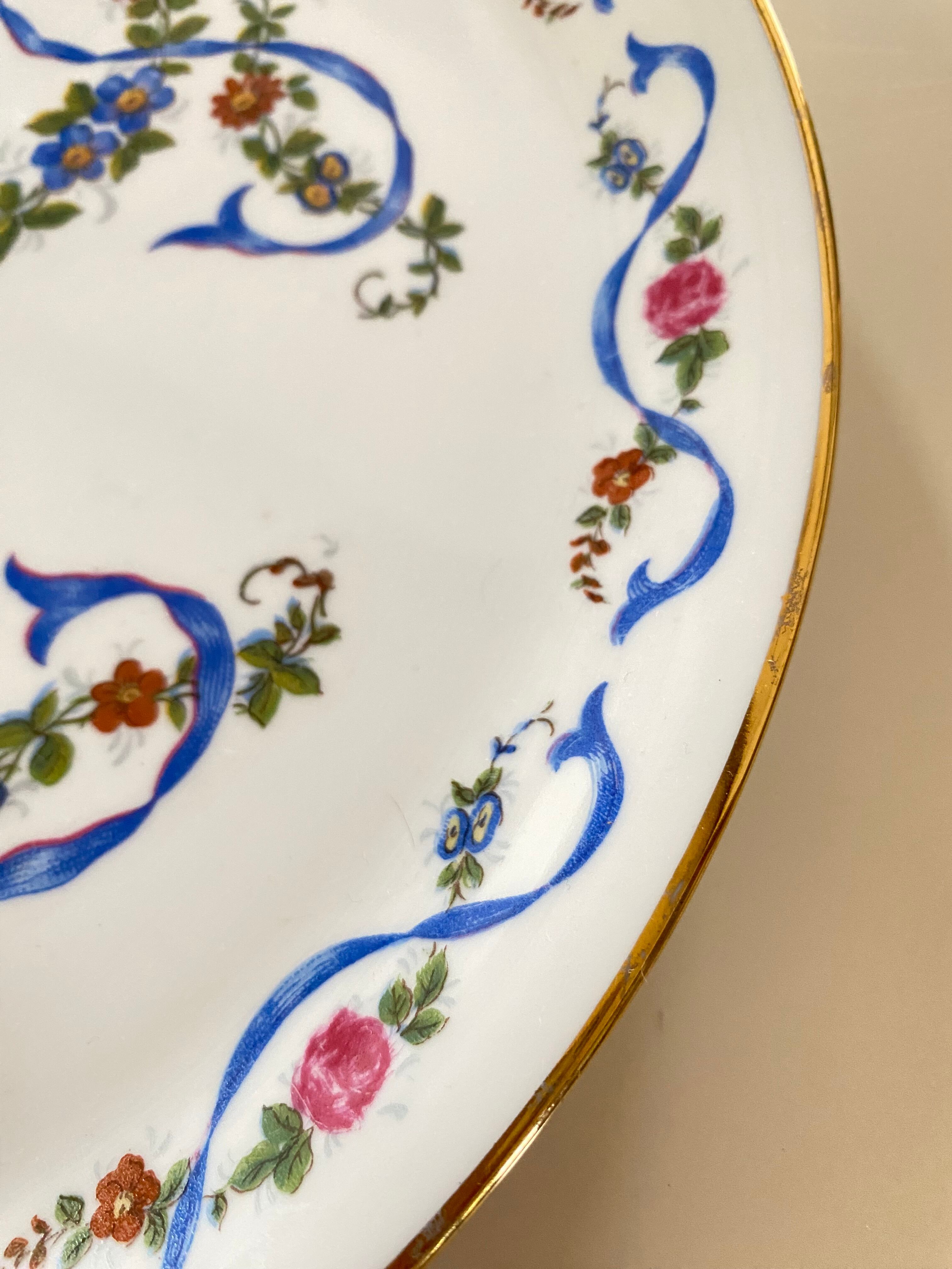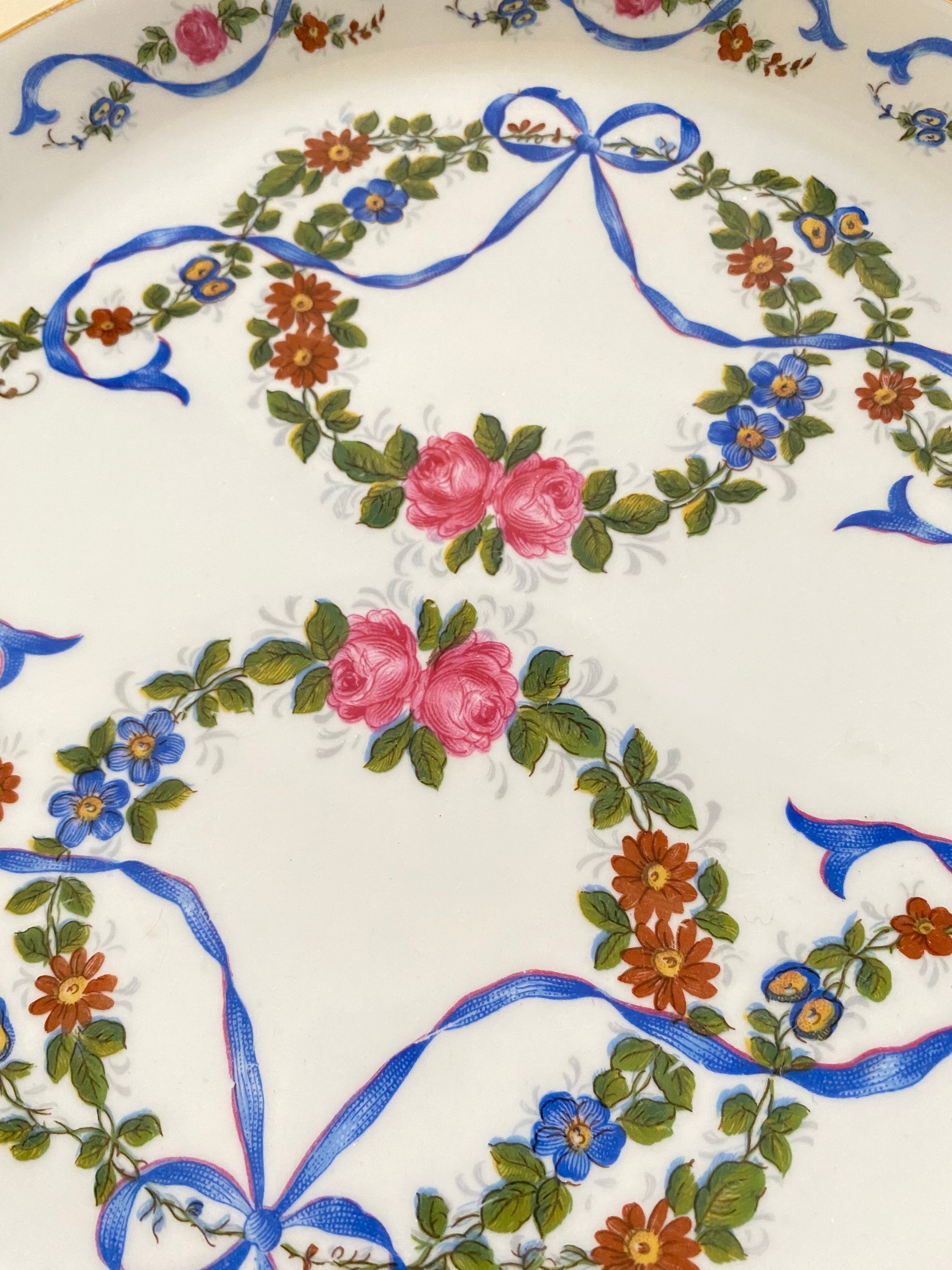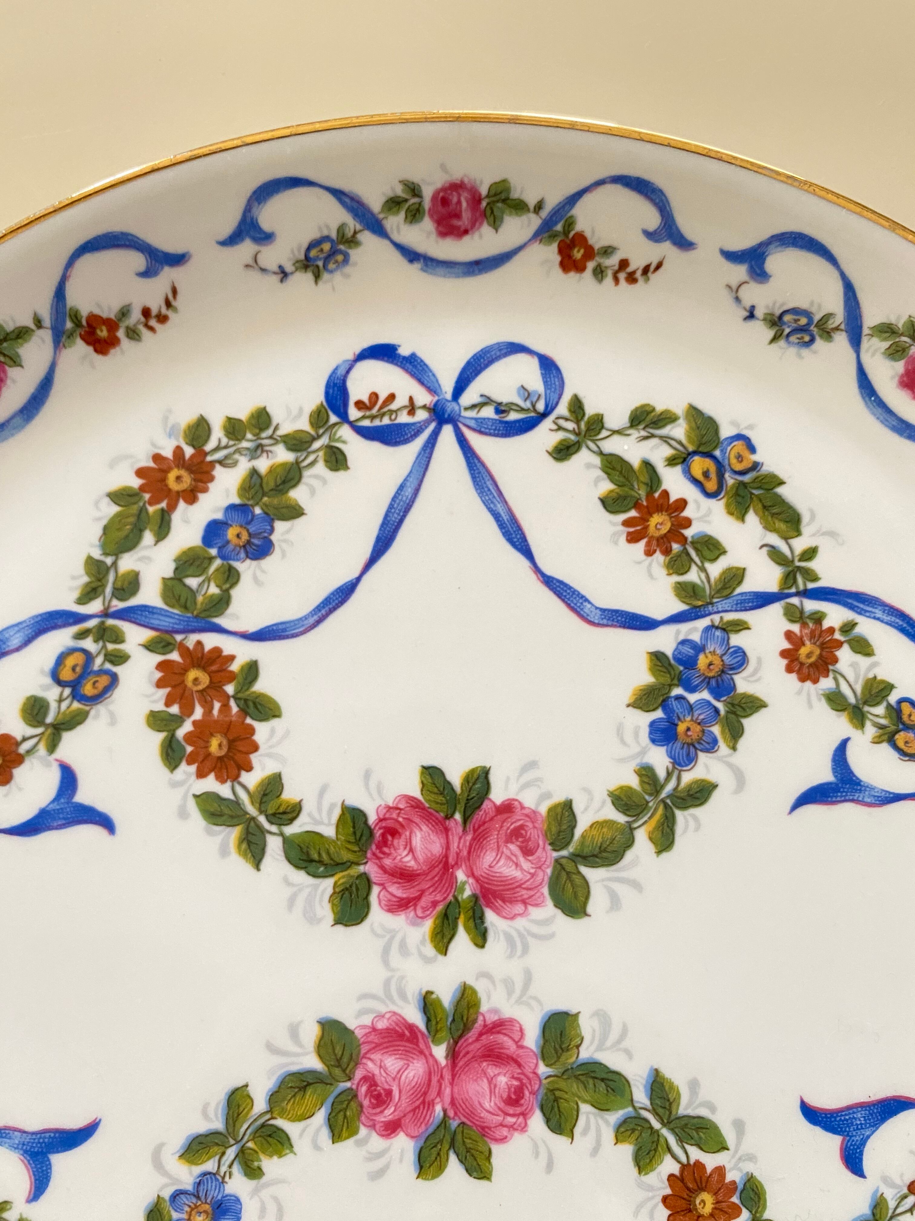 PILLIVUYT窯 リボンとバラモチーフの大ぶりなプレート フランスアンティーク アンティークプレート アンティーク食器