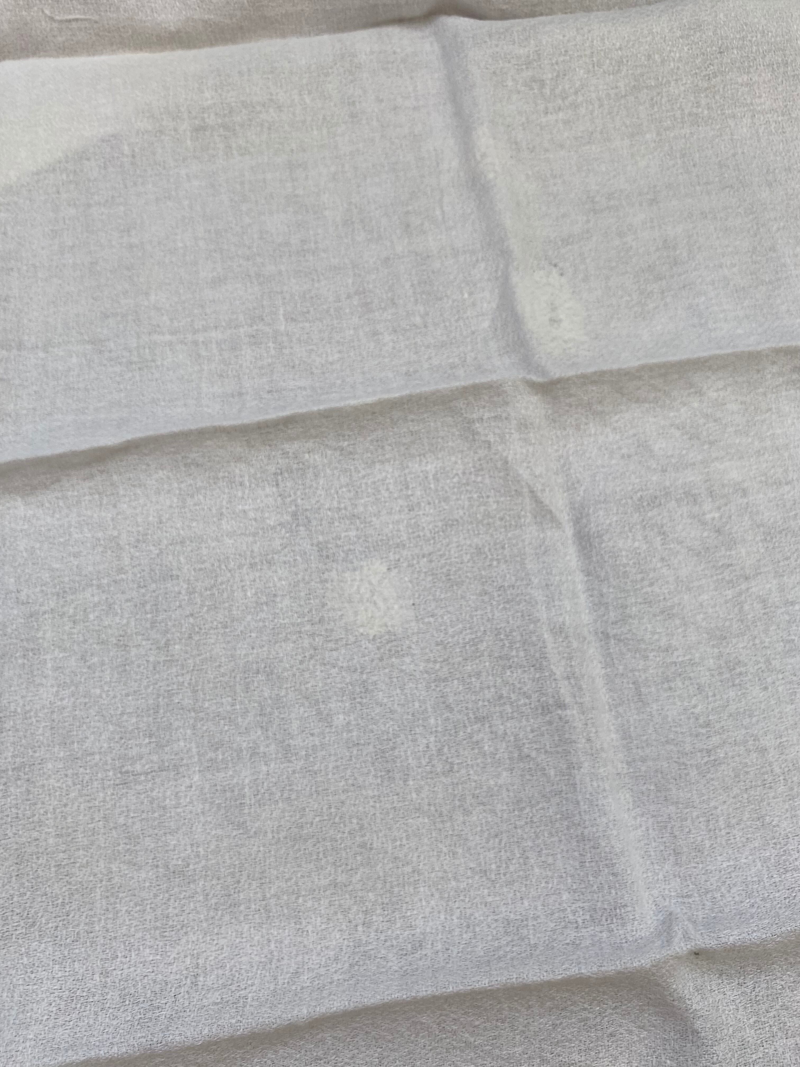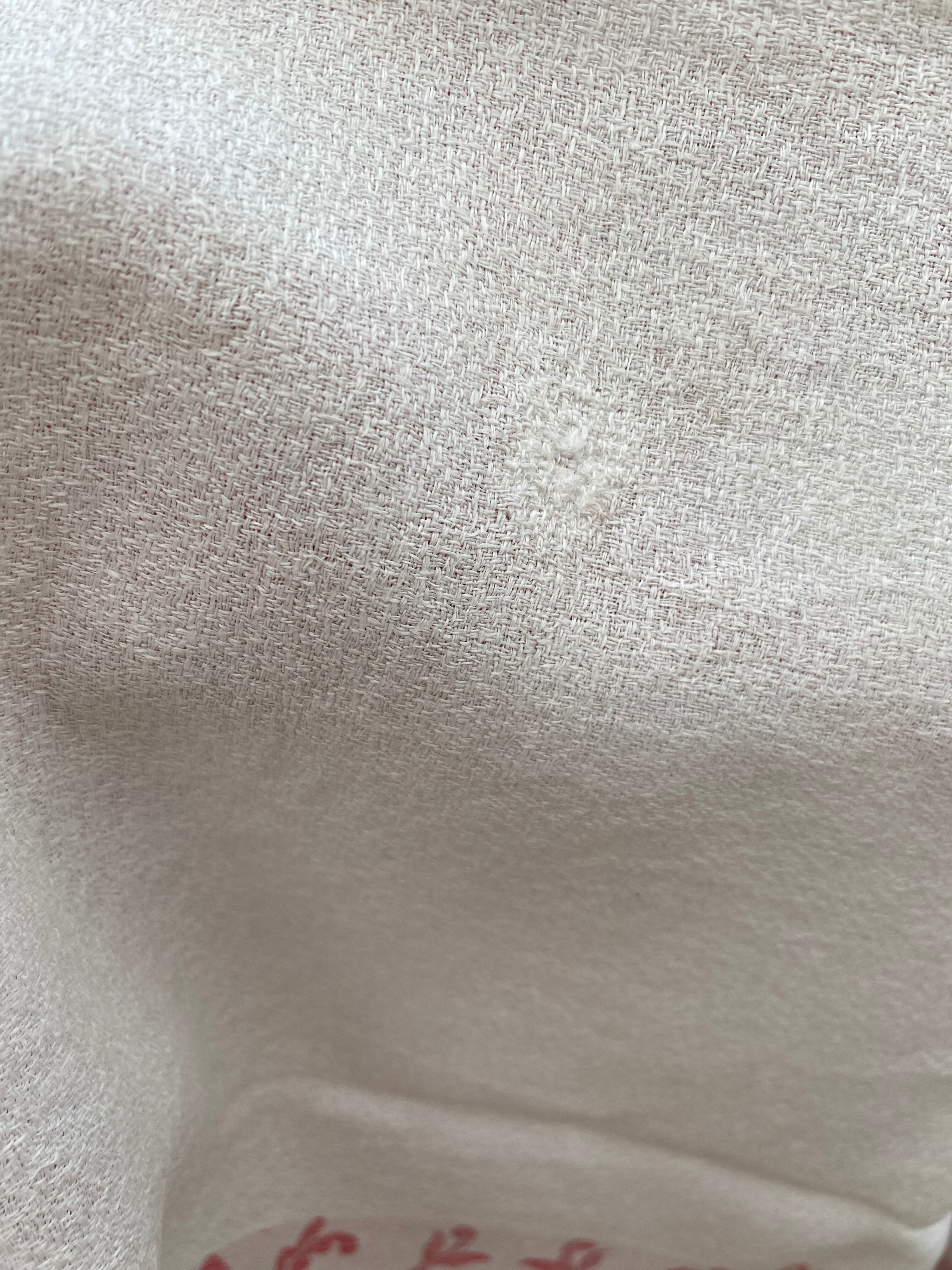 3枚目、穴の補修跡が2箇所、縁のほつれ1箇所。