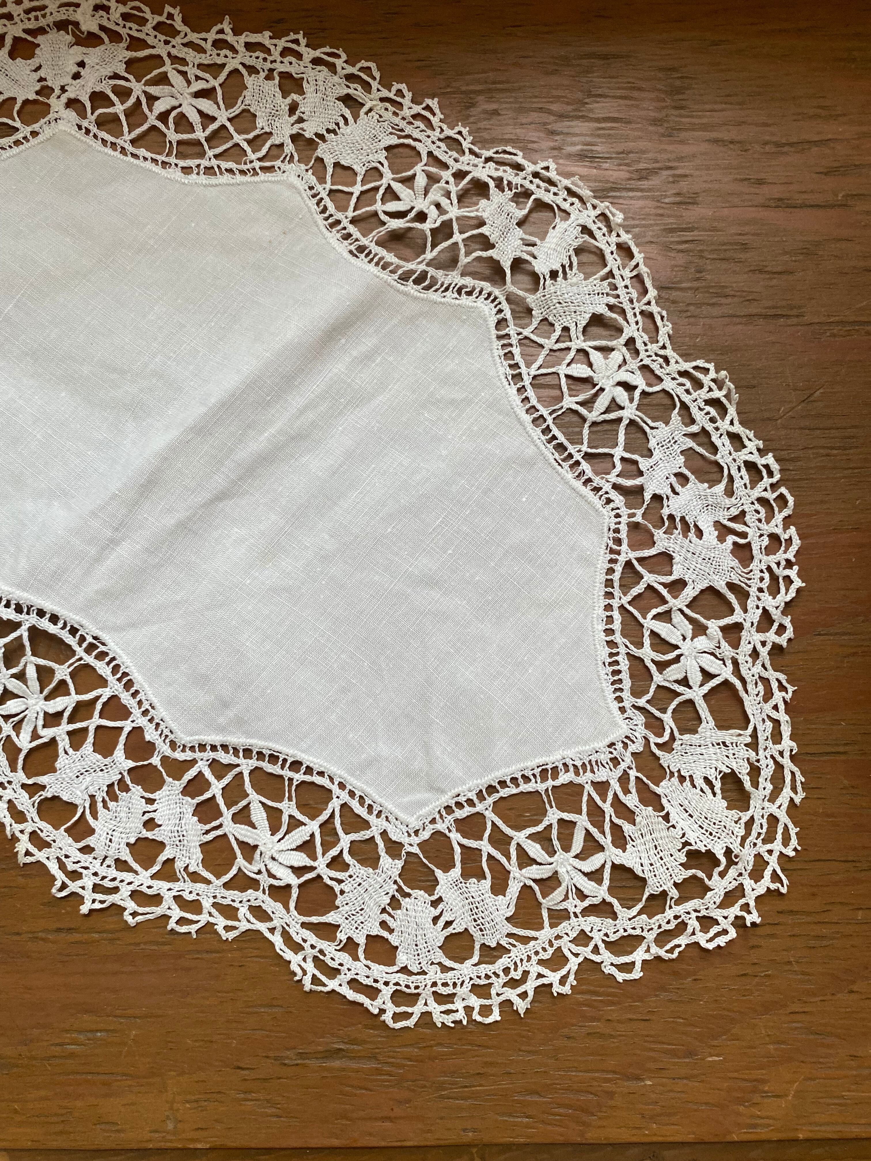 リネンテーブルクロス フランスアンティーク アンティークテーブルマット アンティークレース