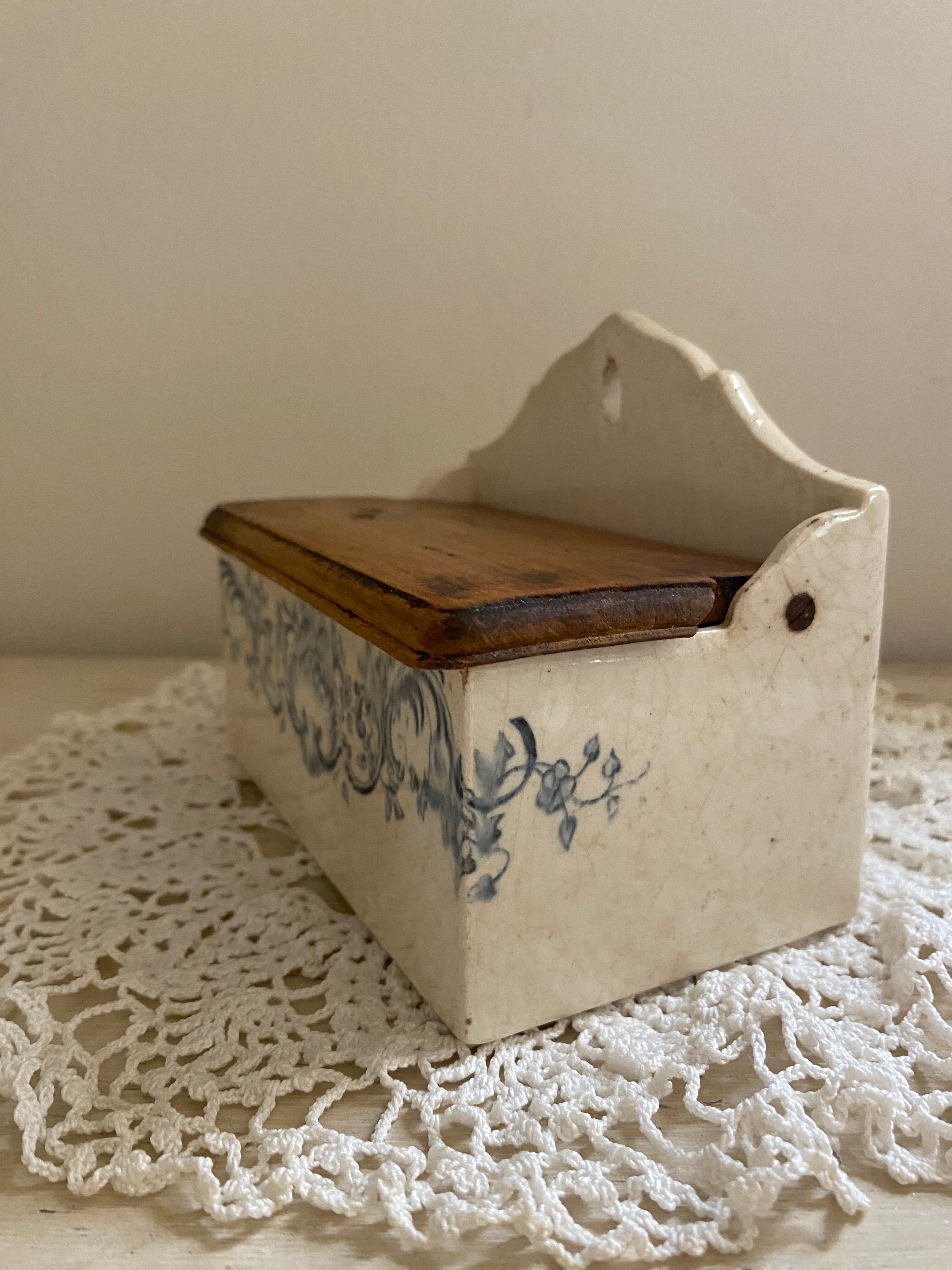 フランスの蚤の市で見つけた壁掛け式のキャニスターになります。