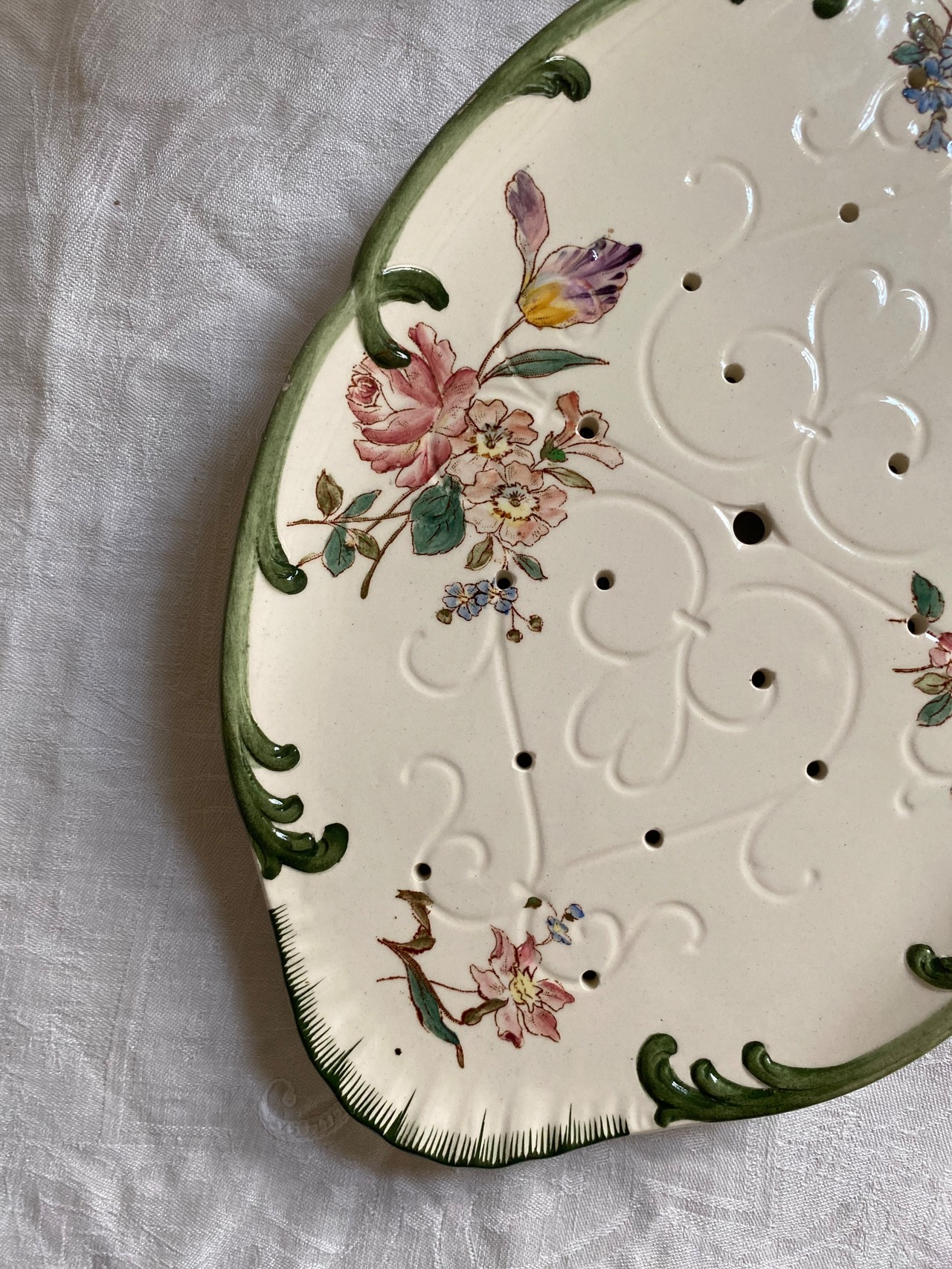 フランスのアンティークショップで見つけた 穴の空いたフルーツプレートになります。
