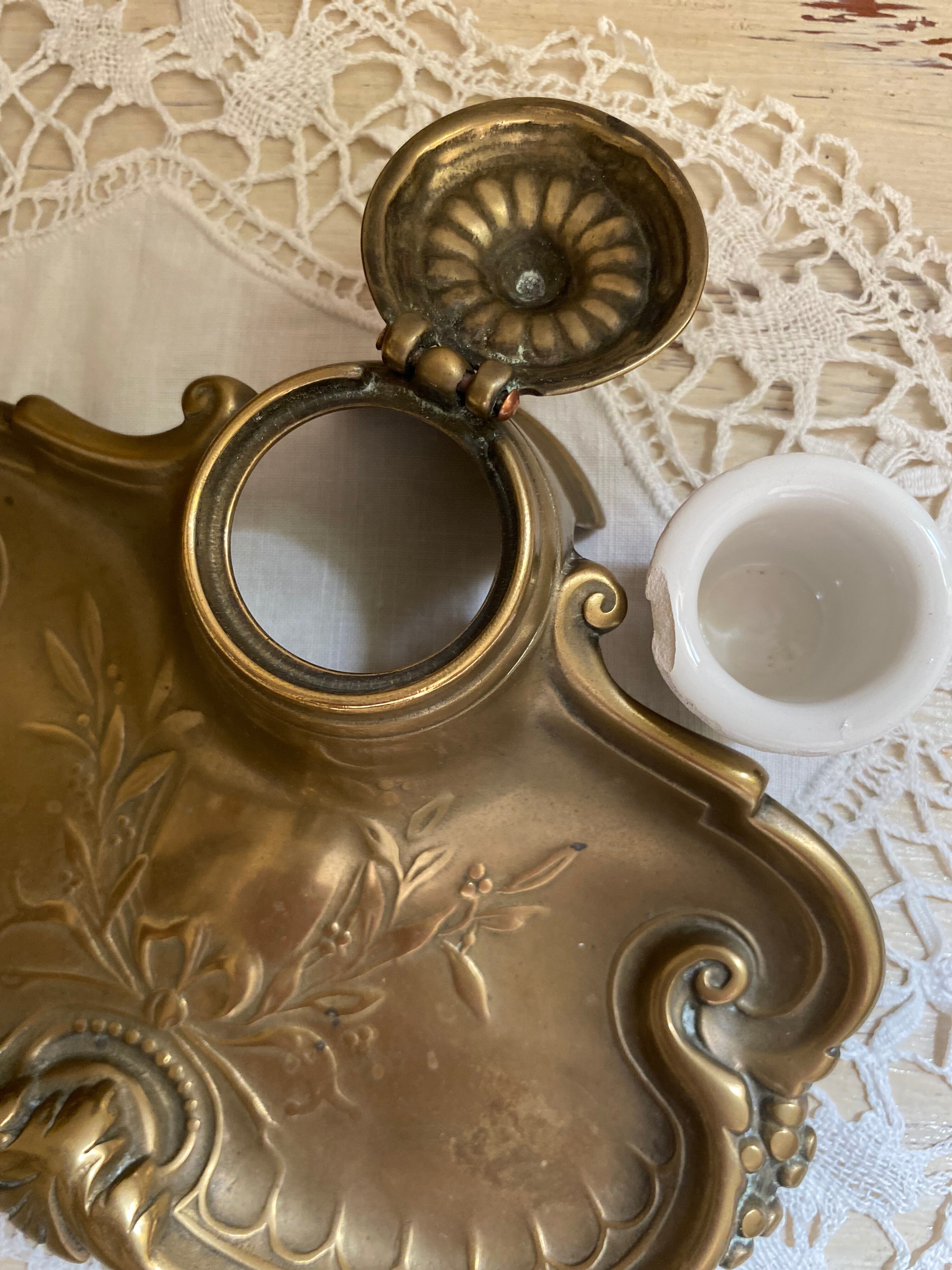 繊細なレリーフが美しいインクウィル インク壺 フランスアンティーク アンティークインク壺 カリグラフィー