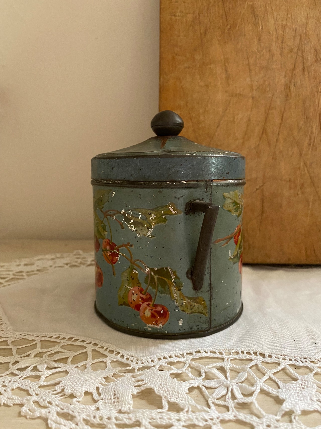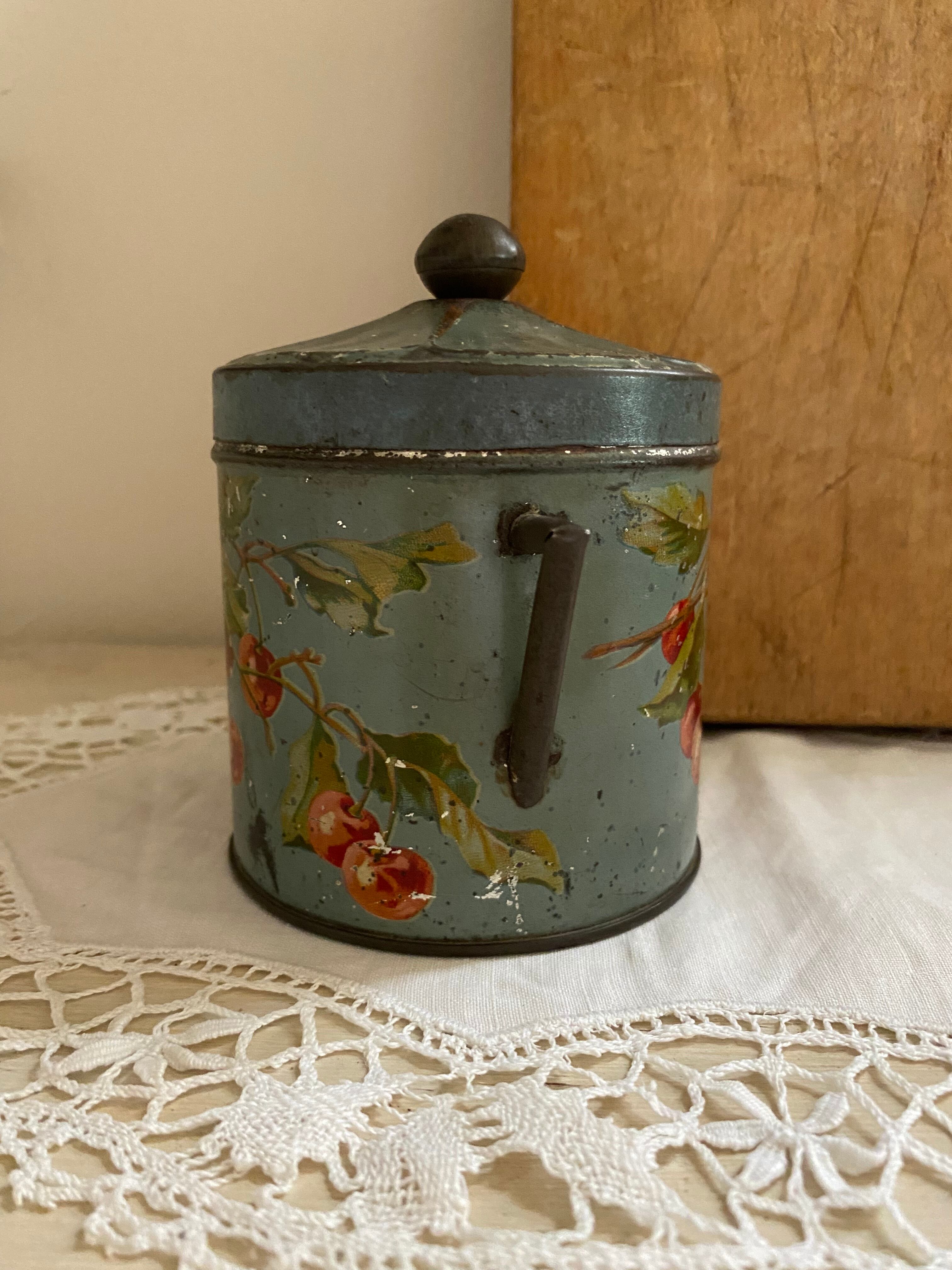 チェリー模様のブリキ缶 フランスアンティーク アンティーク雑貨 ブリキ缶