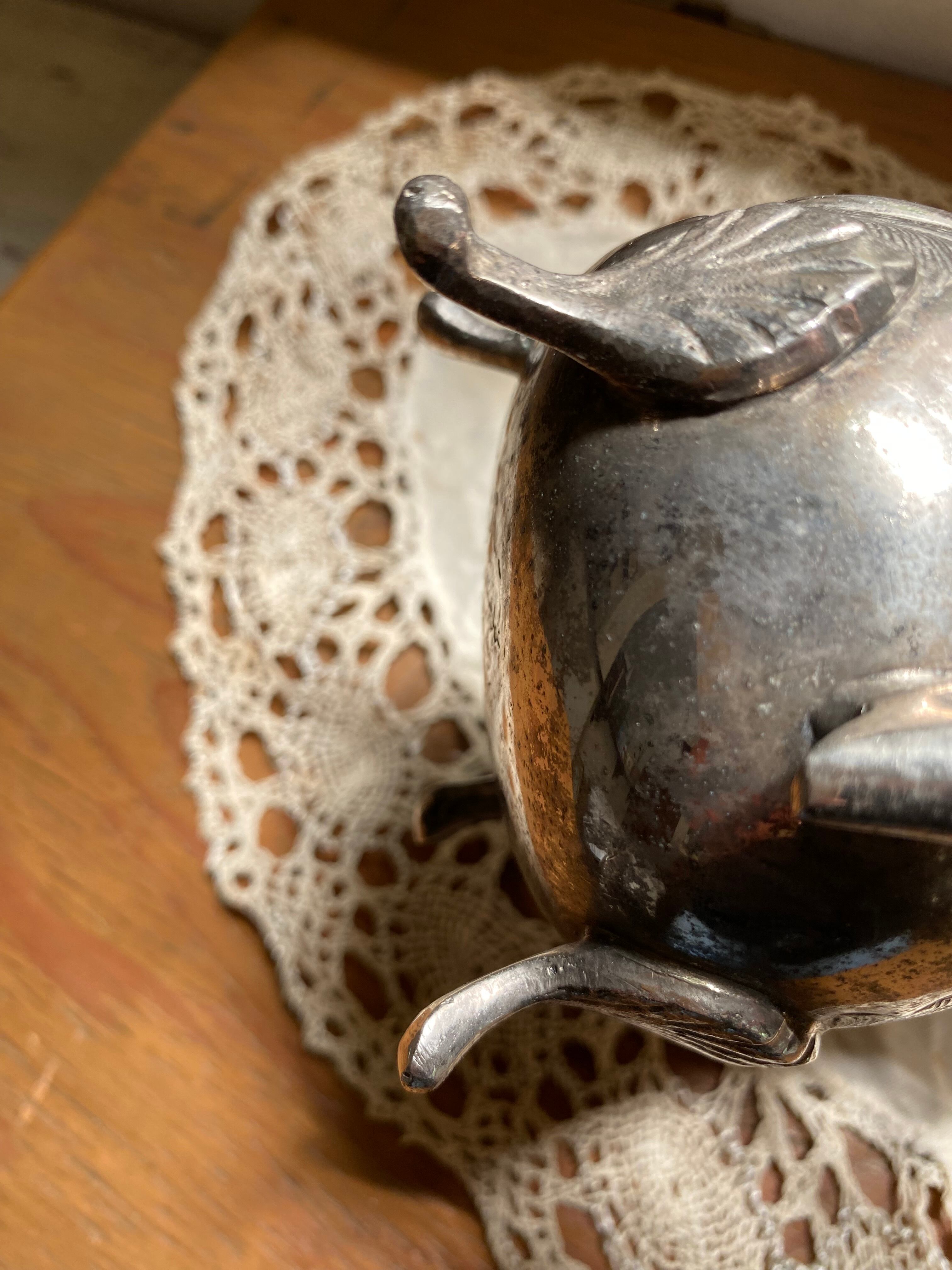 フランスの蚤の市で見つけたシルバー製のティーポットになります。猫足のなんとも可愛らしいフォルム。