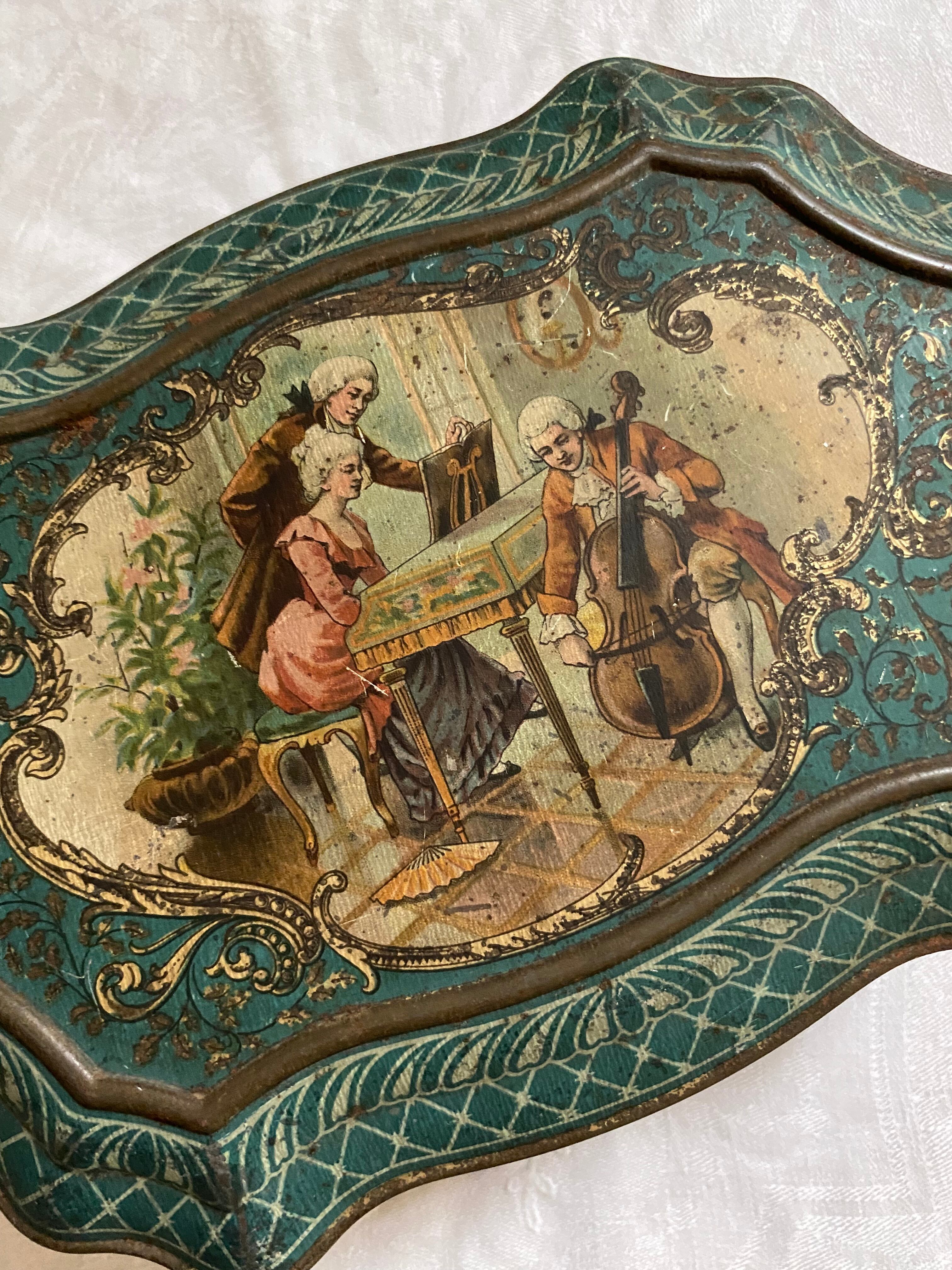 古いリトグラフ ビスケット缶 フランスアンティーク ブリキ缶 ティン缶 ブロカント アンティーク雑貨