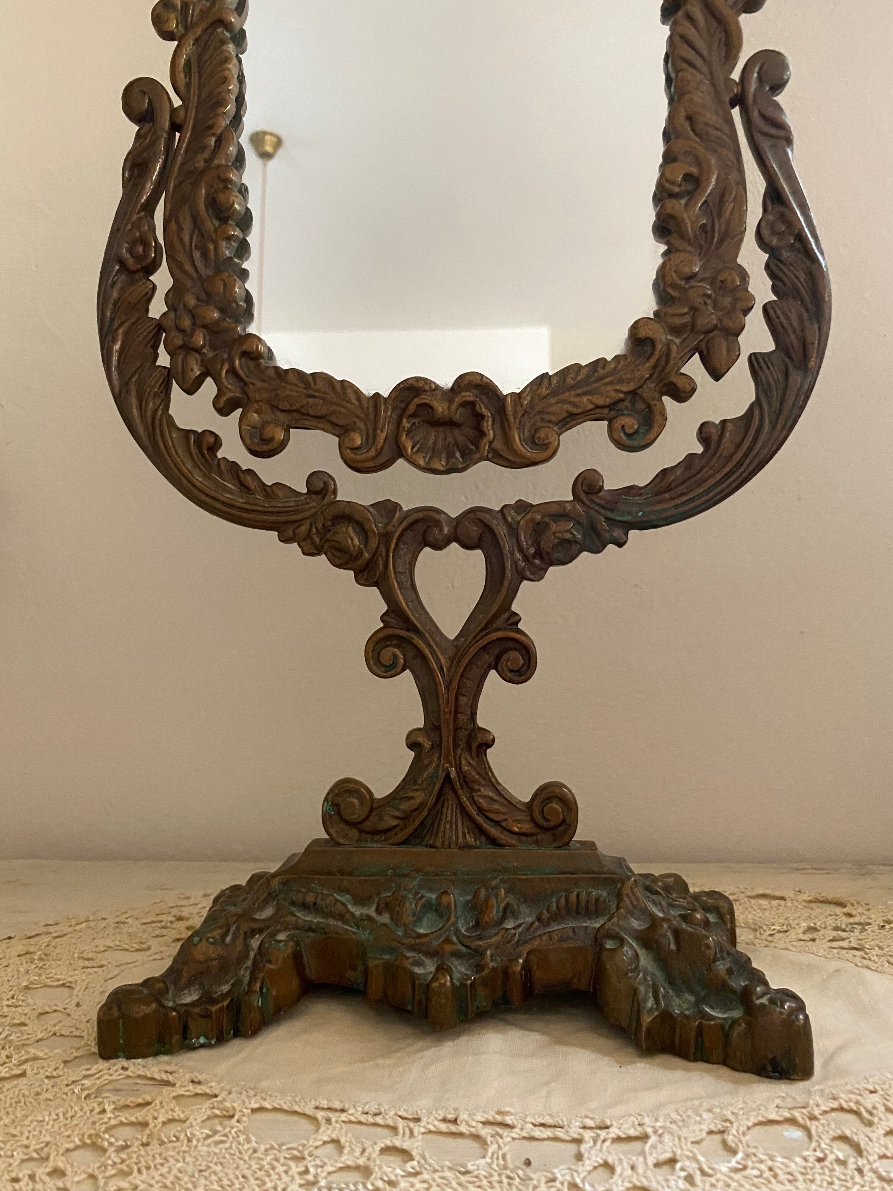 ロカイユ装飾/スタンドミラー ブロンズ フランスアンティーク アンティークミラー ロカイユ装飾