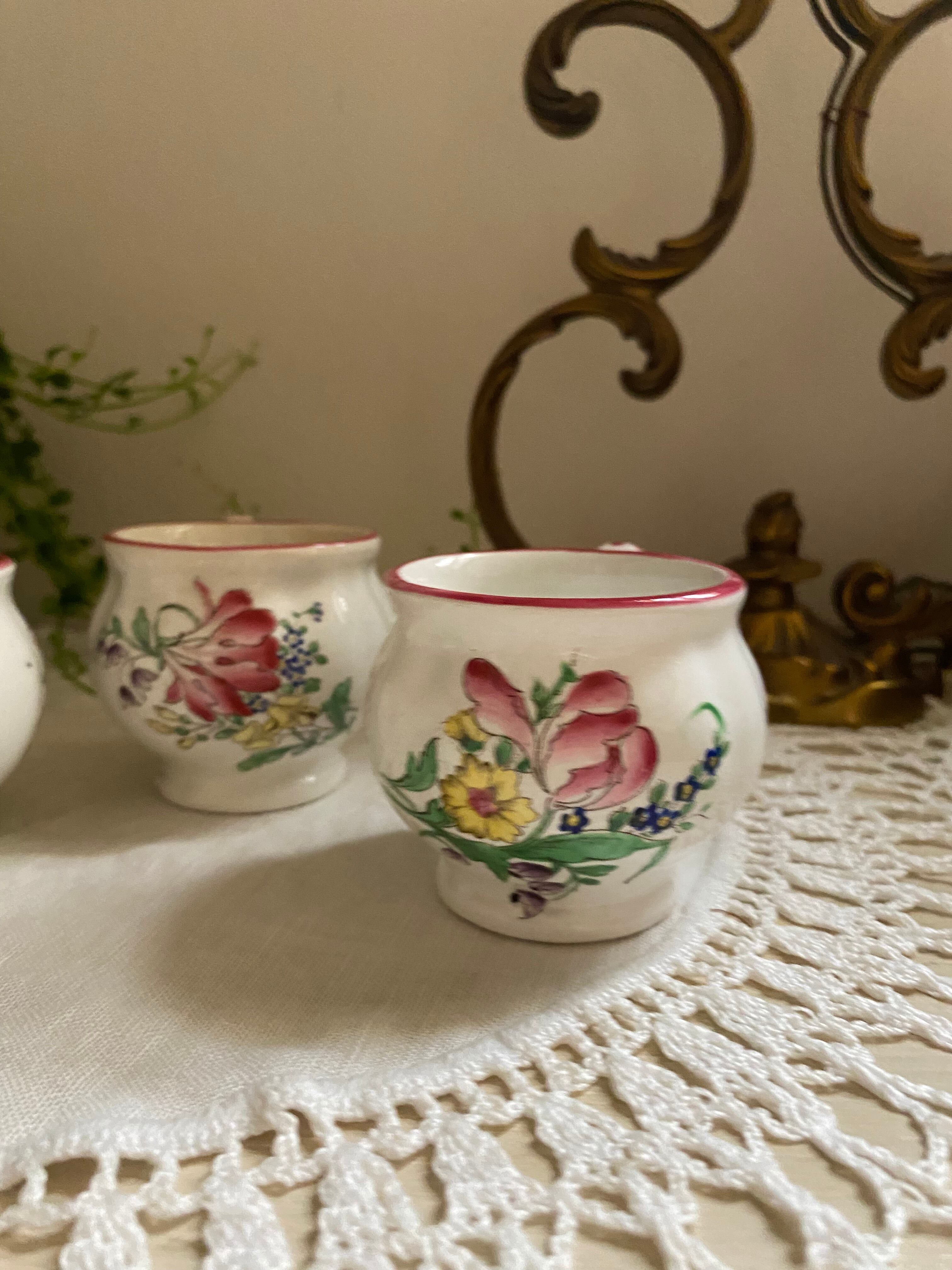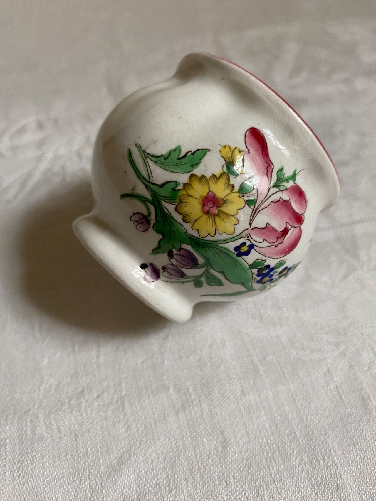 フランスで買い付けたK&G Luneville窯のクリームポット。手描きによるお花のブーケは、全て絵柄の異なったものになります。バラやチューリップなどの花々に癒される、そんなクリームポット