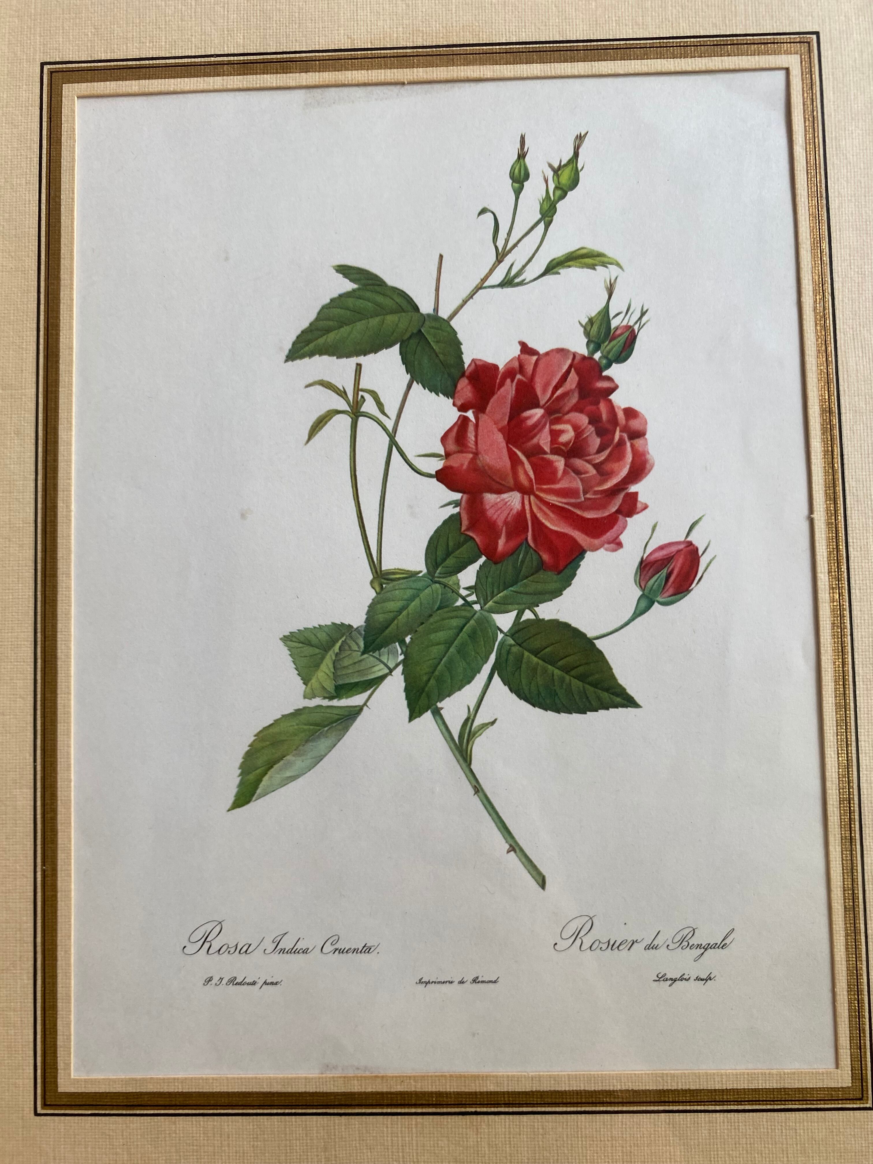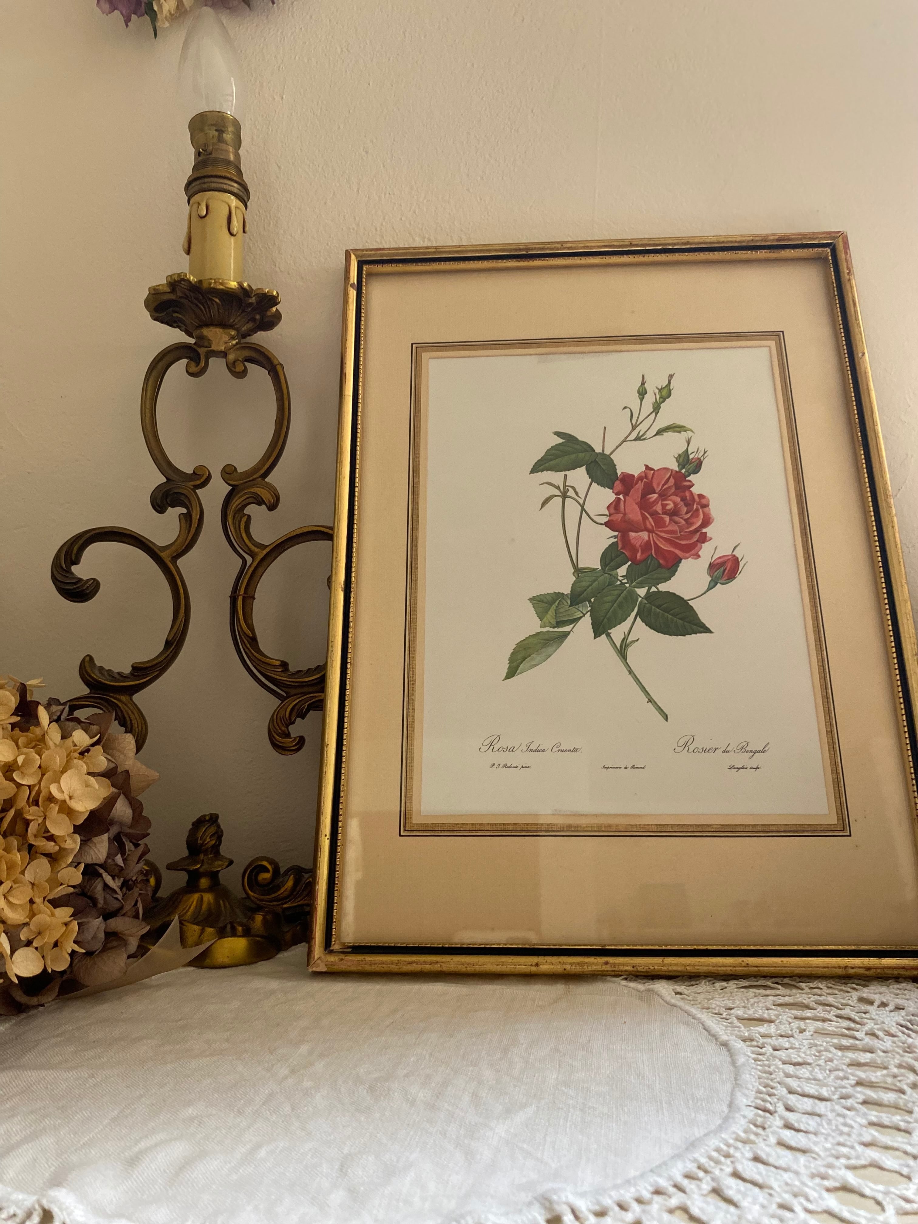フランスで買い付けた、今も愛されるルドゥーテのローズの額絵、ローズの花びらや葉の細やかな感じがとても繊細に表現されています。