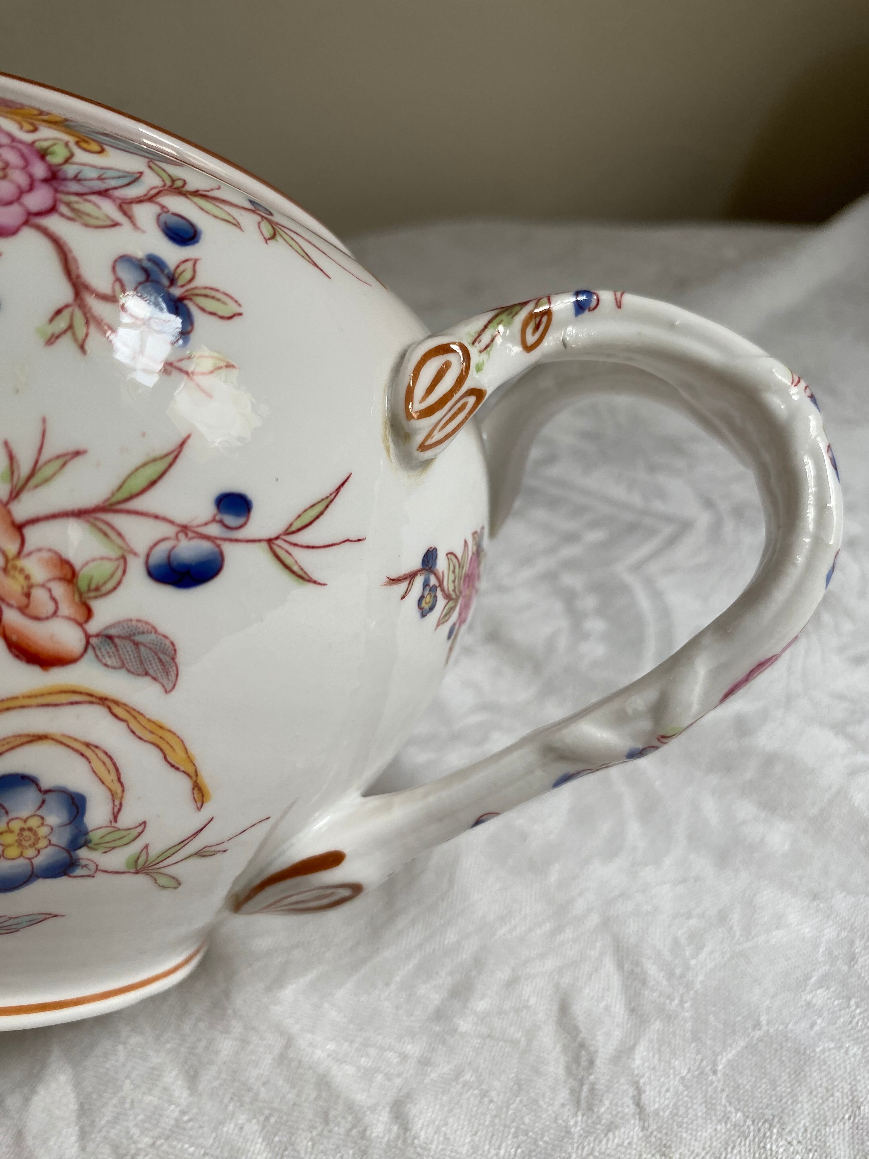シノワズリで美しいデザインは転写と一部手描きによるもの、また、磁気の透き通る白さは光りをあてるととても綺麗です。