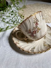 繊細で優美なレリーフに金彩が美しく、描かれた花々が華やかで可愛らしいお品です。