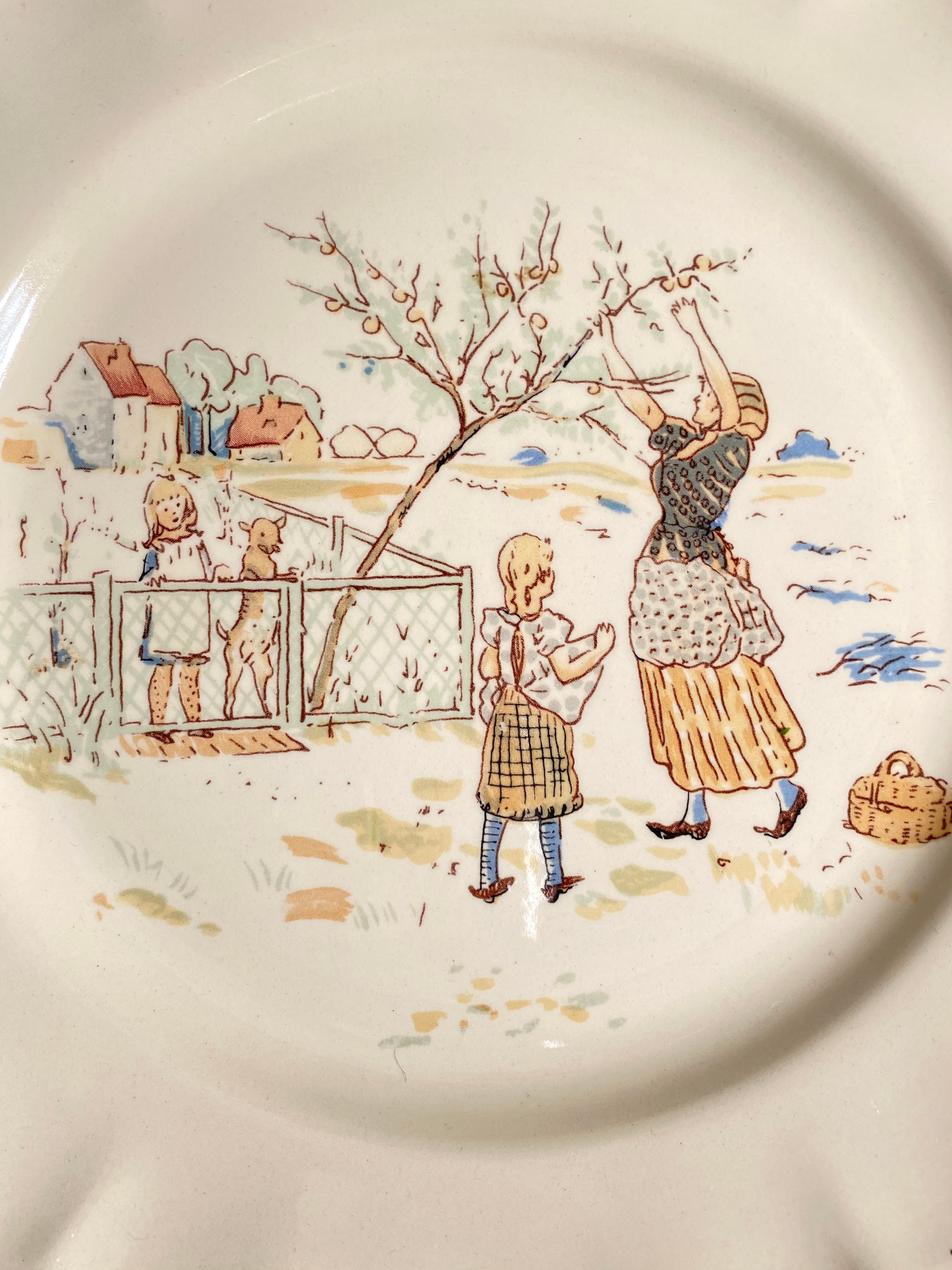 Sarrguemines窯 人気の花リムプレートにKate Greenawayの挿絵が入った『LES ENFANTS RICHARD』というシリーズです。