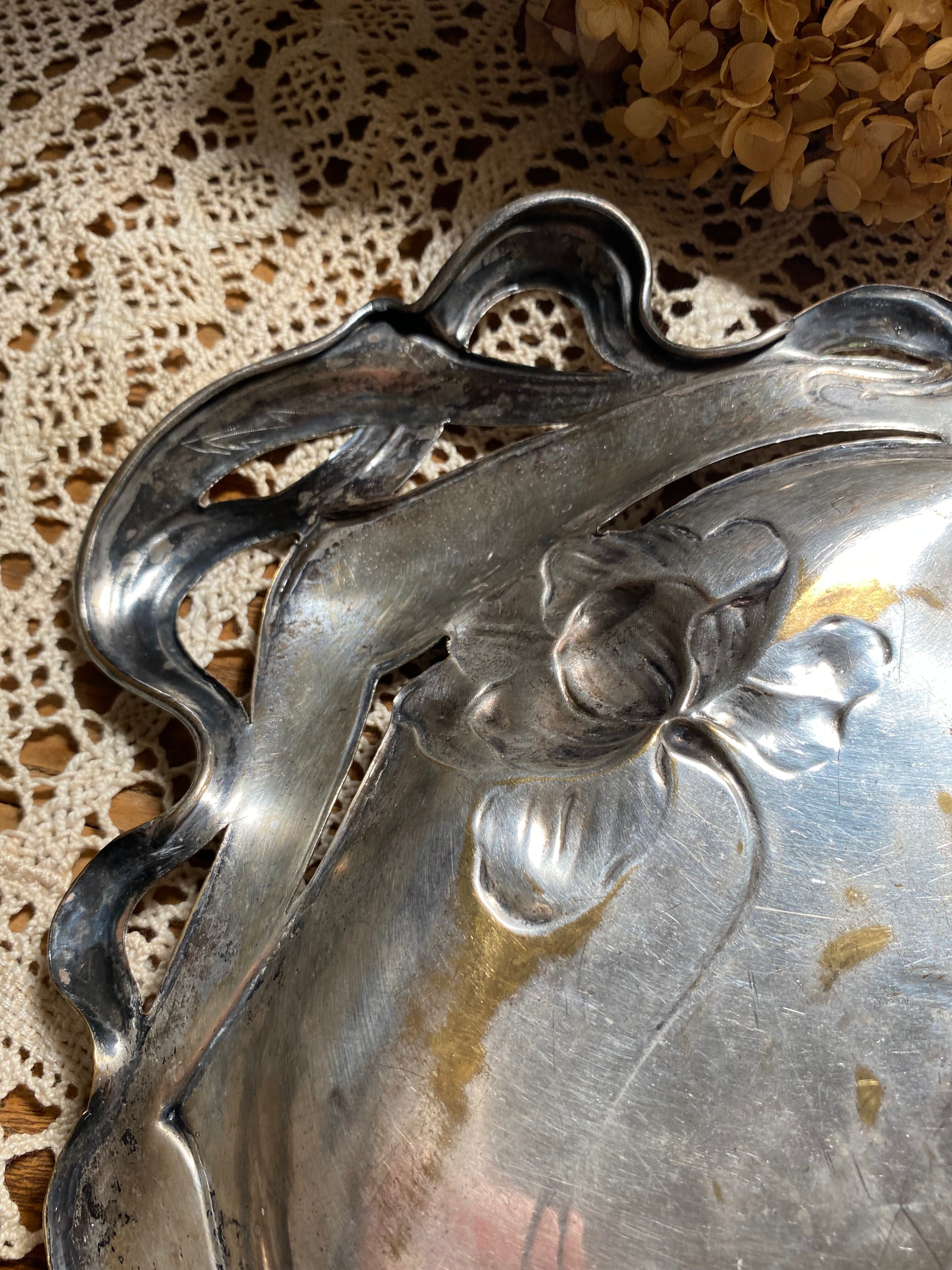 経年で変色した箇所が見られますが、アール・ヌーヴォーなデザインのハンドルにポピーの花が立体的になっていて美しく飾りたくなる、そんなアイテムになります。