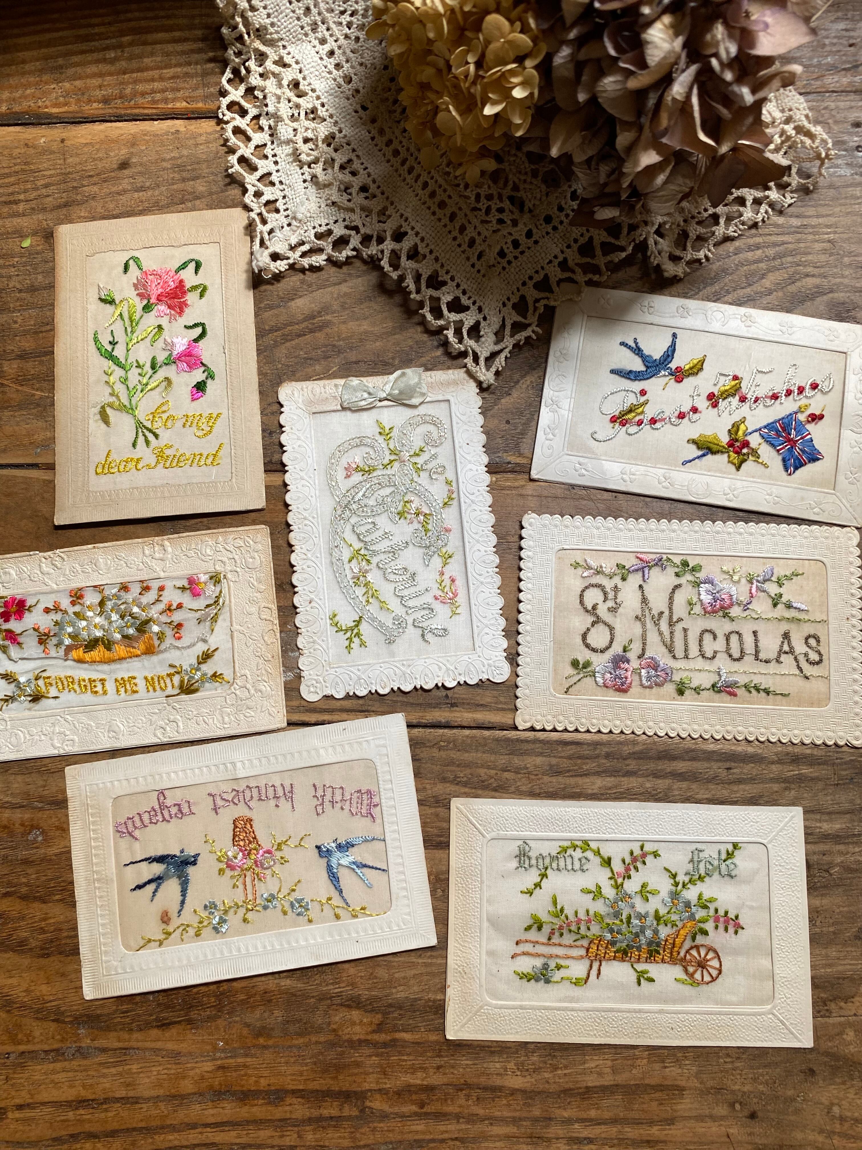 フランスのおよそ100年前の手刺繍カードになります。