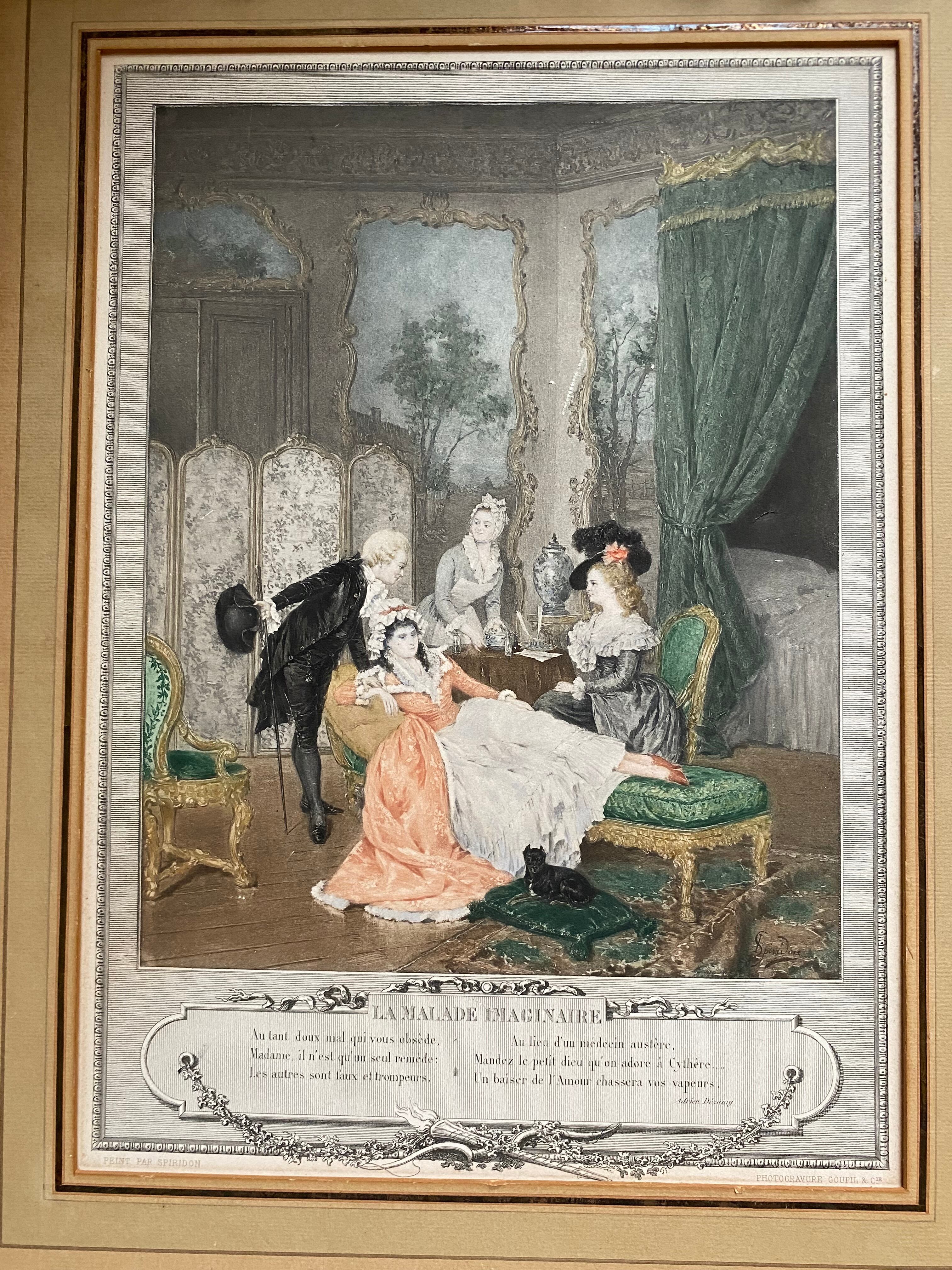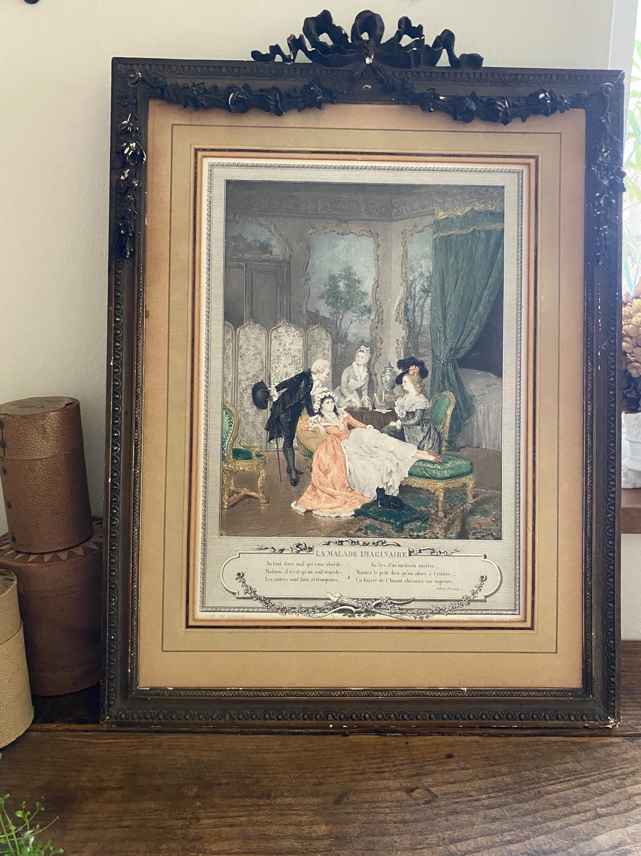 フランスの額装は優雅なシーンが描かれたリトグラフ。
