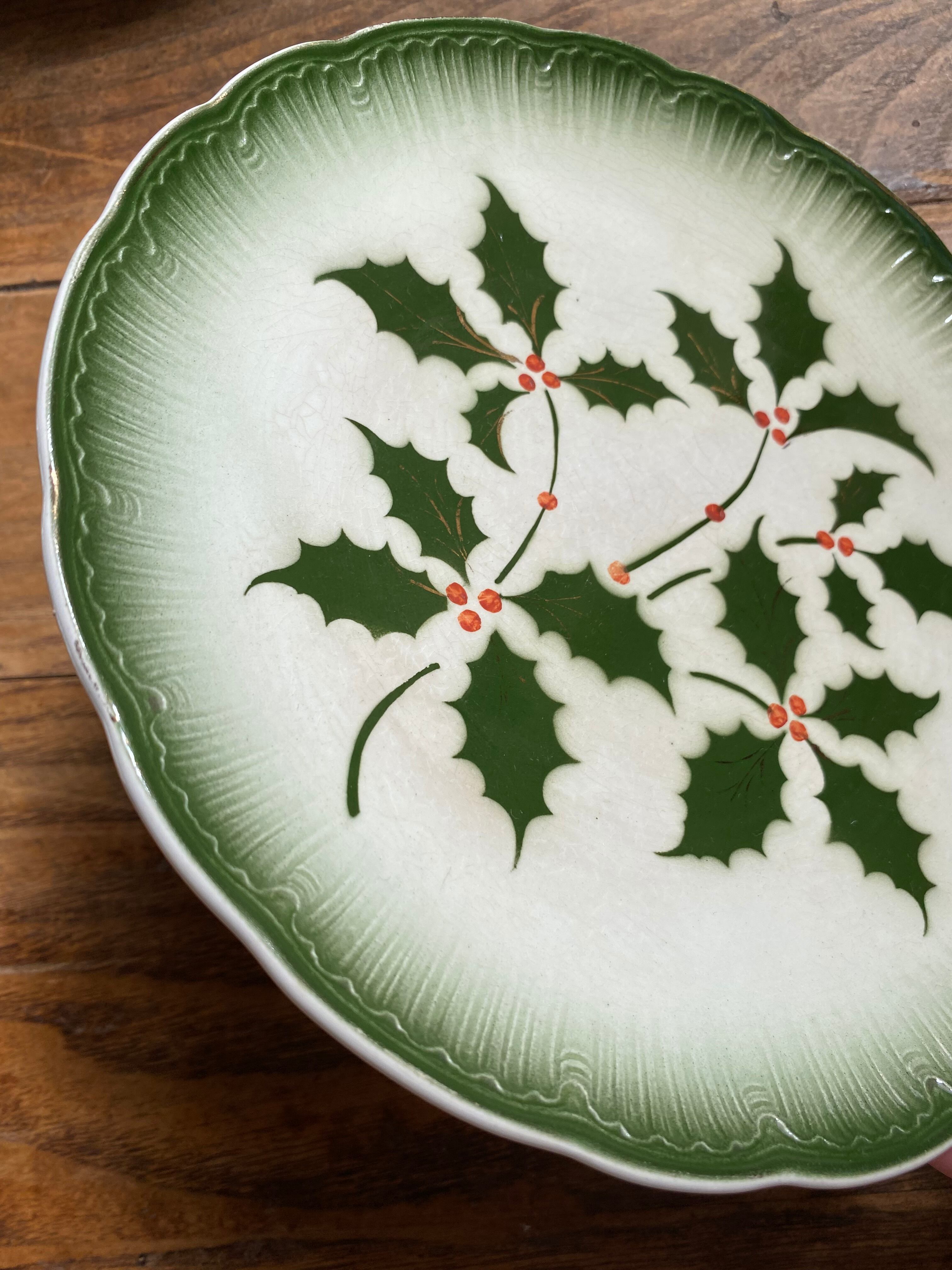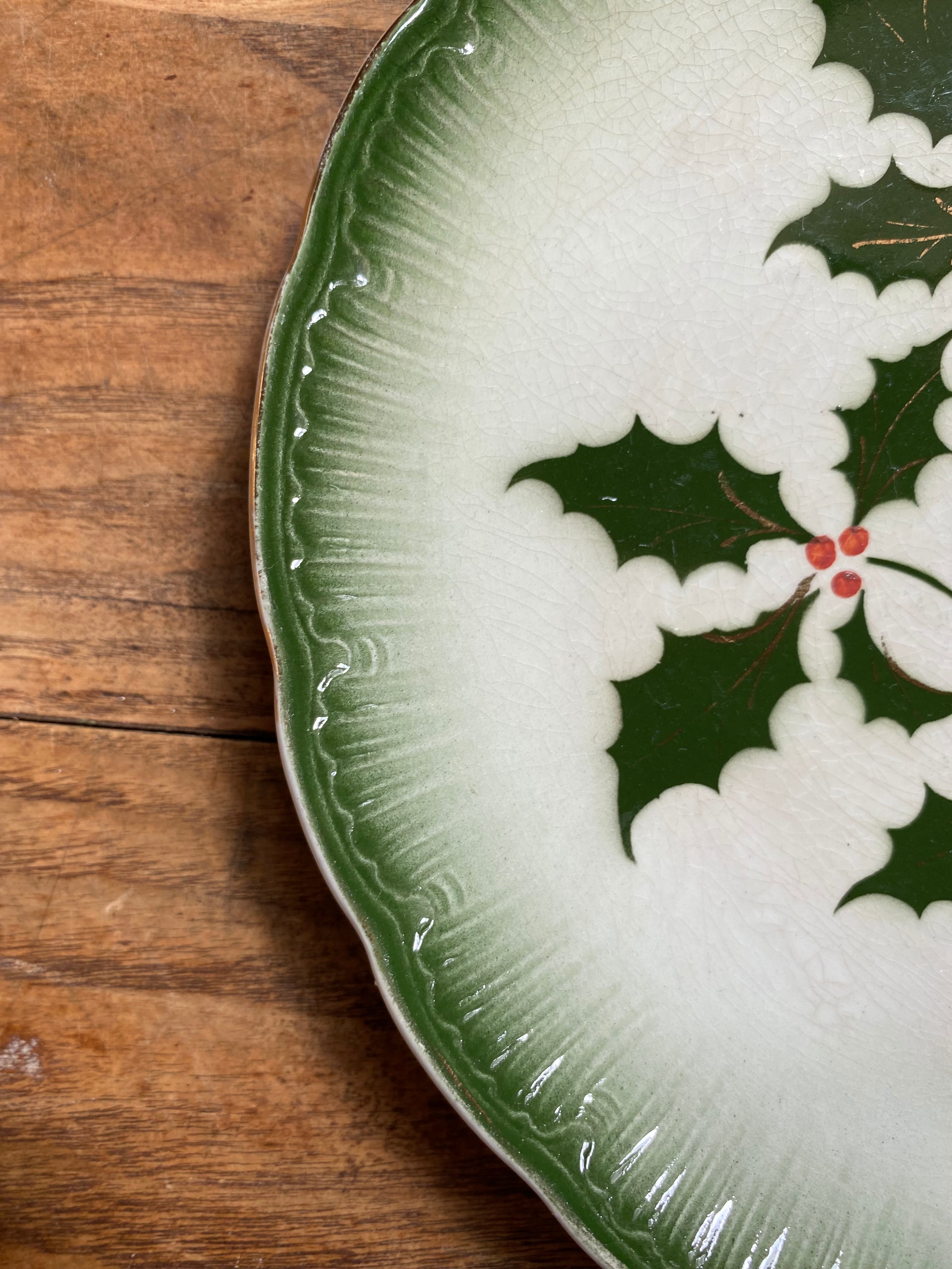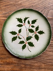 中央には大きく柊の転写、赤と緑とゴールドのクリスマス仕様に1枚は持っていたい、そんなプレートになります。