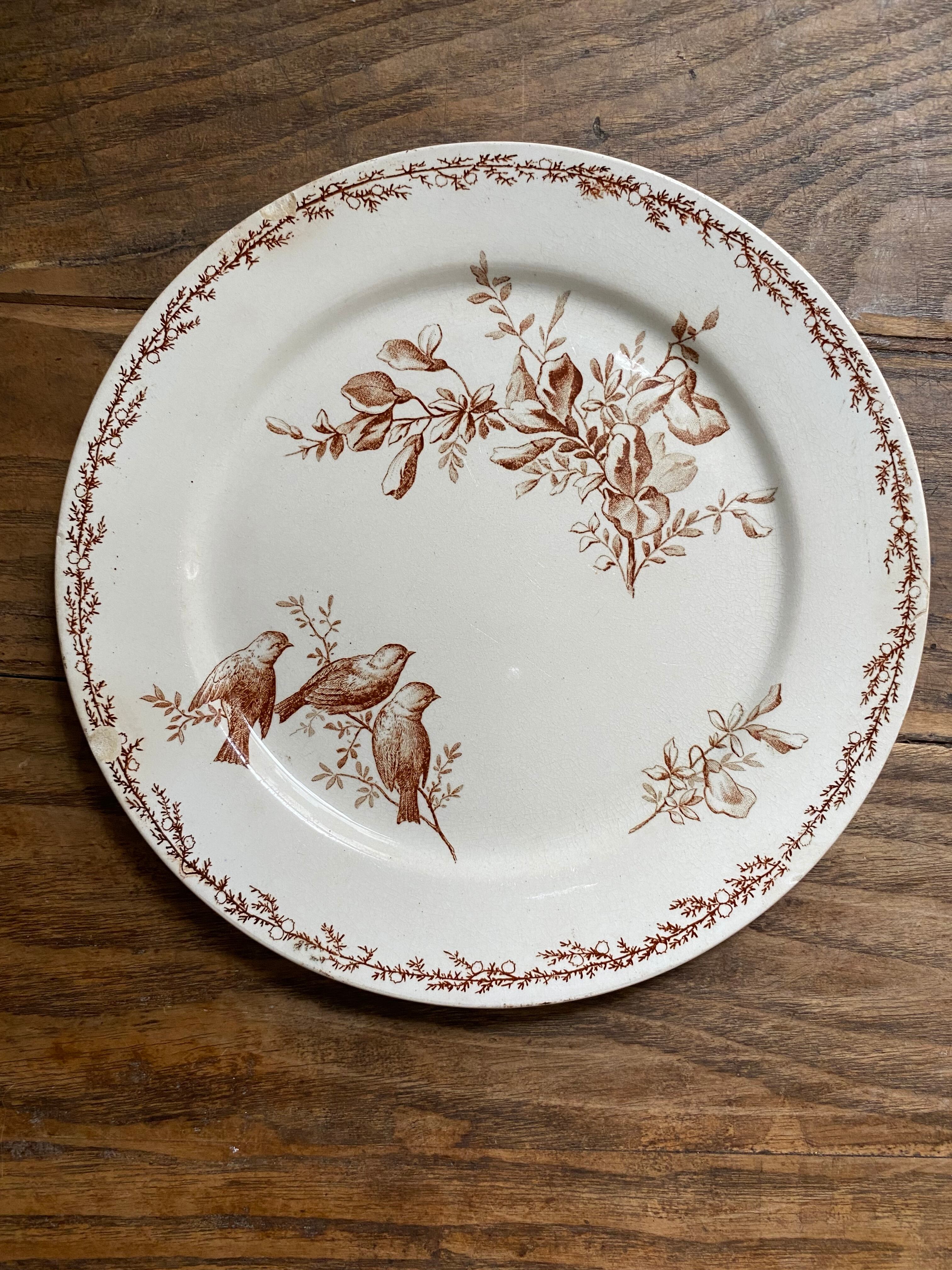 鳥と木の実のプレート クレイユモントロー フランスアンティーク アンティークプレート アンティーク食器