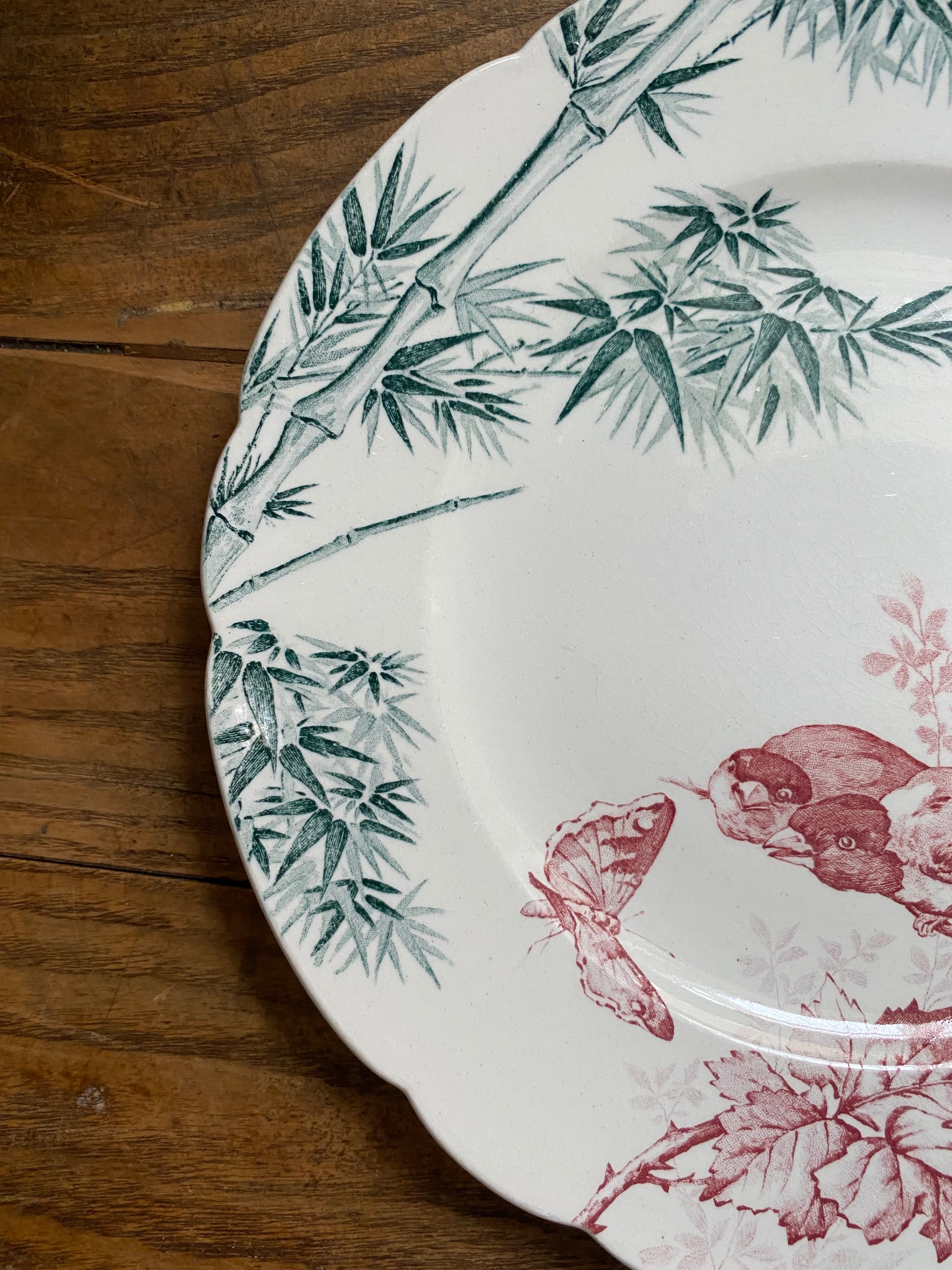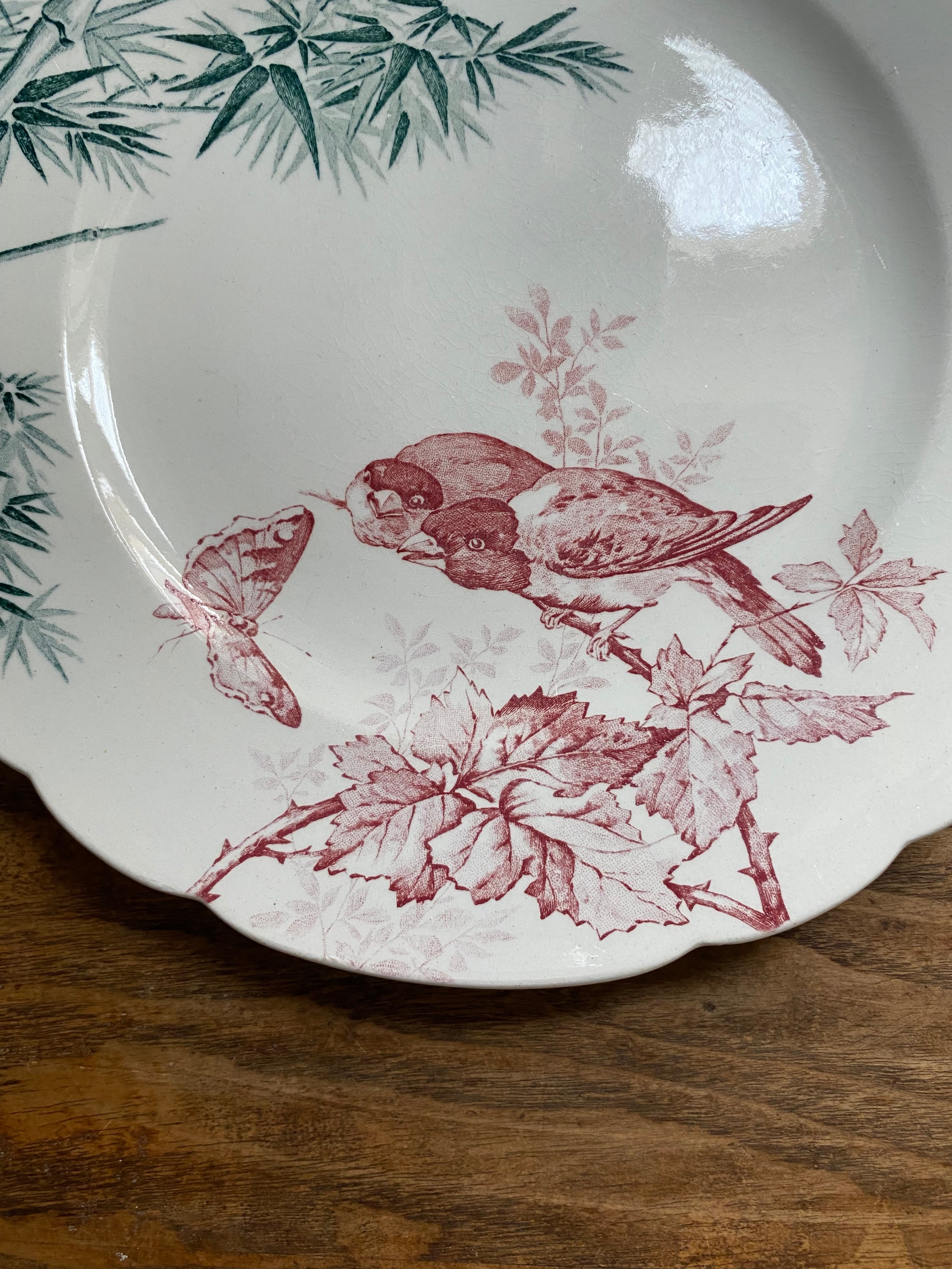鳥と蝶のプレート LONGWY フランスアンティーク アンティークプレート アンティーク食器 ロンウィー