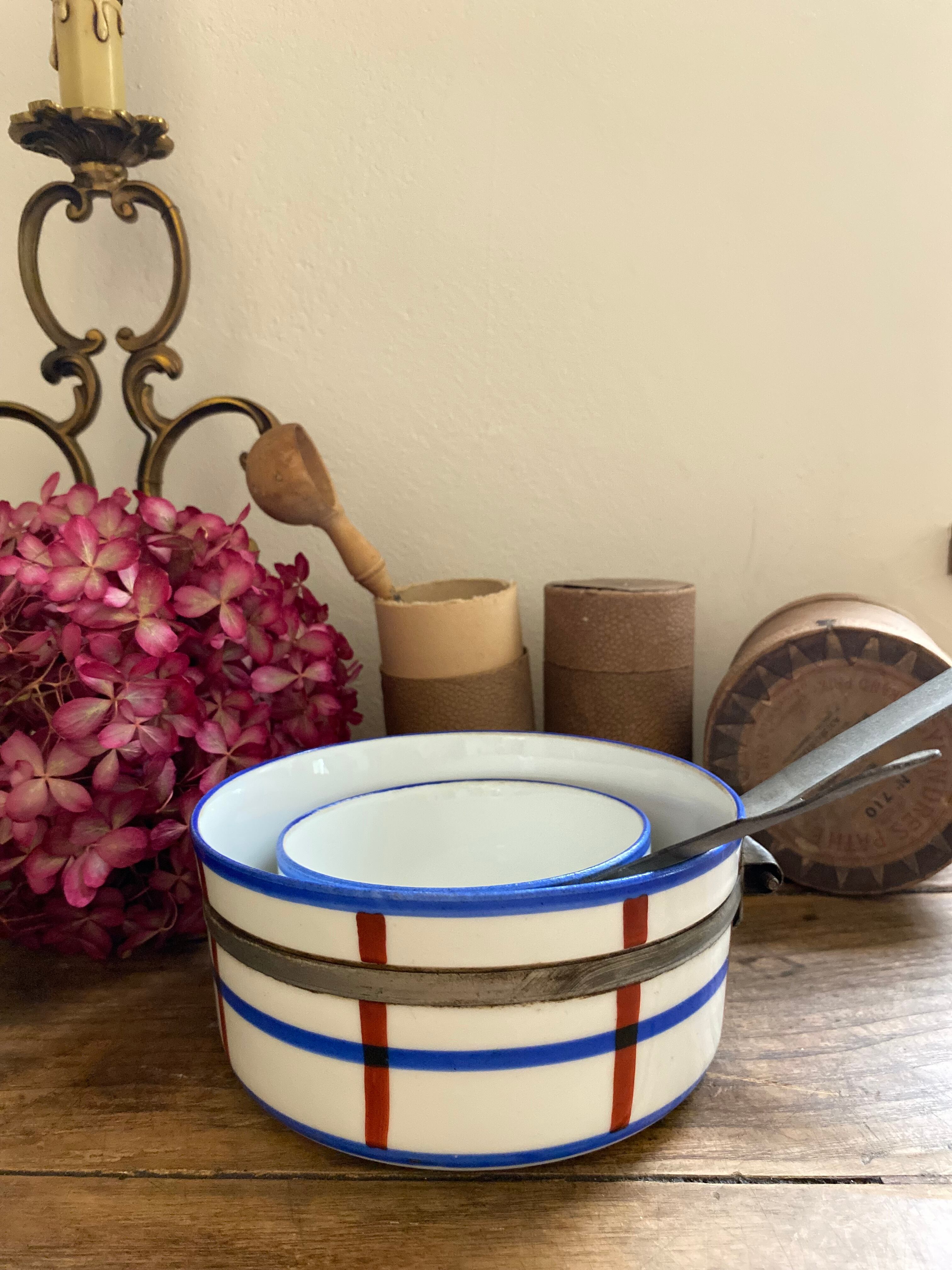 バスク柄の片手鍋 (小) フランスアンティーク バスク柄 アンティーク食器